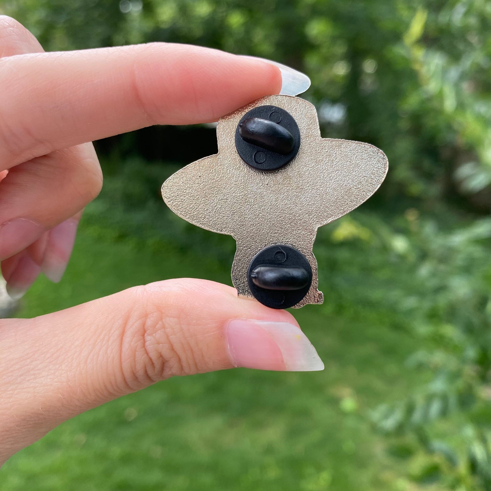 This pin is 1.5” on its longest side, soft enamel with silver plating!