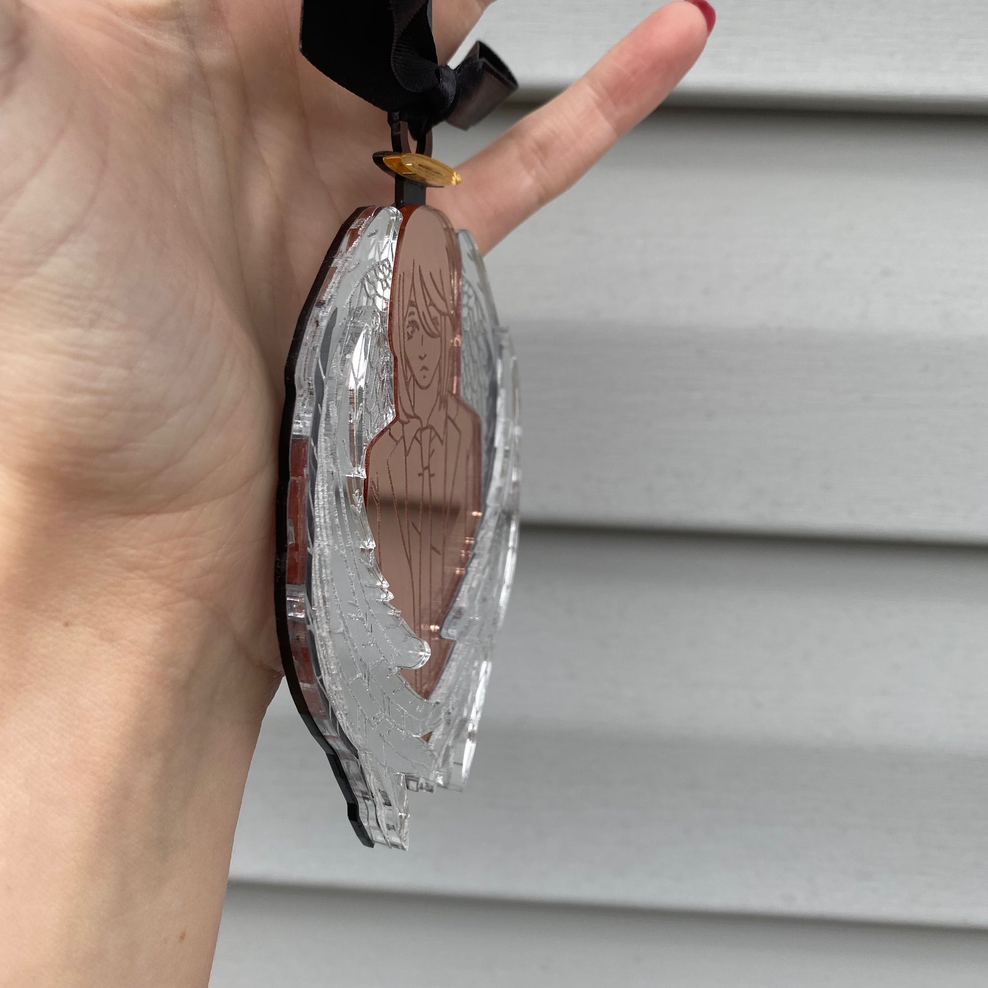 The acrylic is etched and cut from my own laser and features different mirrored acrylic- it’ll reflect the lights so nicely~