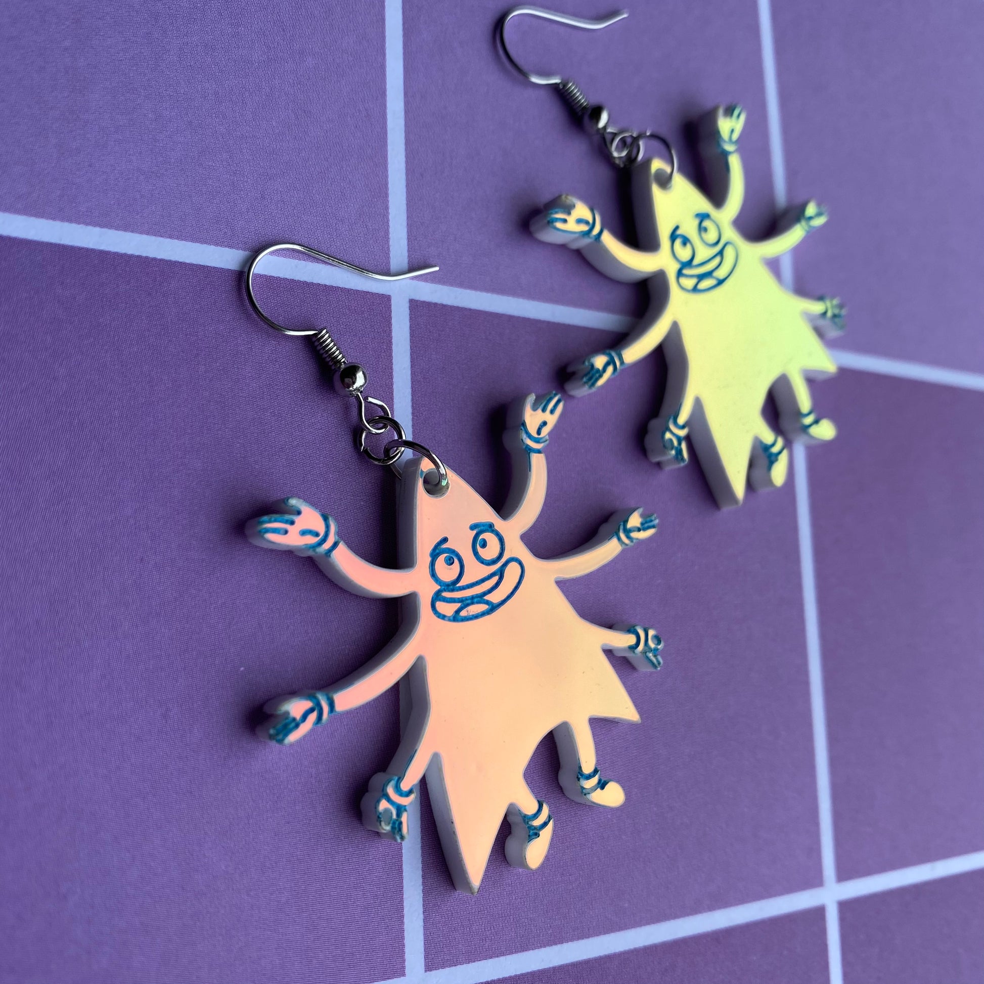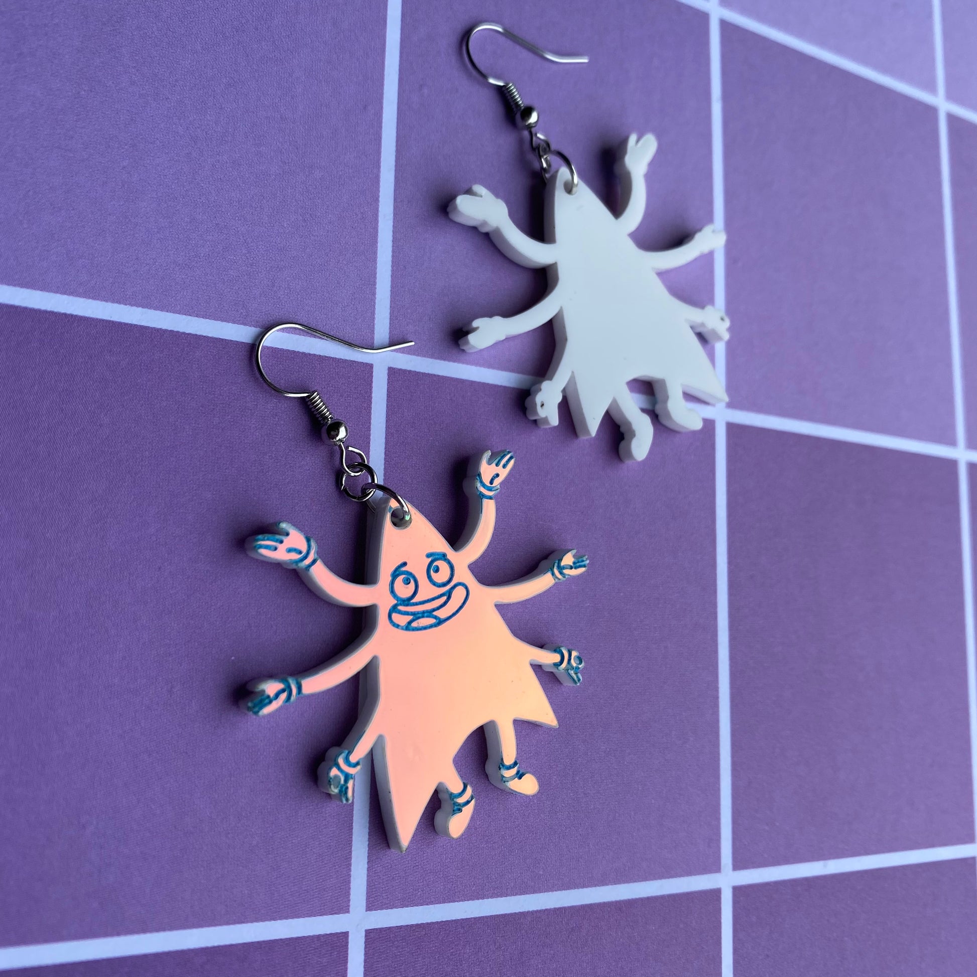 The earrings are 1.7” long and cut from my own laser! The earrings are etched and hand painted on the front, and the back is a plain acrylic!