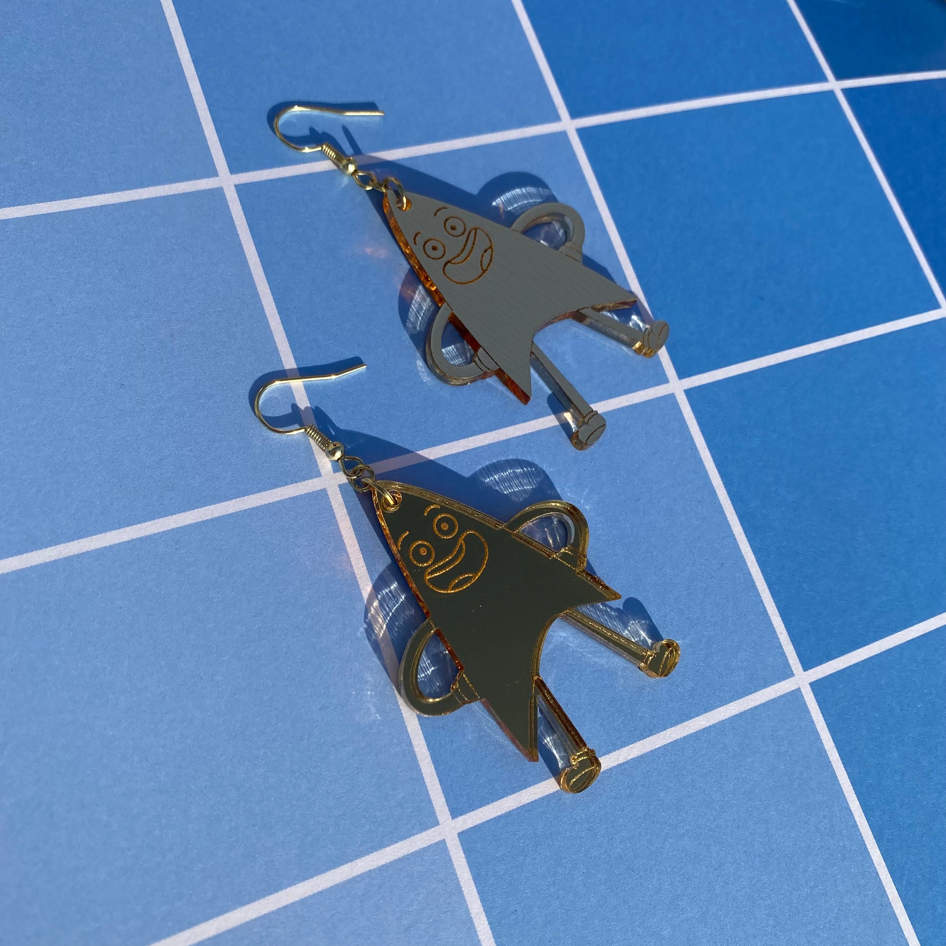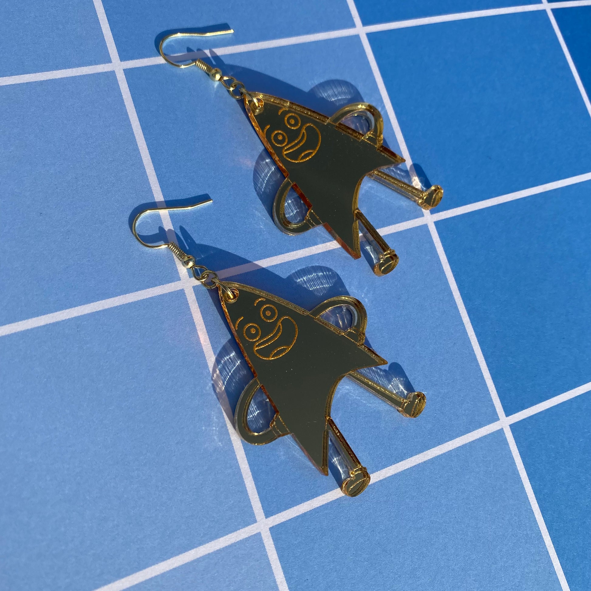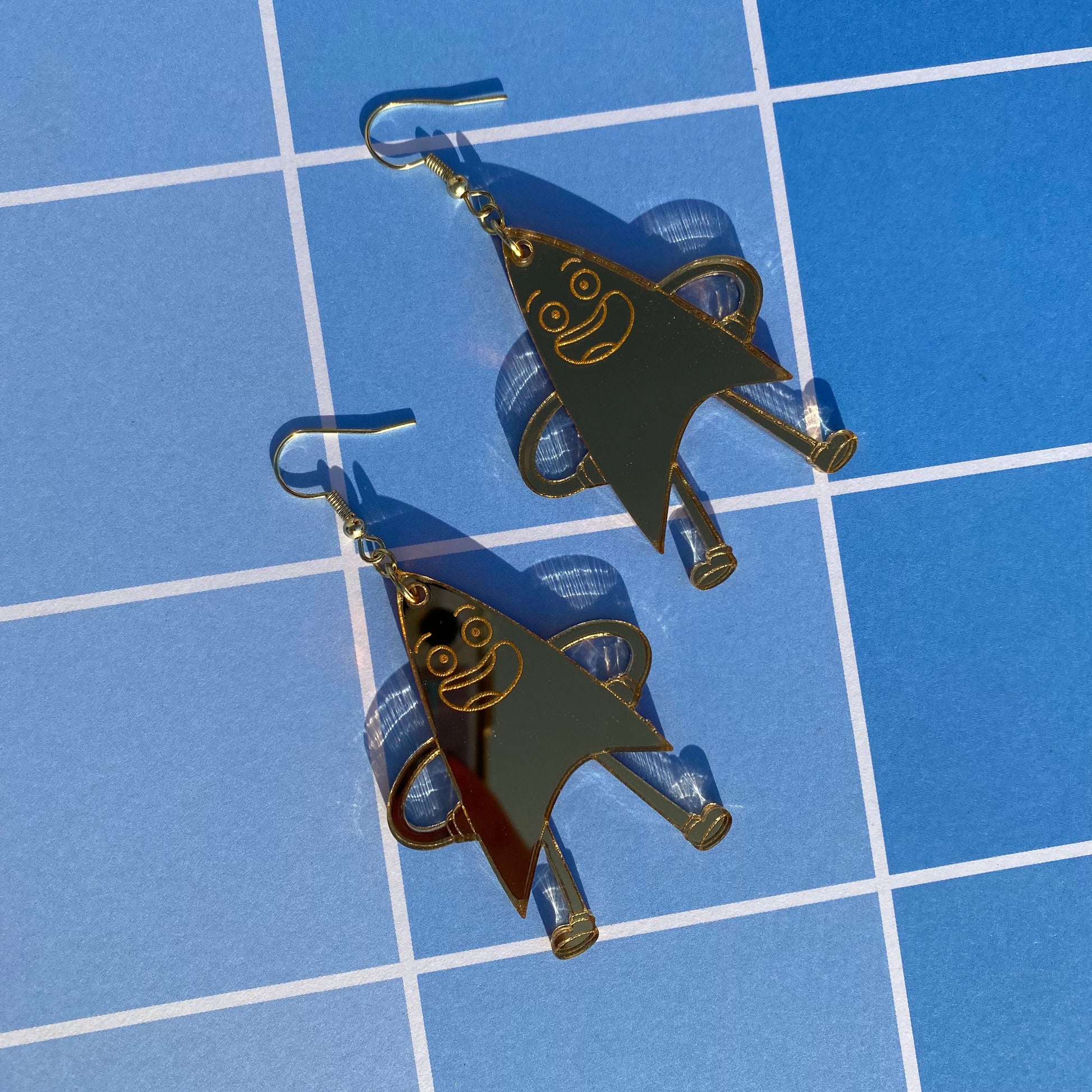 The earrings are 1.7” long and cut from my own laser! The earrings are etched from mirror backed acrylic, meaning the front is shiny and the back is a light grey color!