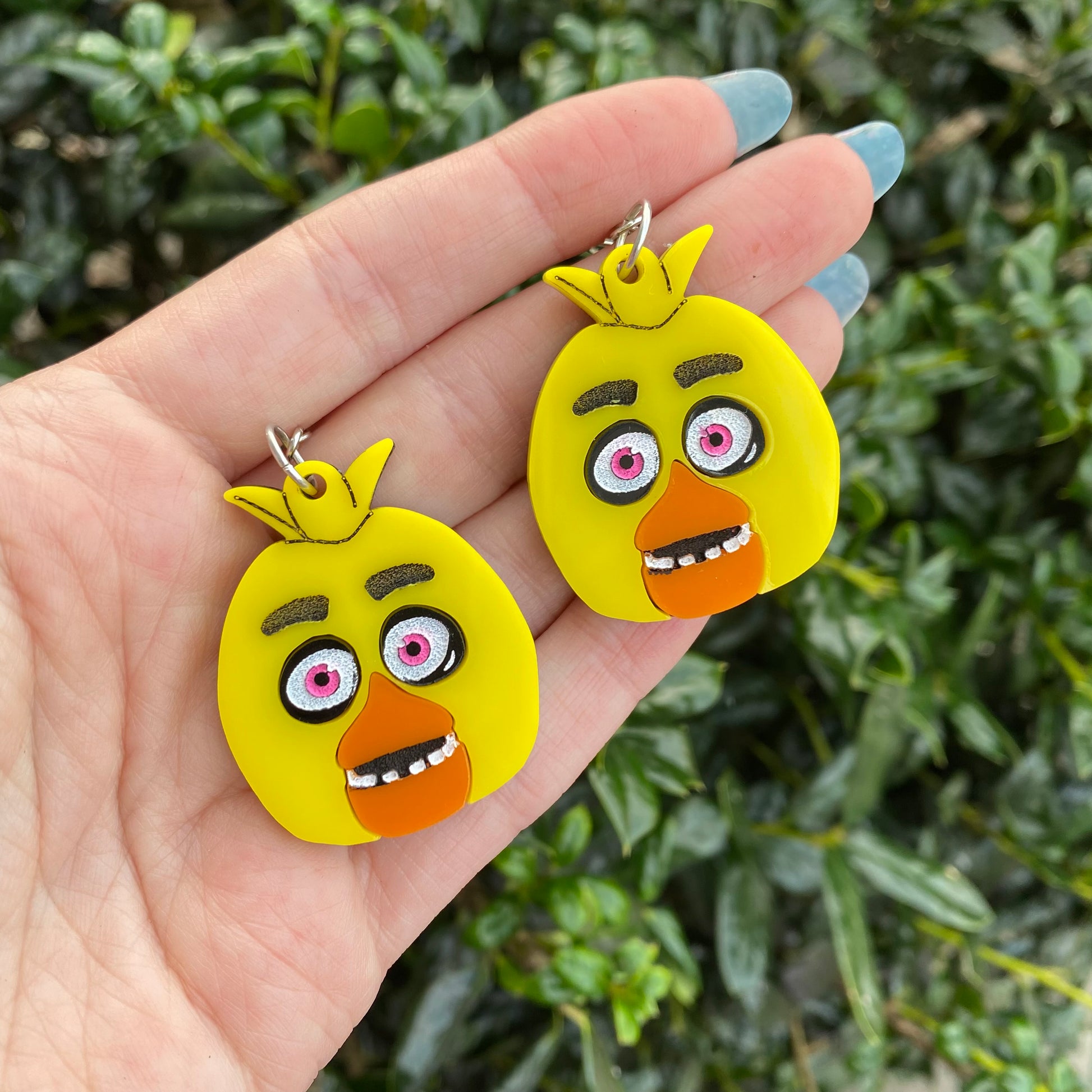 The earrings are 1.5” long and cut from my own laser! The earrings are cut and etched, and attached to an acrylic base. The back will be a plain acrylic color!