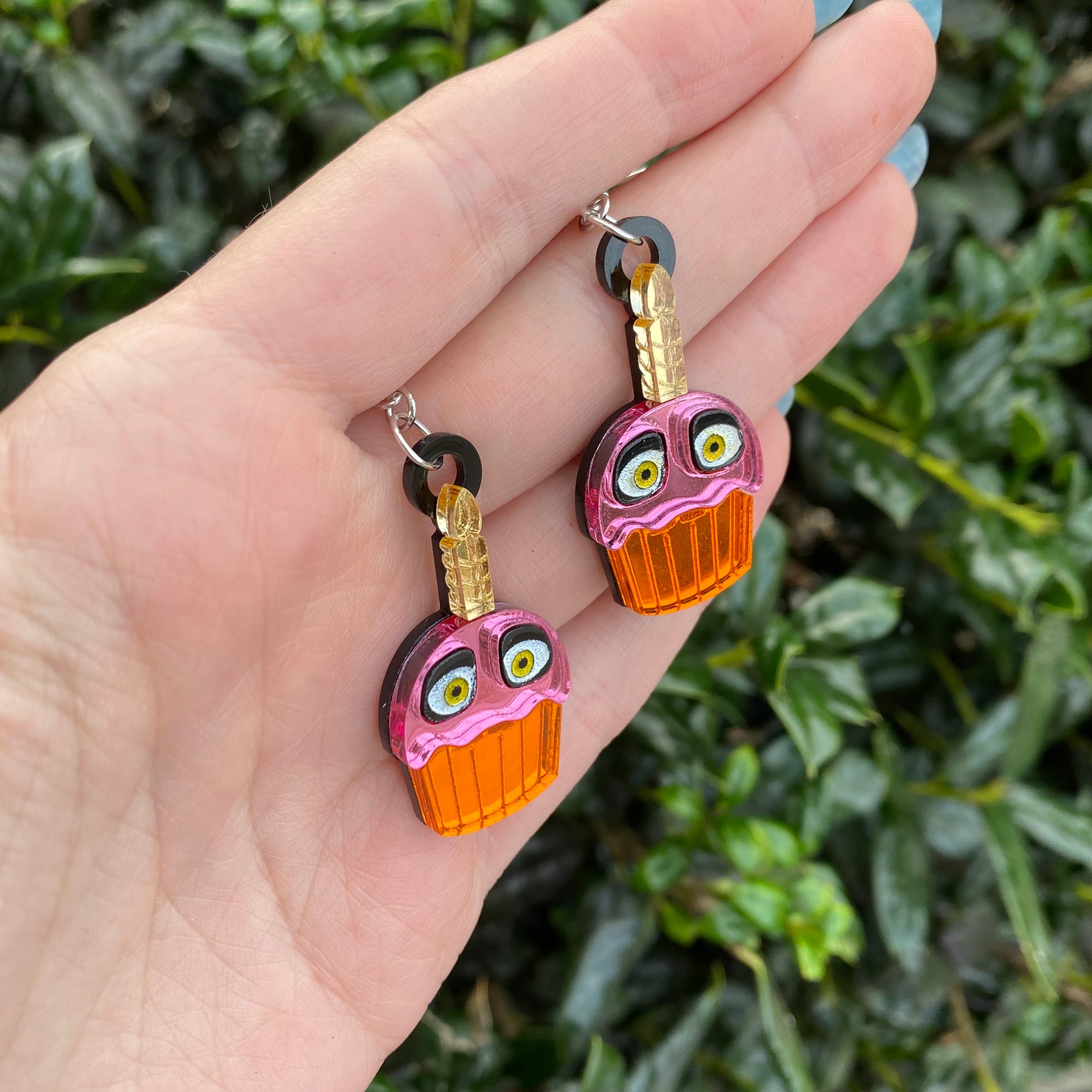 The earrings are 1.2” long and cut from my own laser! The earrings are cut and etched, and attached to an acrylic base. The back will be a plain acrylic color!