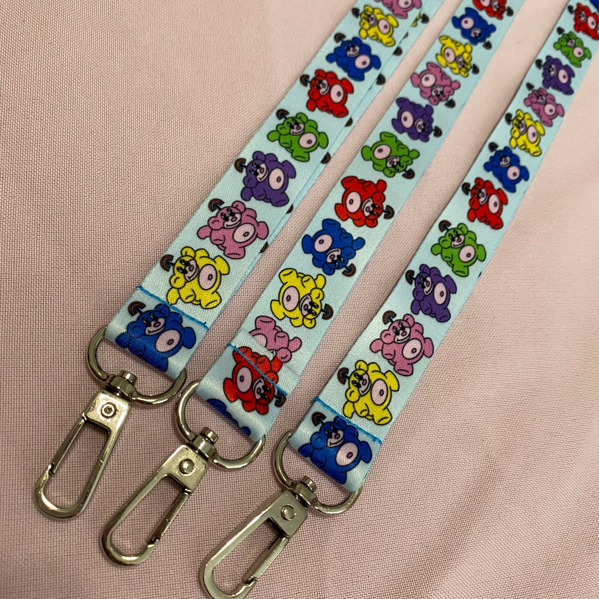 Lanyards are double sided and about .75” wide! Featuring a strong lobster clasp!