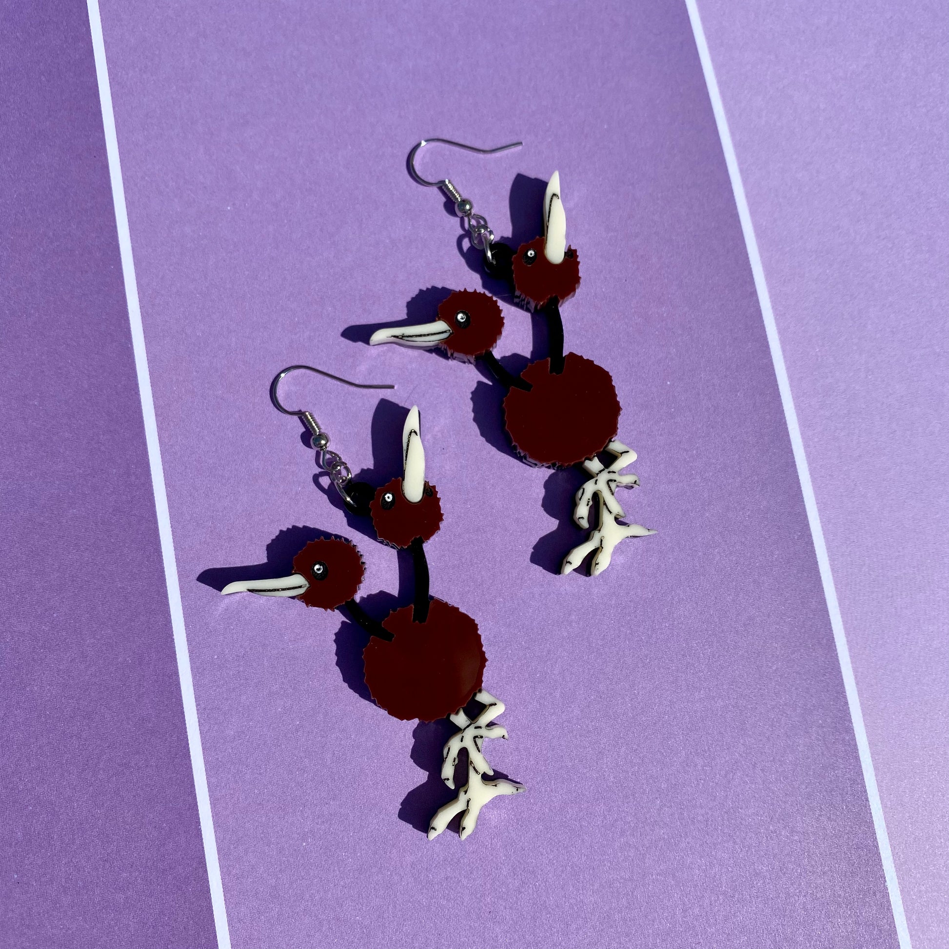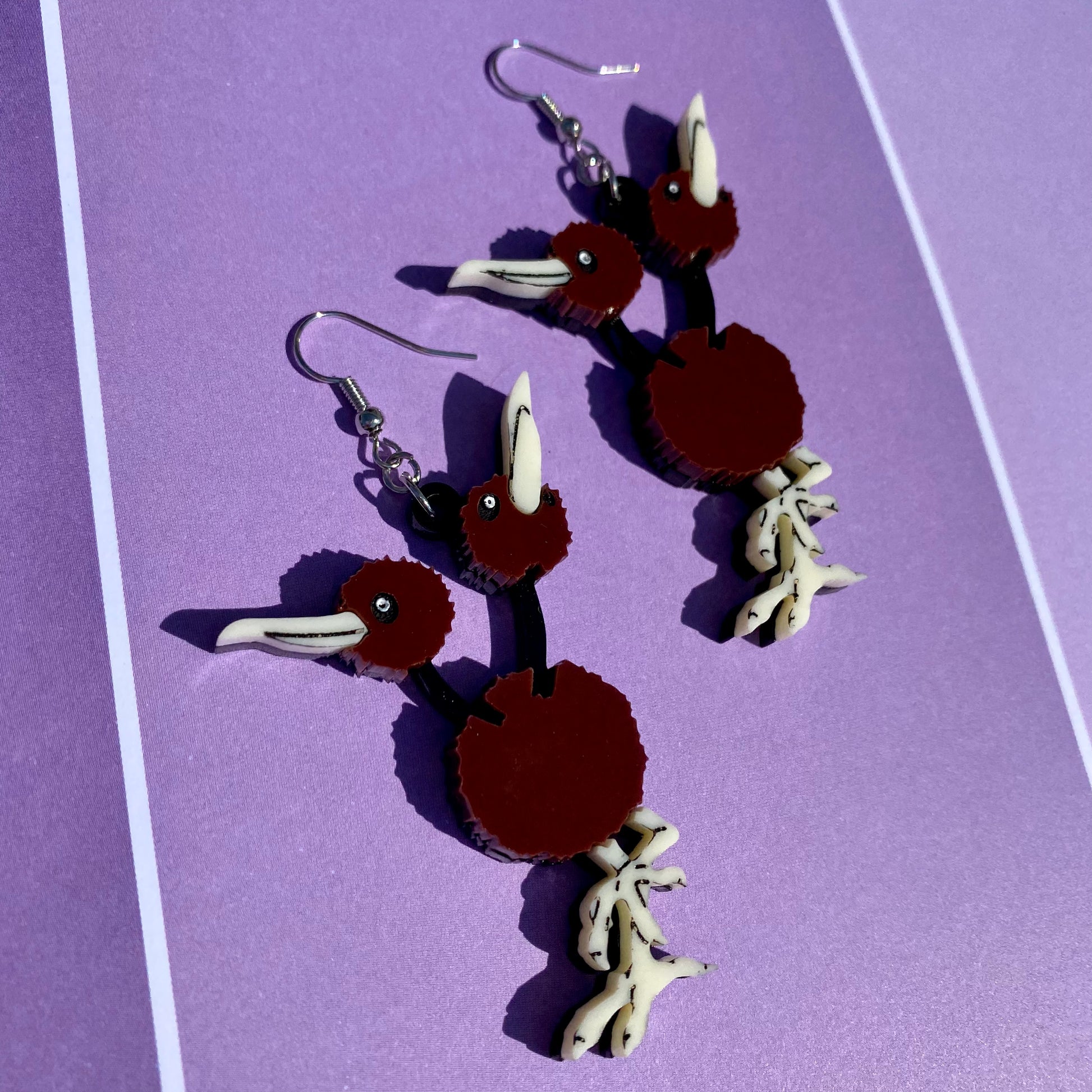 The earrings are 2.5” long and cut from my own laser! The earrings are cut, and attached to an acrylic base. The back will be a plain acrylic color!