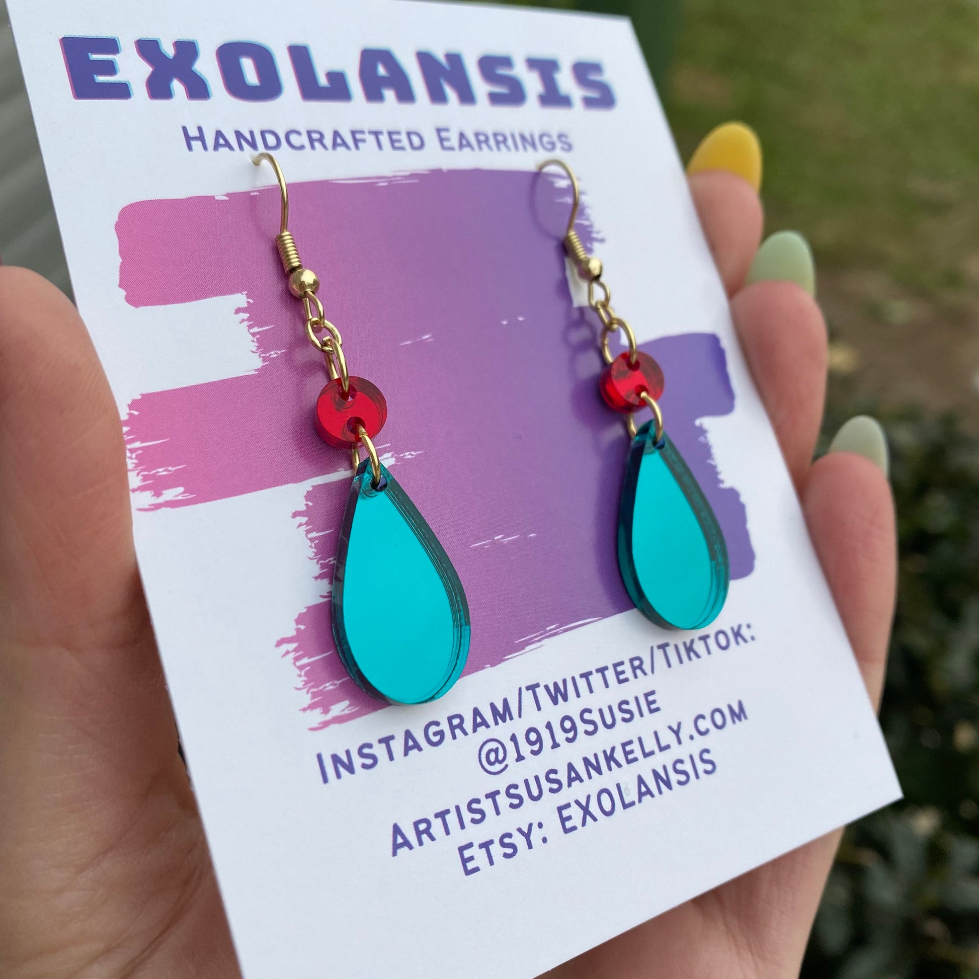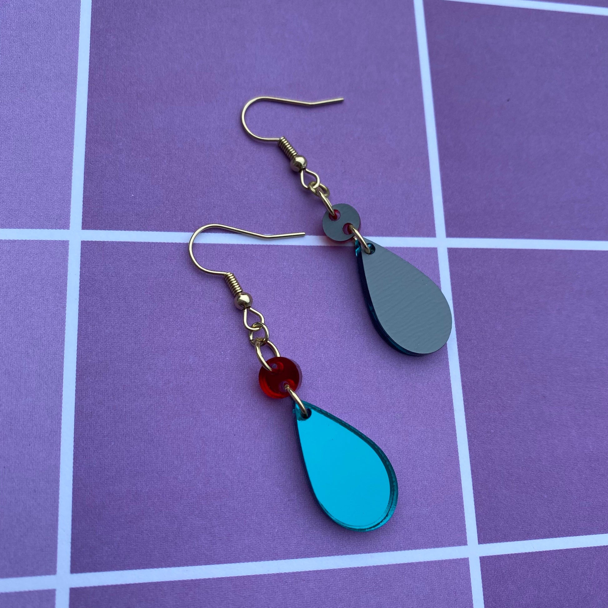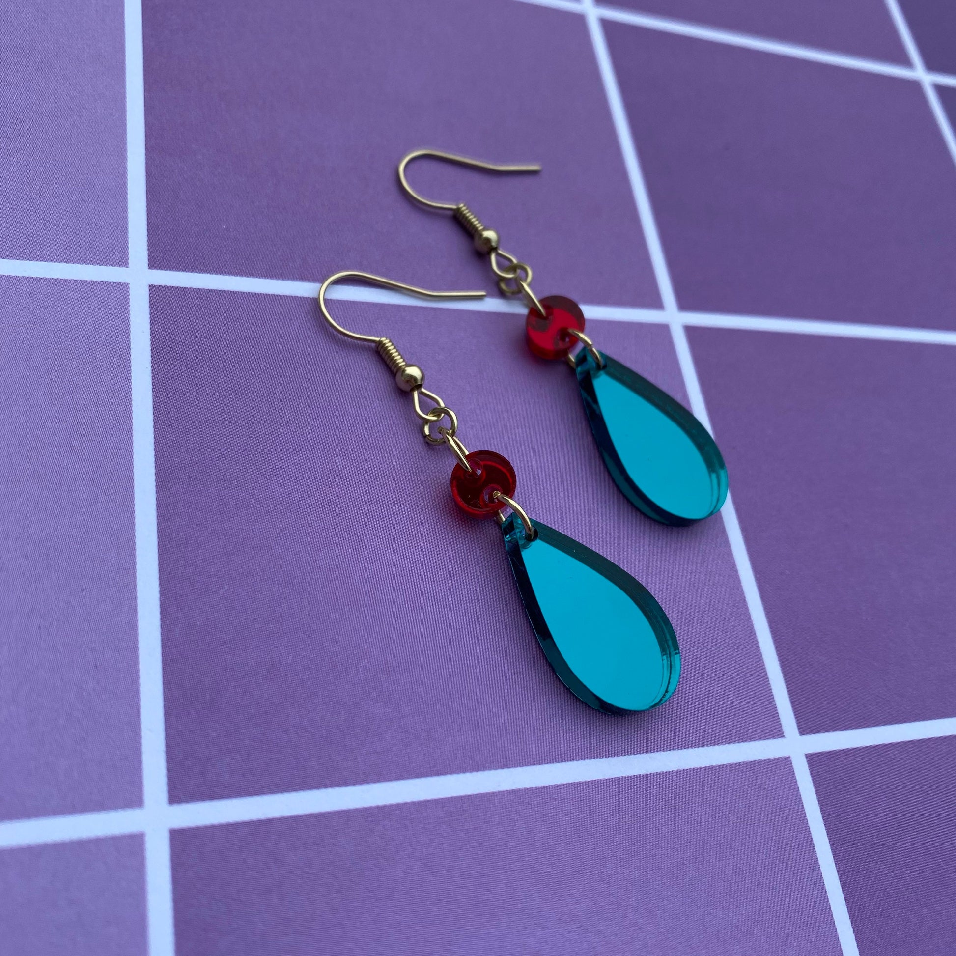 The earrings are cut from my own laser out of mirror backed acrylic!