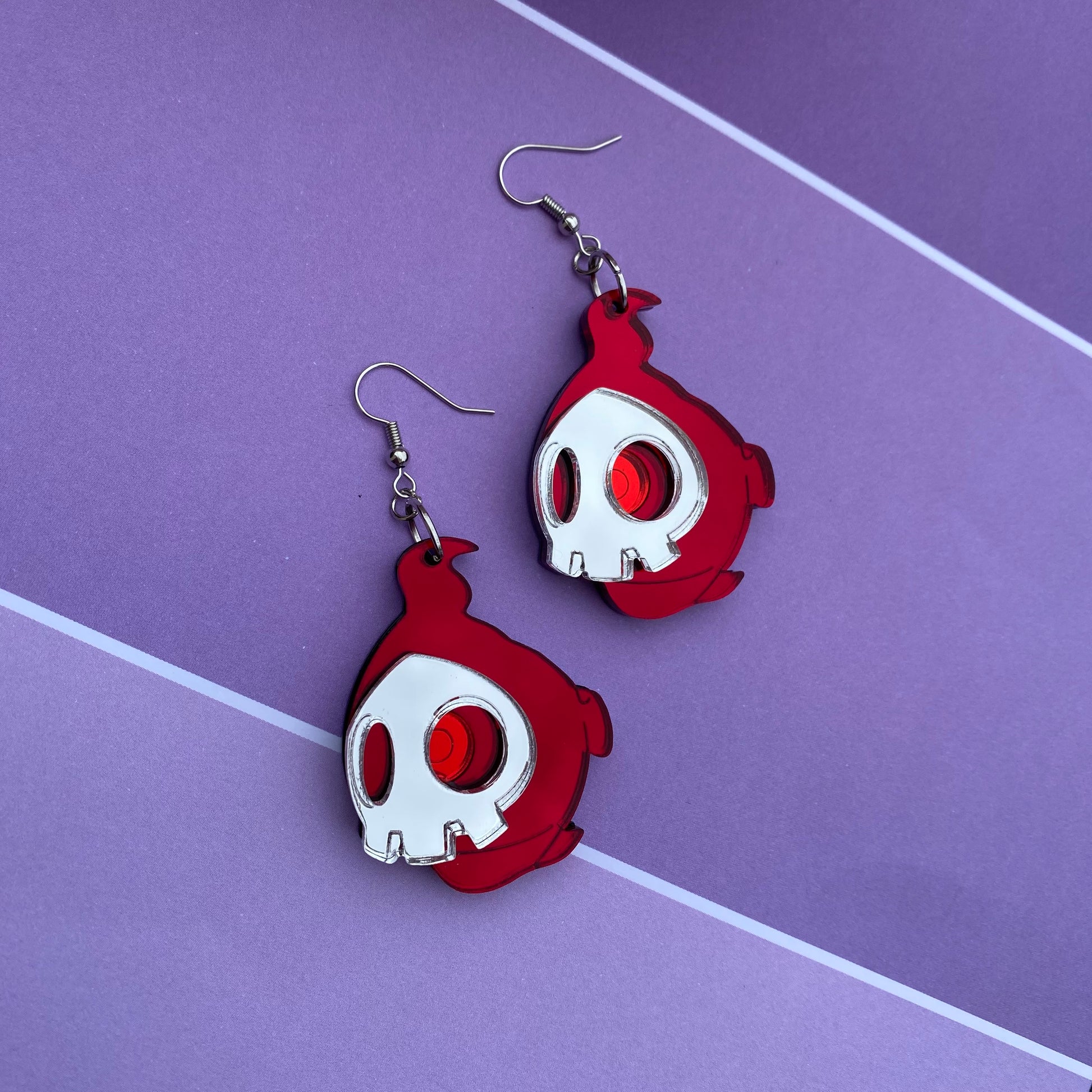 The earrings are 1.5” long and cut from my own laser! The earrings are etched from mirror backed acrylic, meaning the front is shiny and the back is a black acrylic color!