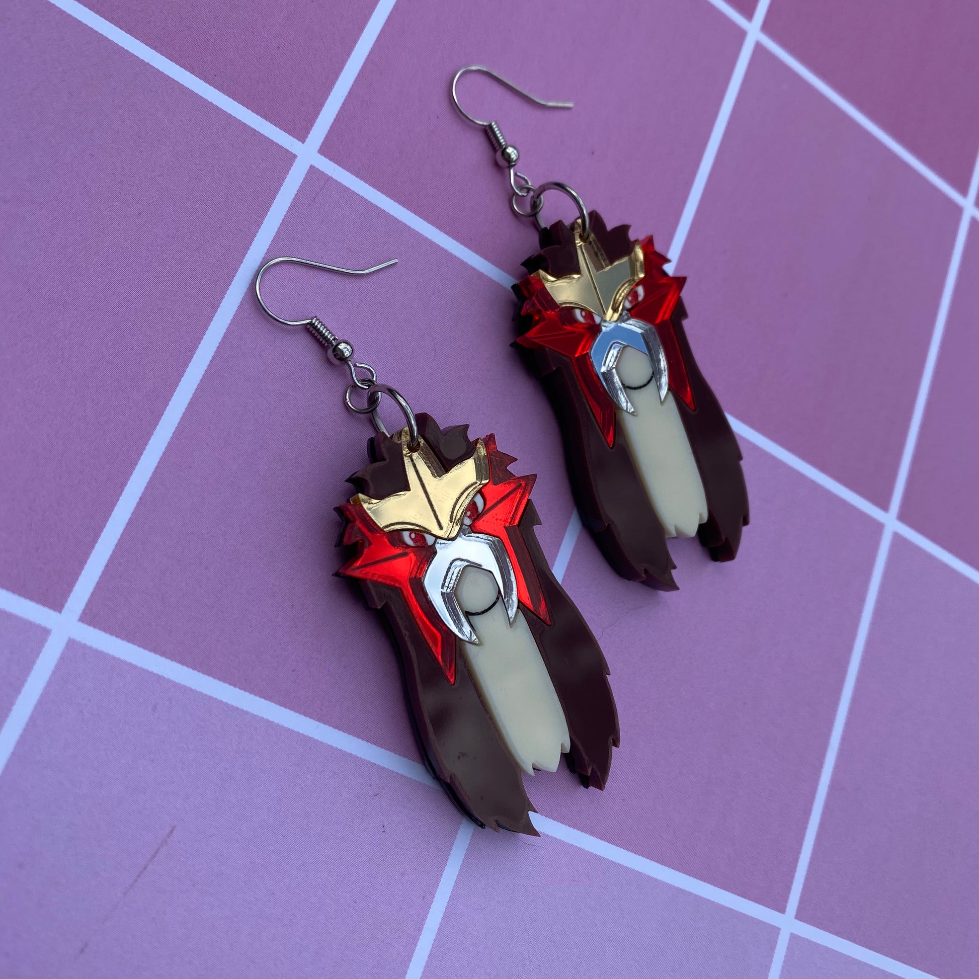 The earrings are 2” long and cut from my own laser! The earrings are cut and etched from mirror backed acrylic, and attached to an acrylic base. The back will be a plain acrylic color!