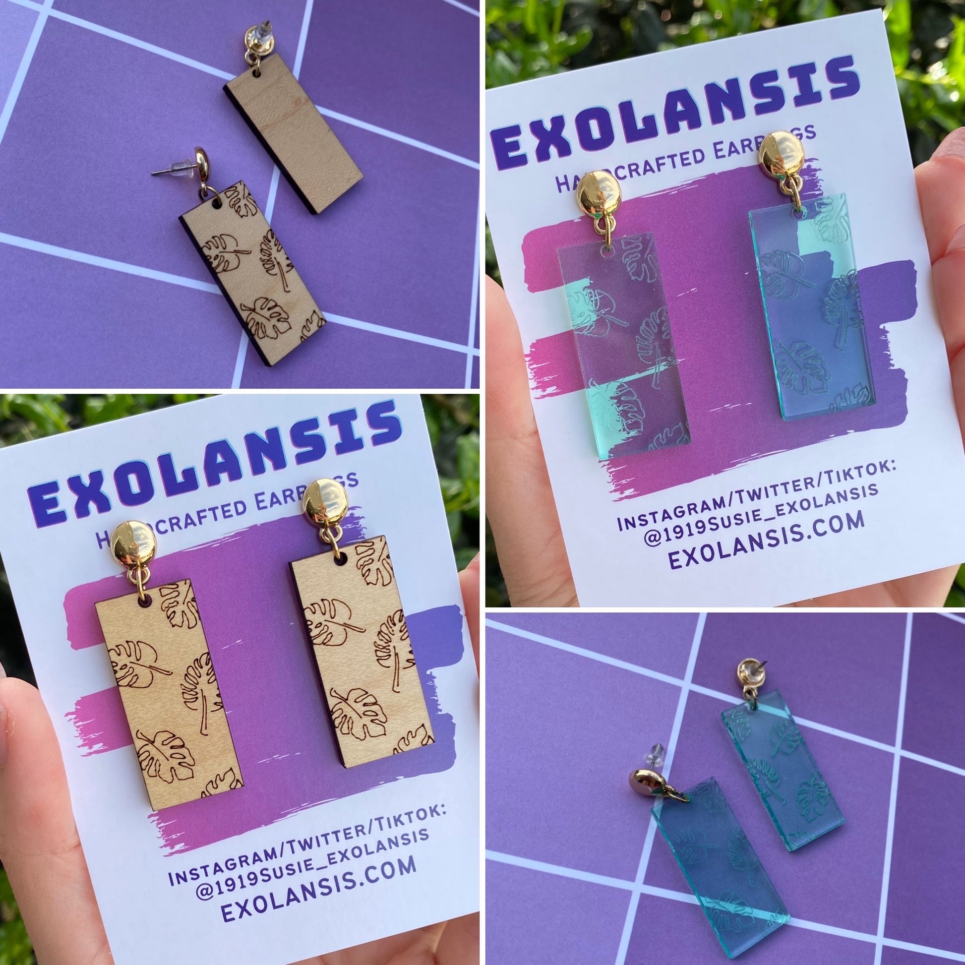 The earrings are available in wood and acrylic!