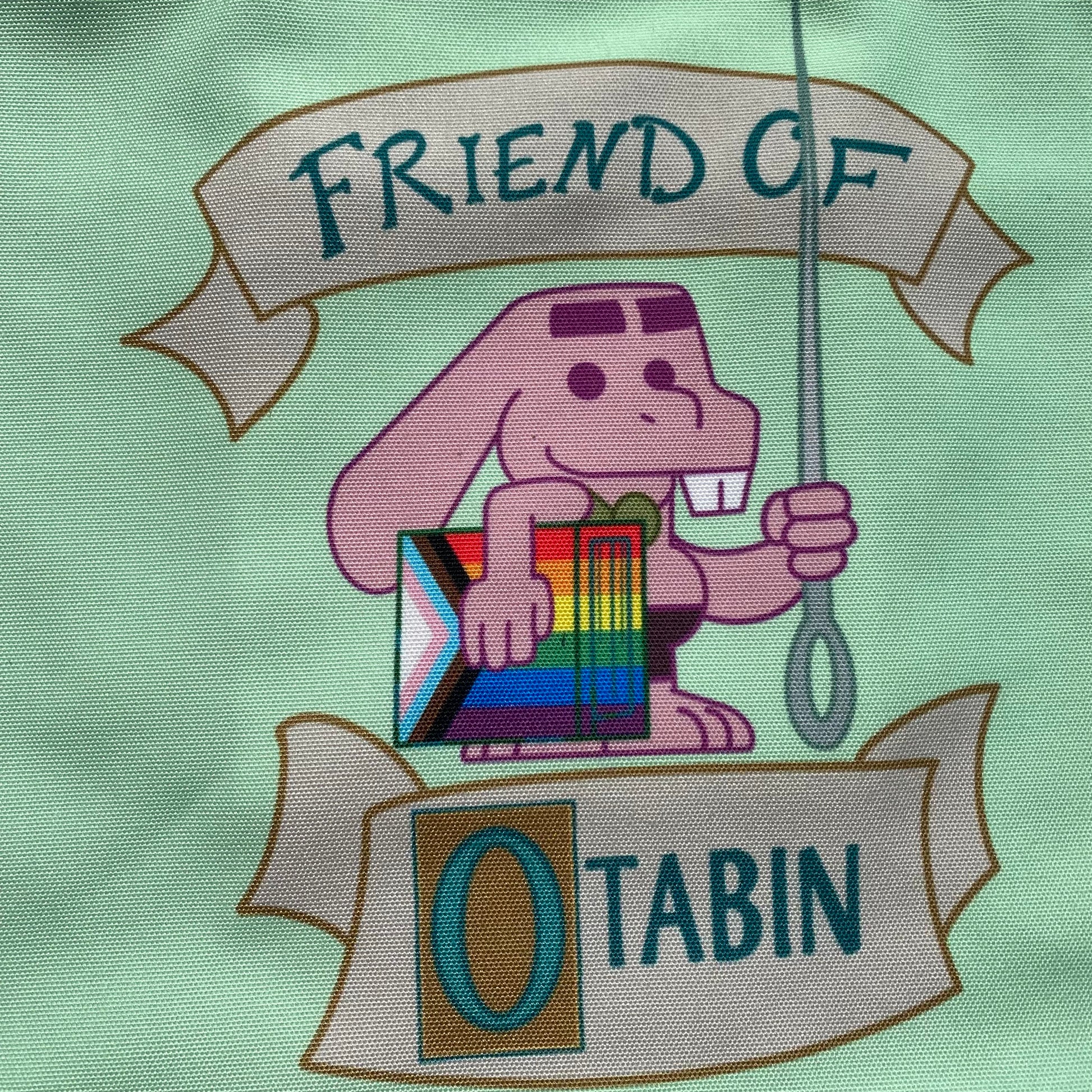 Inspired by Otabin- who just needed a friend, and the iconic Friend of Dorothy! Otabin carries his trusty needle and a book featuring the progressive Pride flag!