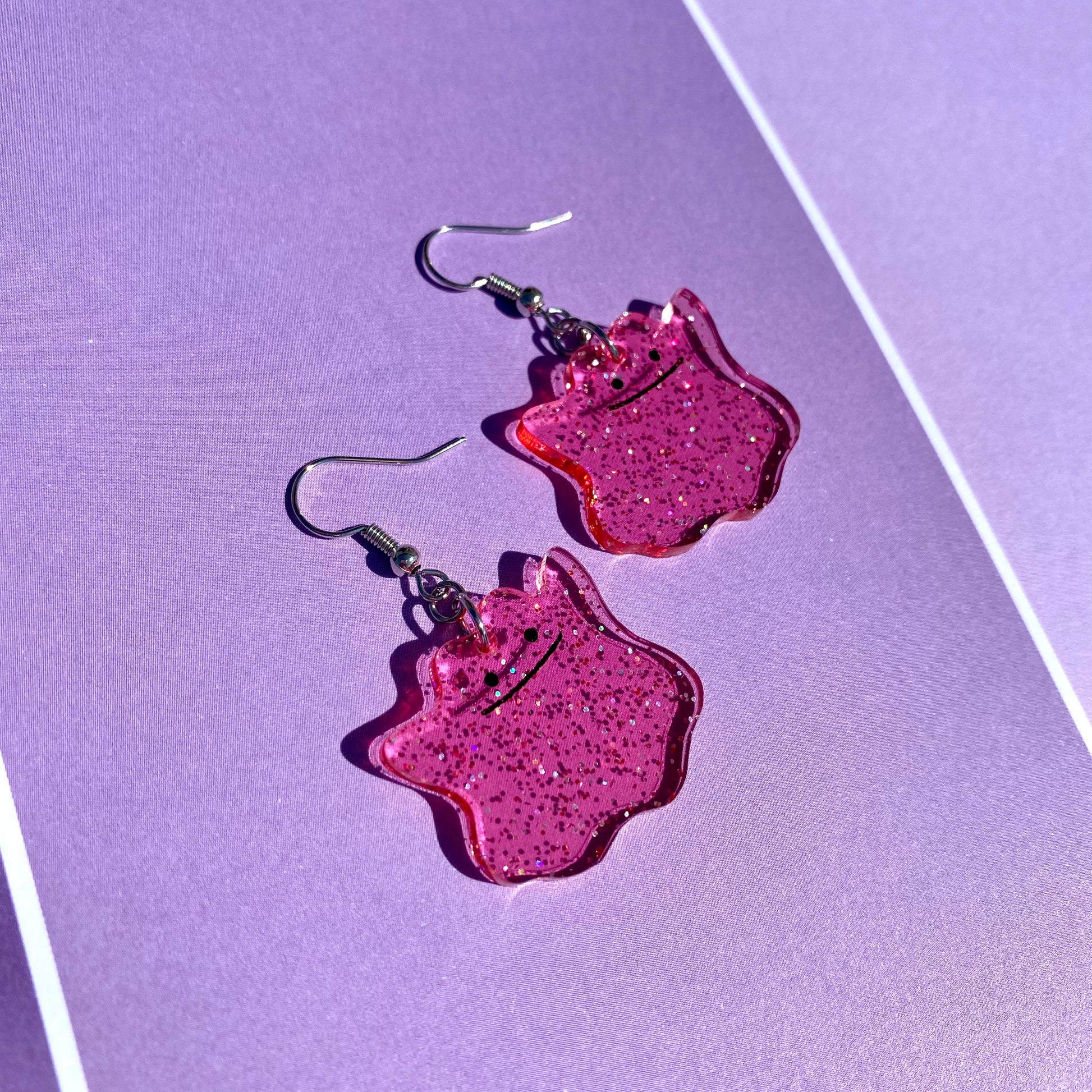 Ditto Pink Glitter Acrylic Earrings