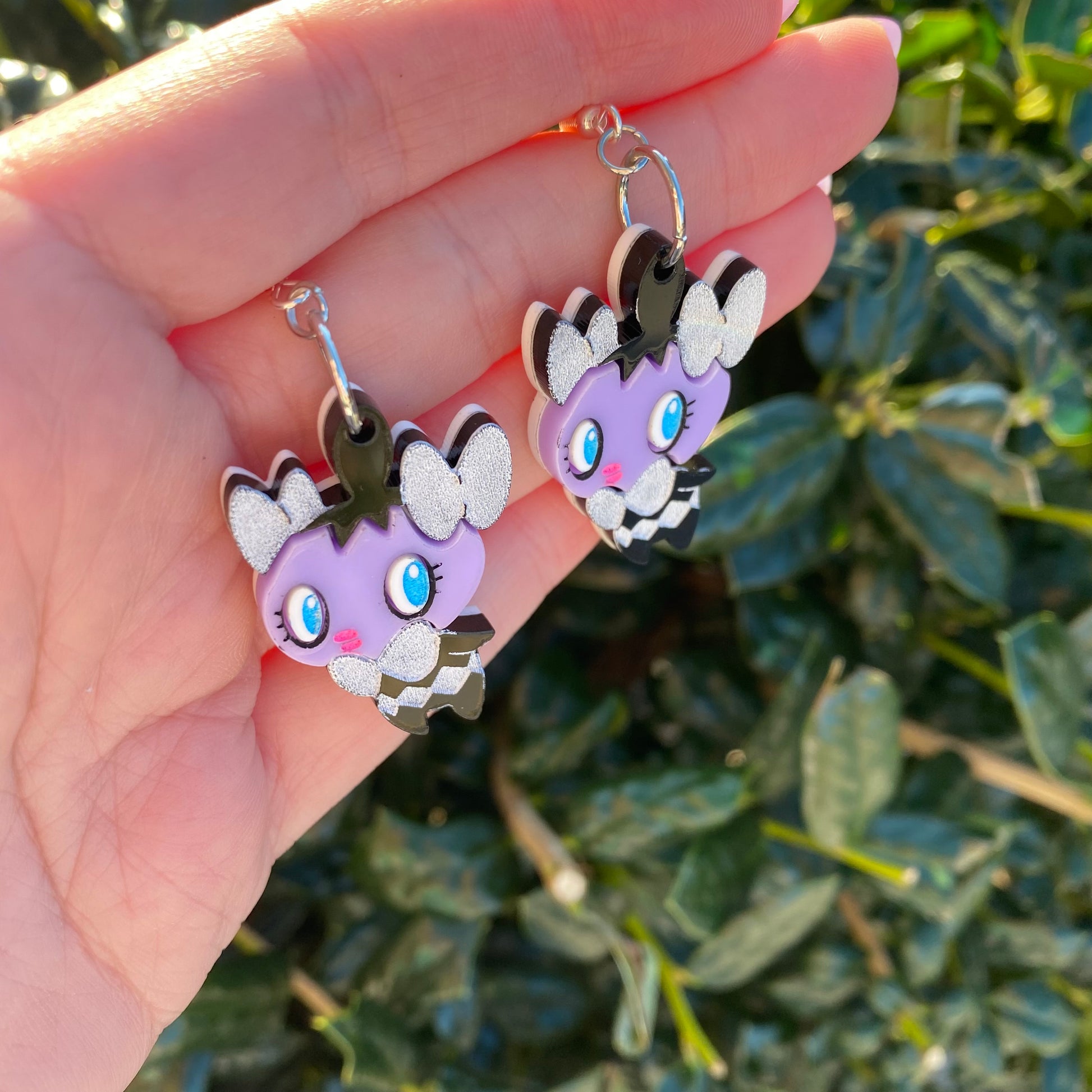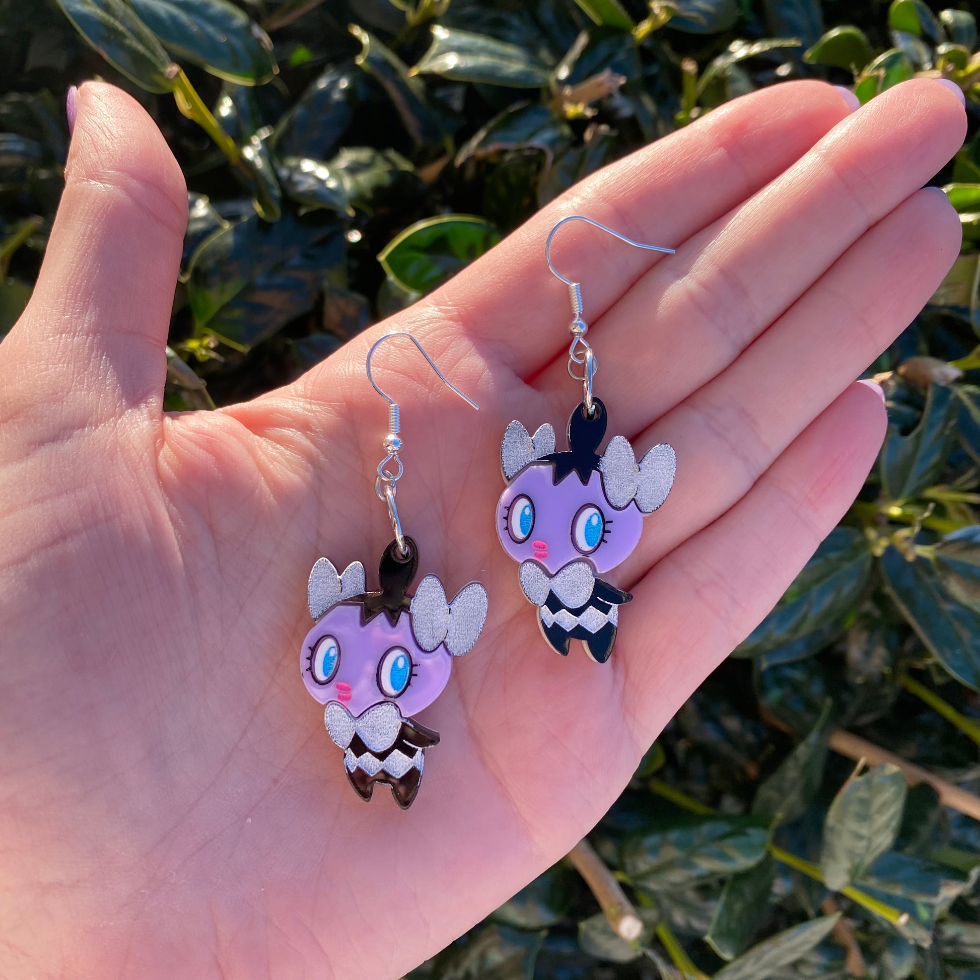 The earrings are 1.3” long and cut from my own laser! The earrings are cut and etched, and attached to an acrylic base. The back will be a plain acrylic color!