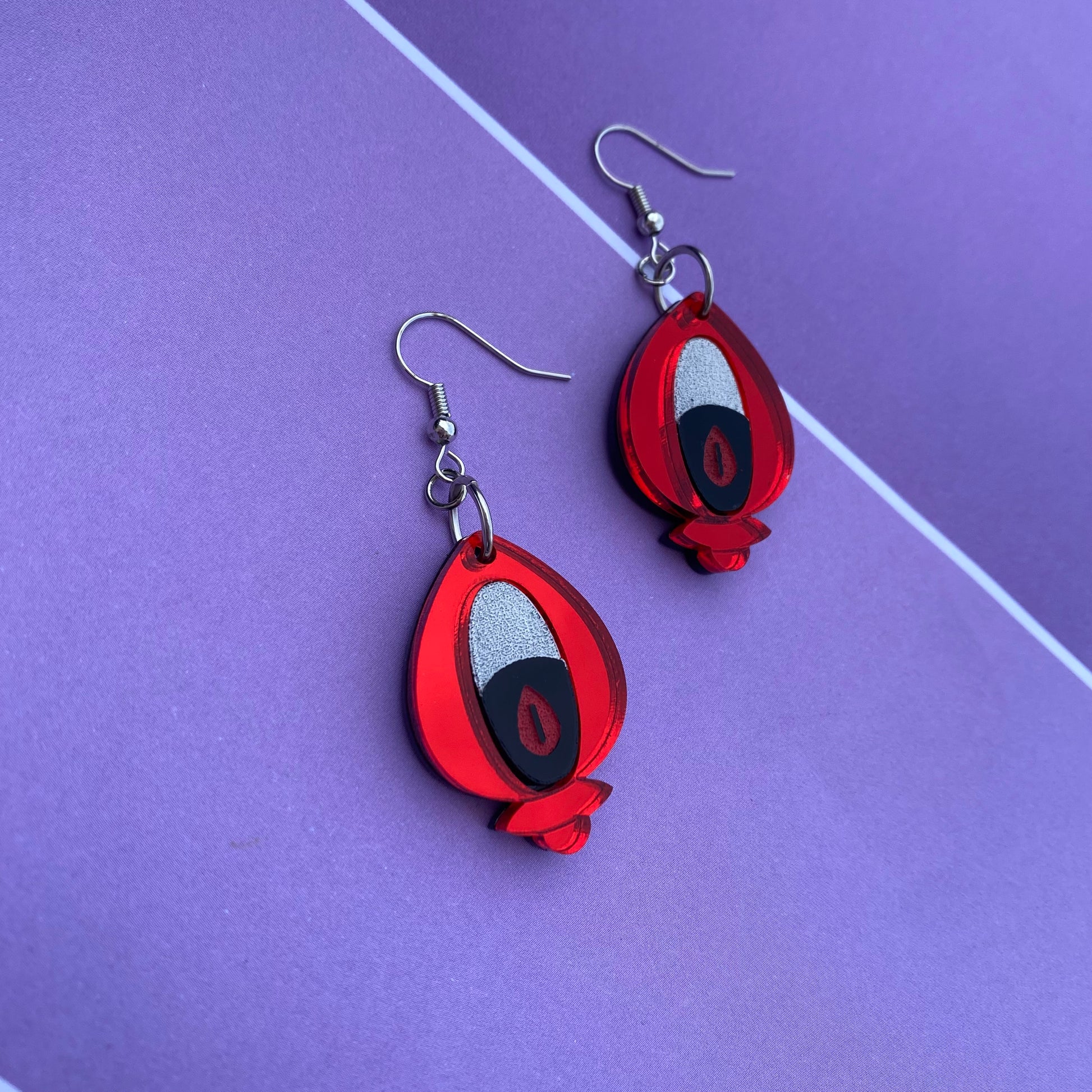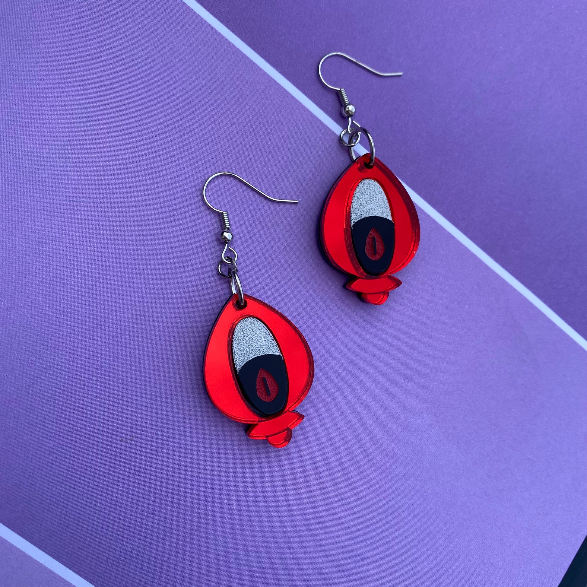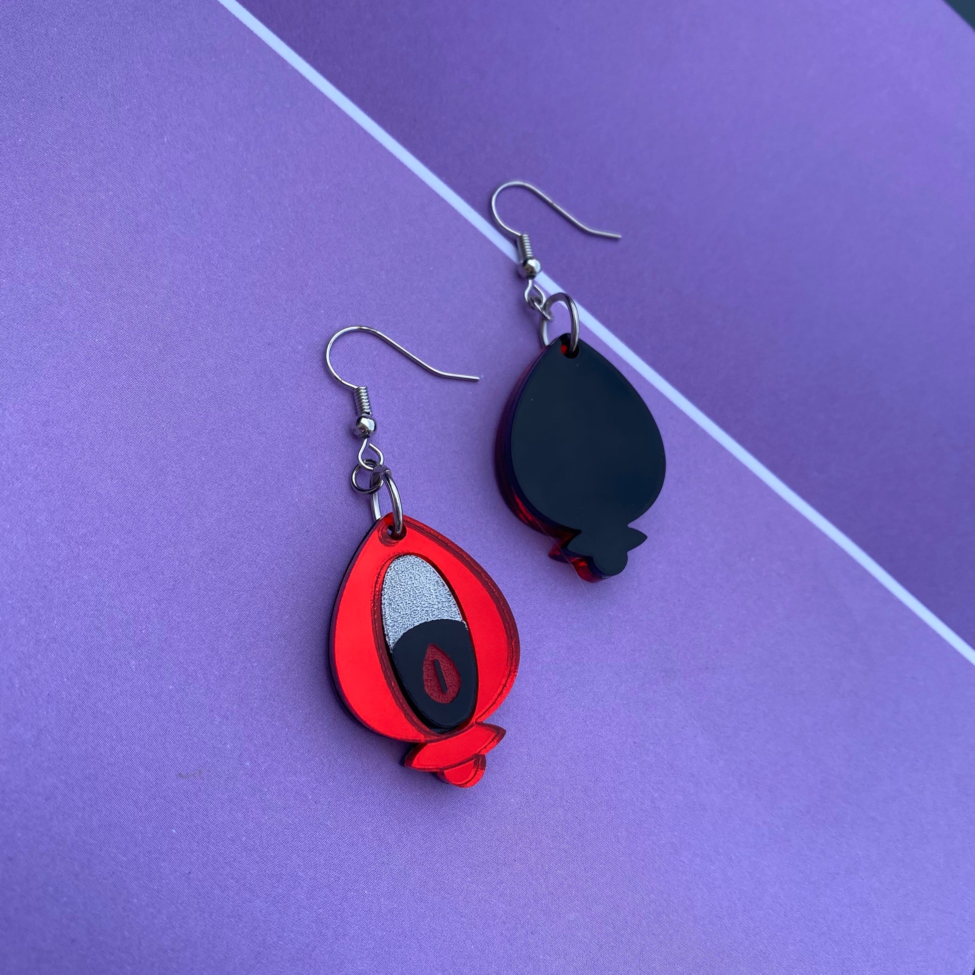 The earrings are 1.2” long and cut from my own laser! The earrings are cut and etched from mirror backed acrylic, and attached to an acrylic base. The back will be a plain acrylic color!
