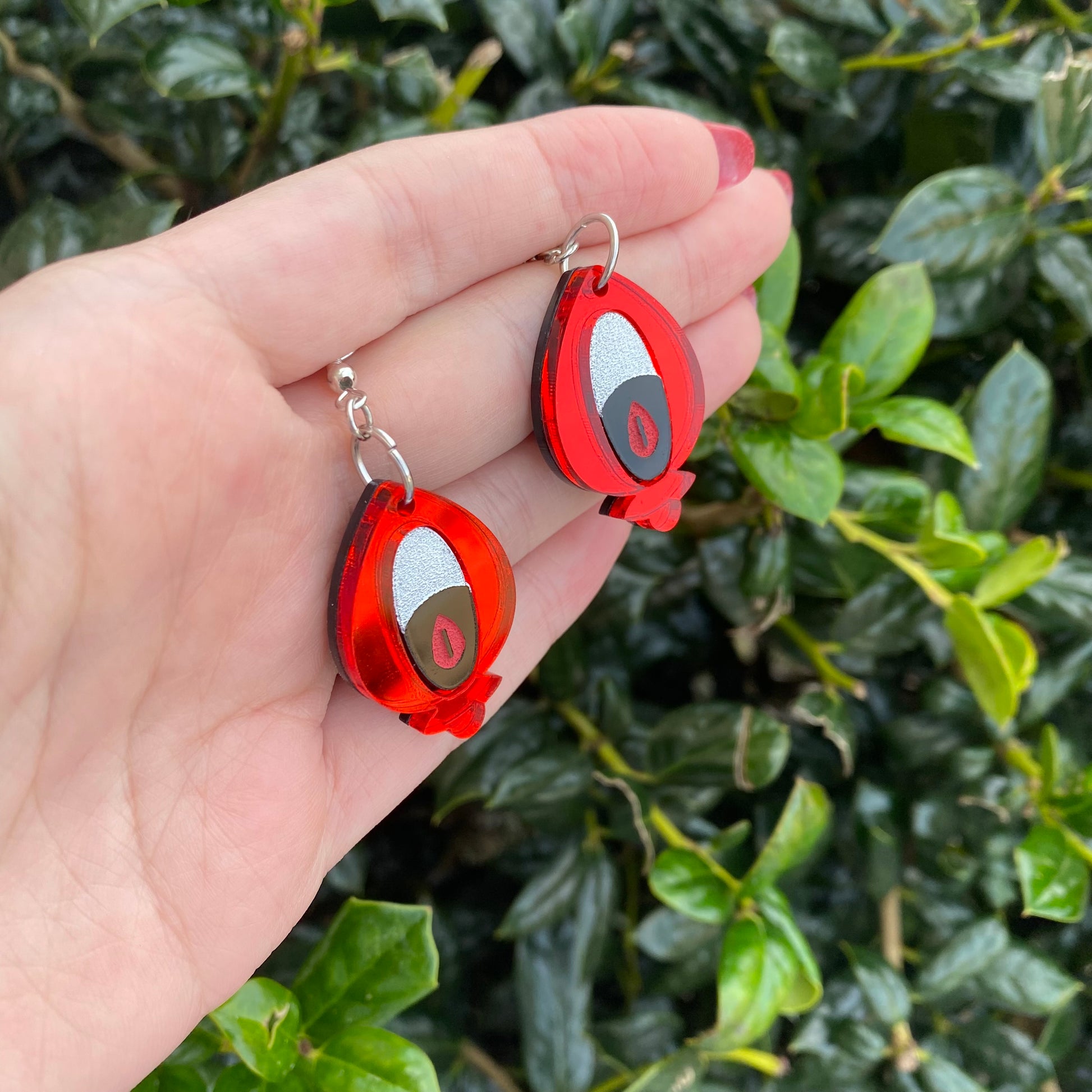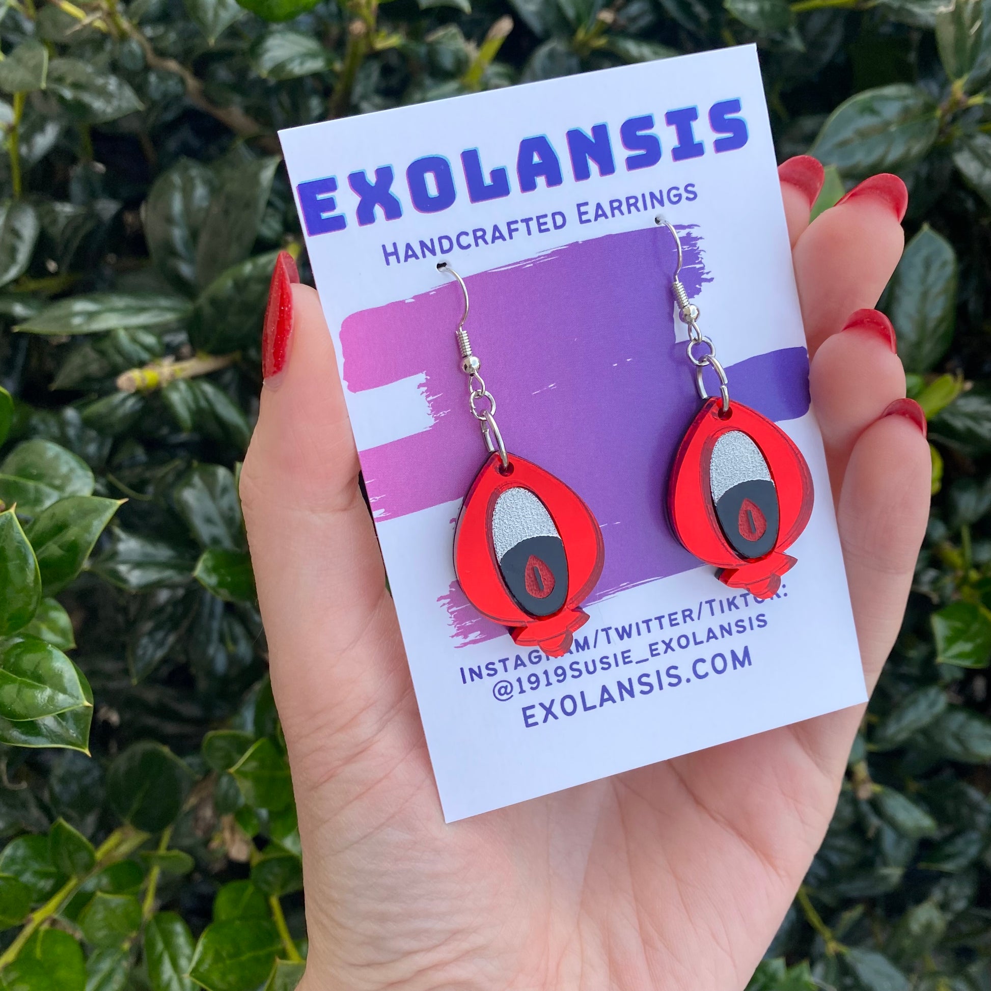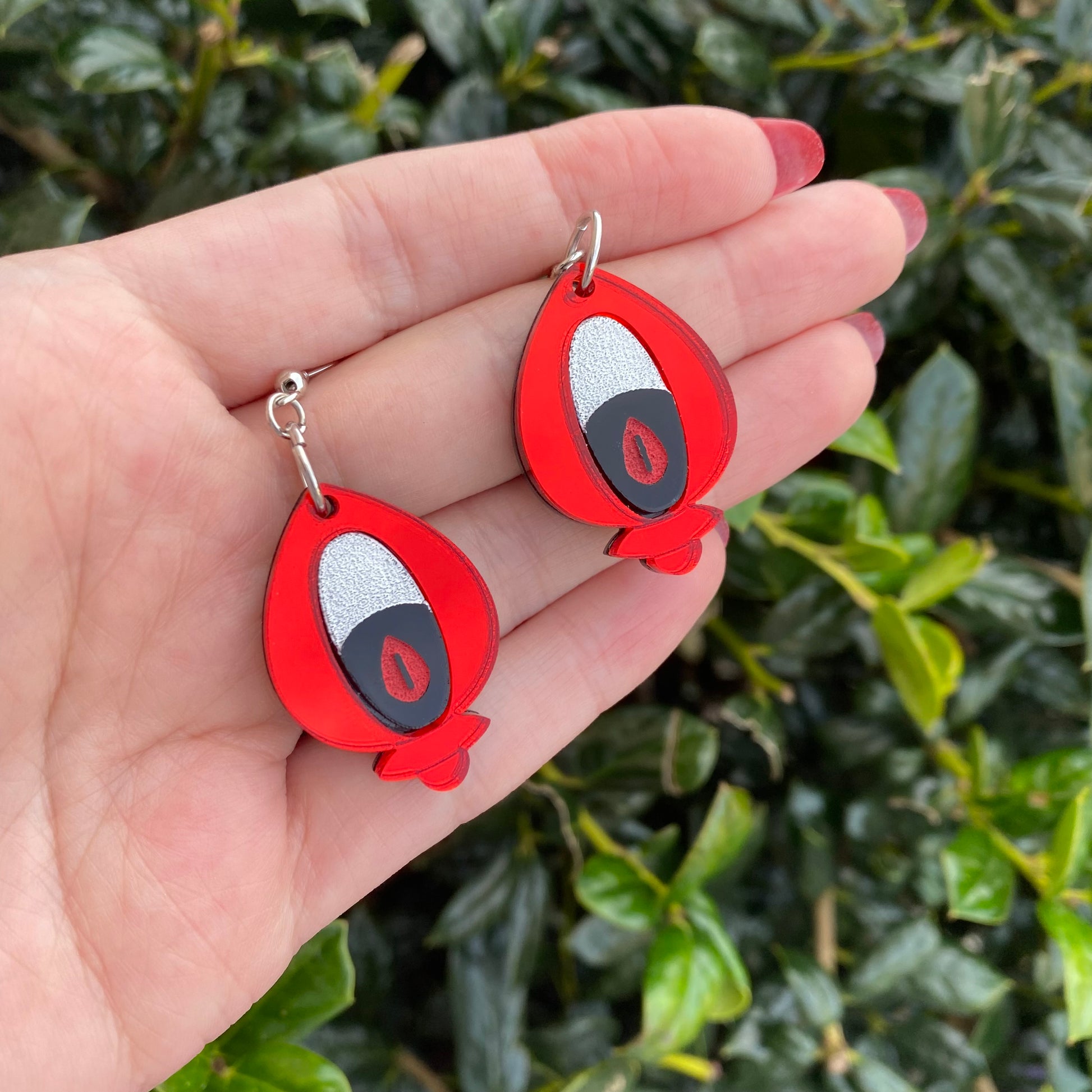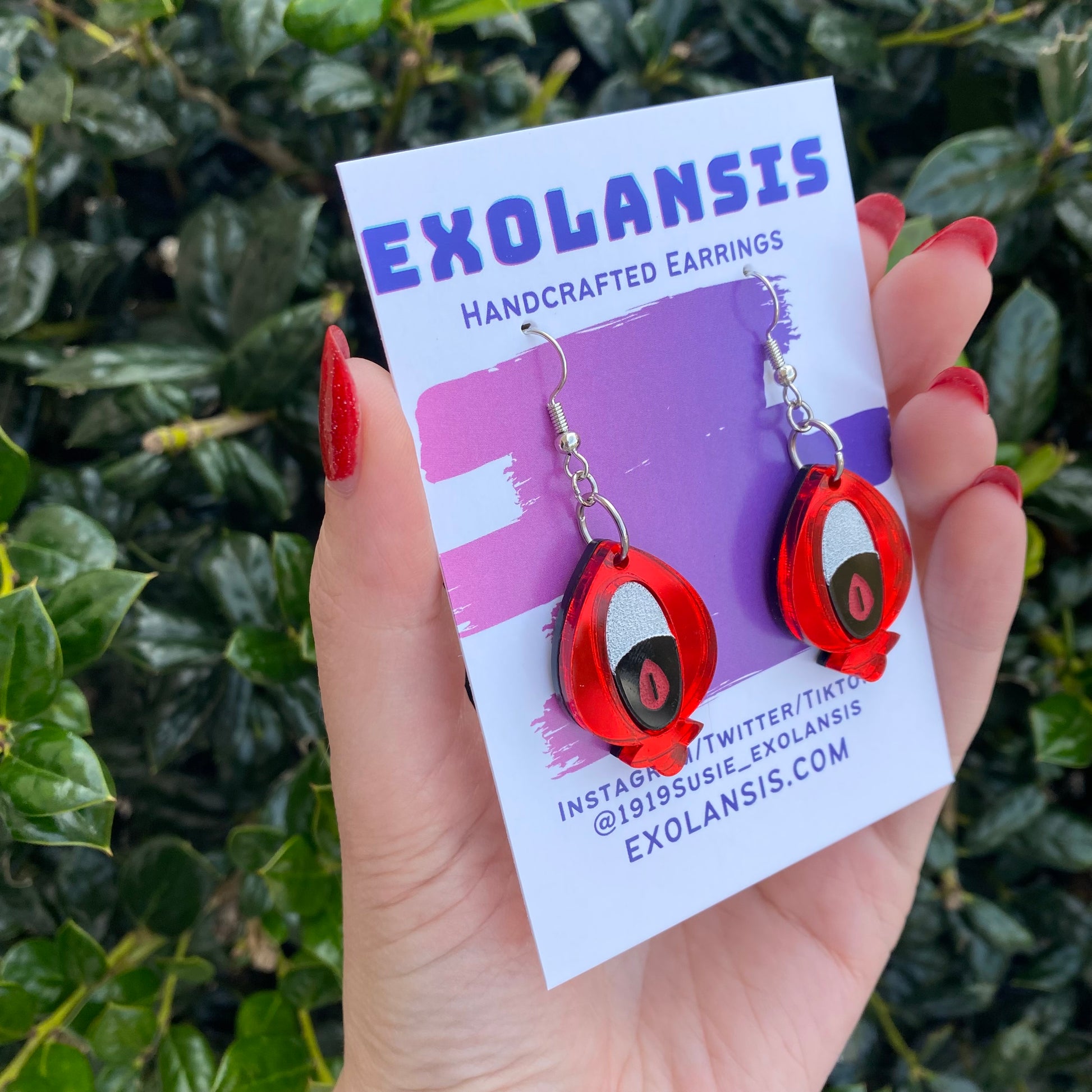 The earrings are 1.2” long and cut from my own laser! The earrings are cut and etched from mirror backed acrylic, and attached to an acrylic base. The back will be a plain acrylic color!