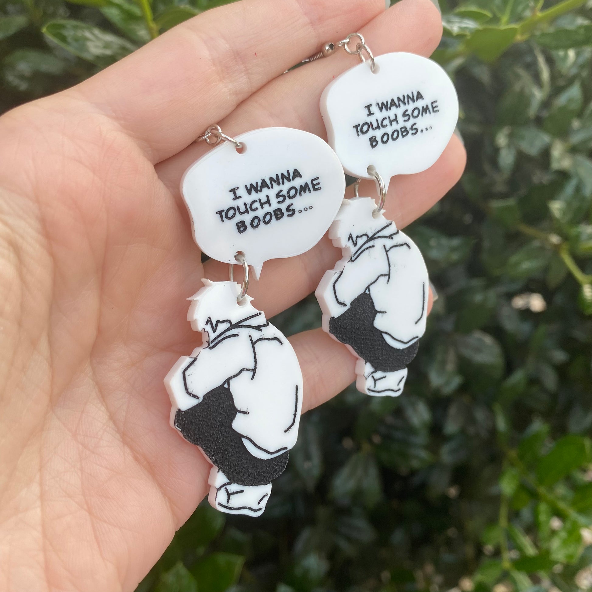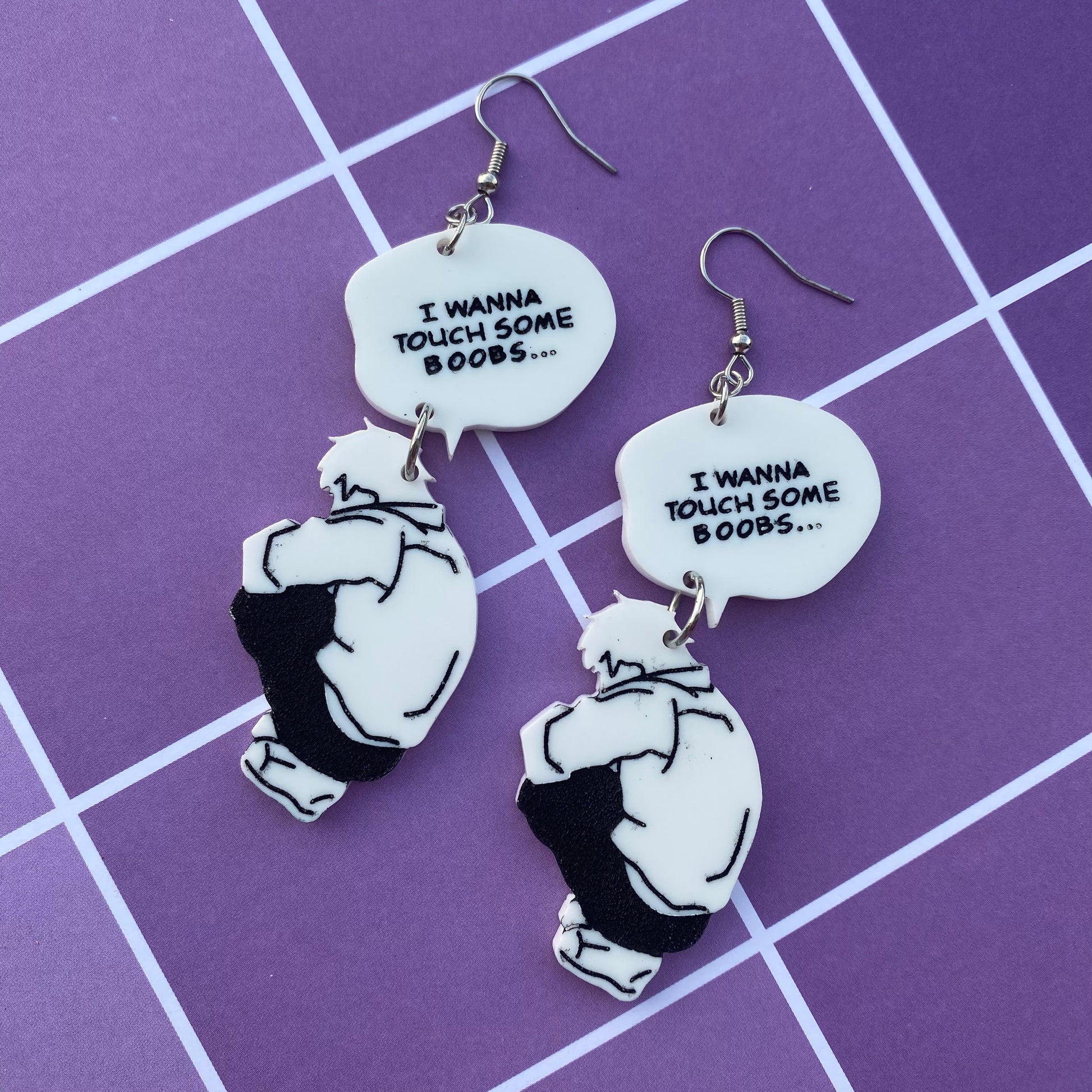 “I just wanna touch some boobs….” Chainsaw Man Inspired Acrylic Earrings