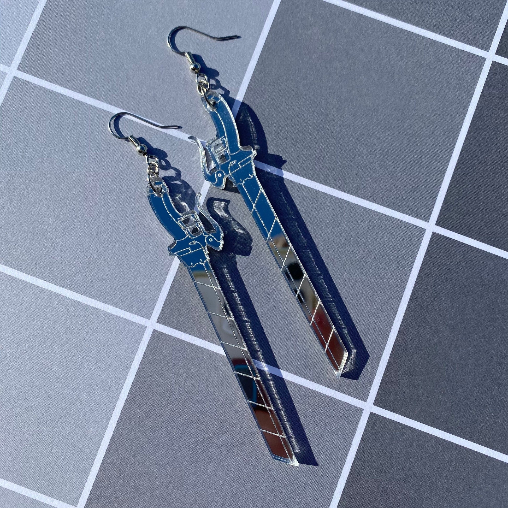 AOT Silver Blade Large Mirror Backed Acrylic Earrings