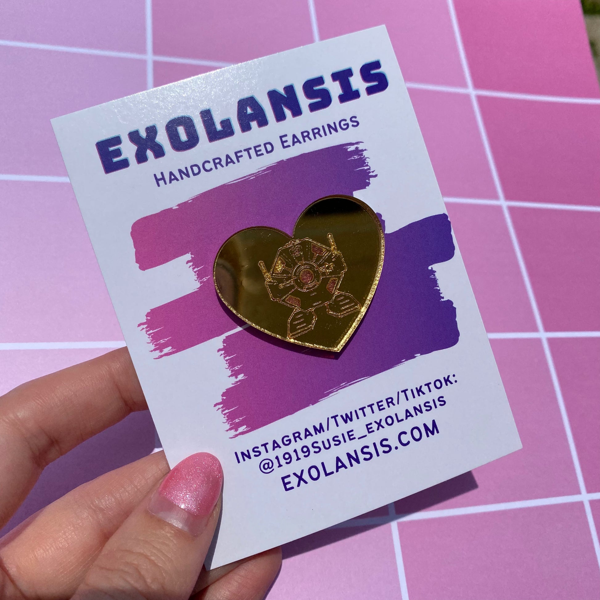 The pin is etched and cut from my own laser! The front has etching in gold, while the back is a grey acrylic!