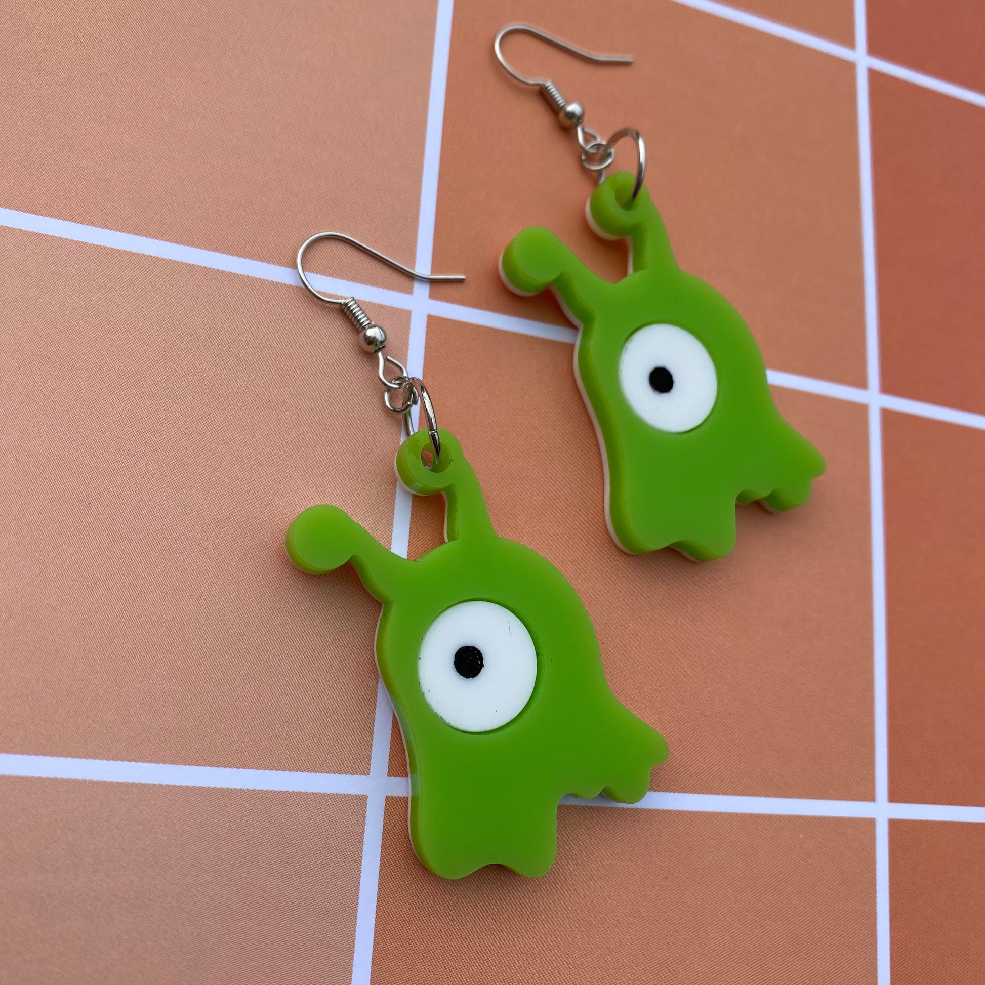 Neon Green Brain Slug Acrylic Earrings