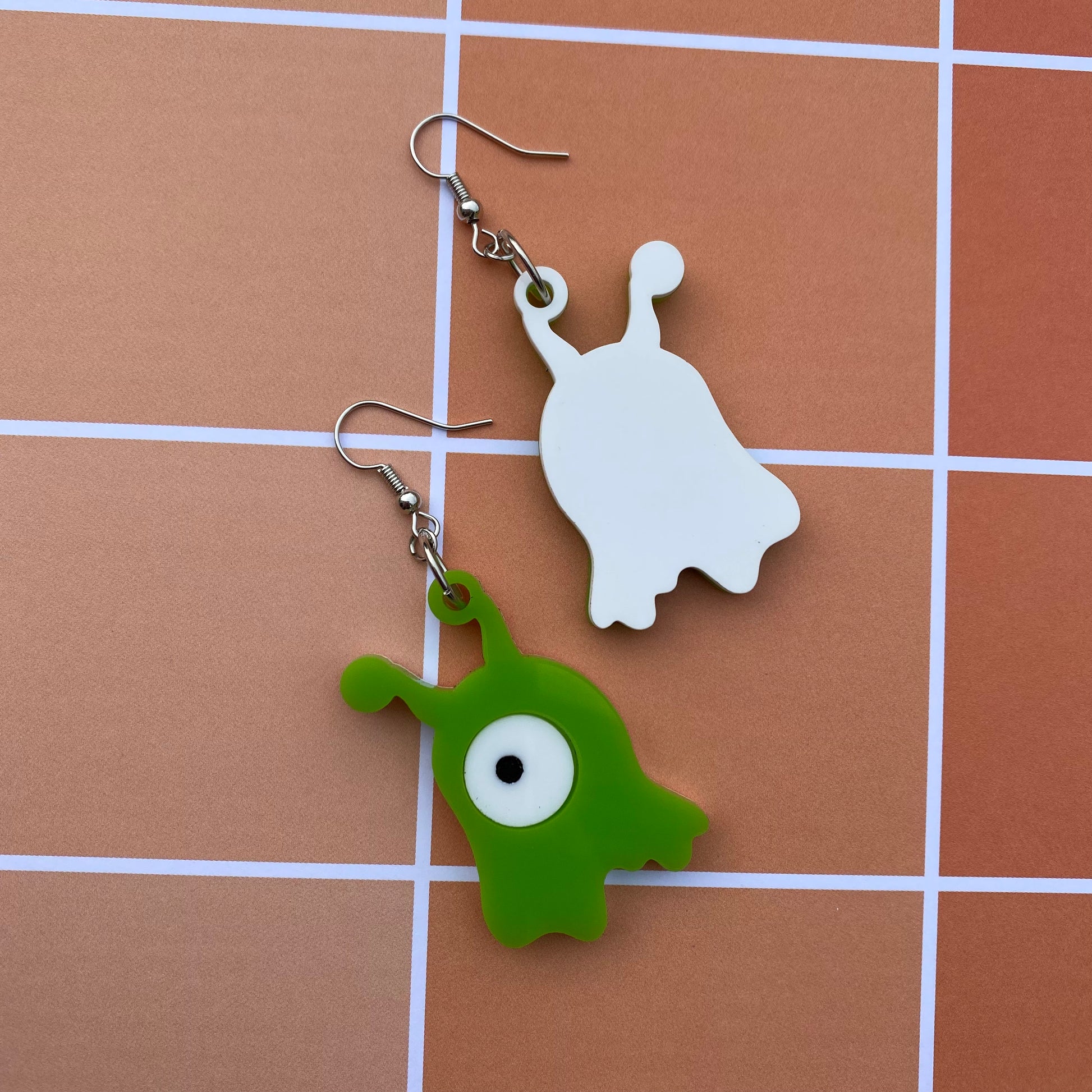These little brain slugs are the perfect size, coming in at 1.7”- cut and etched from my own laser! The etchings are hand painted and are only on the front side of the earrings. The backs are a plain white acrylic.