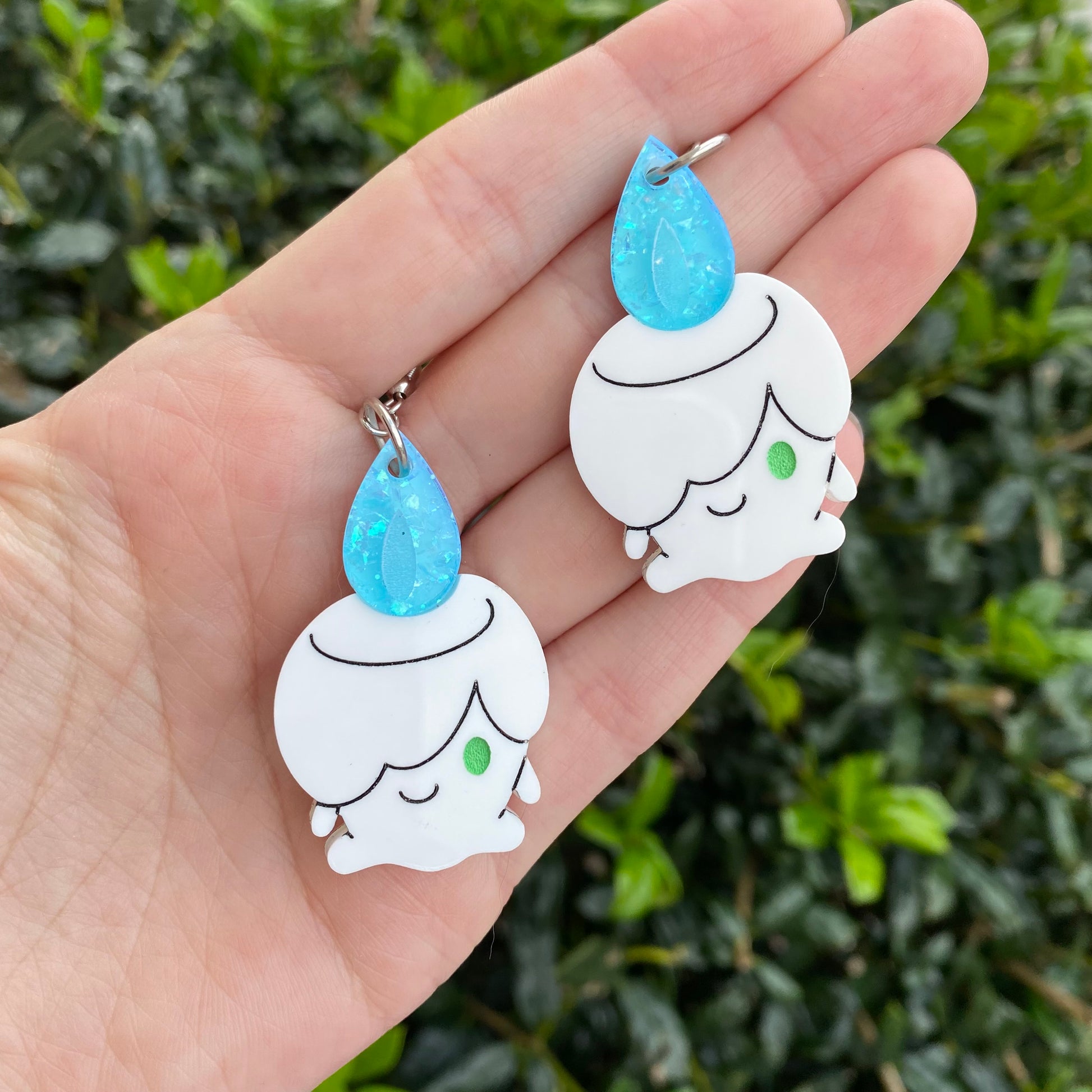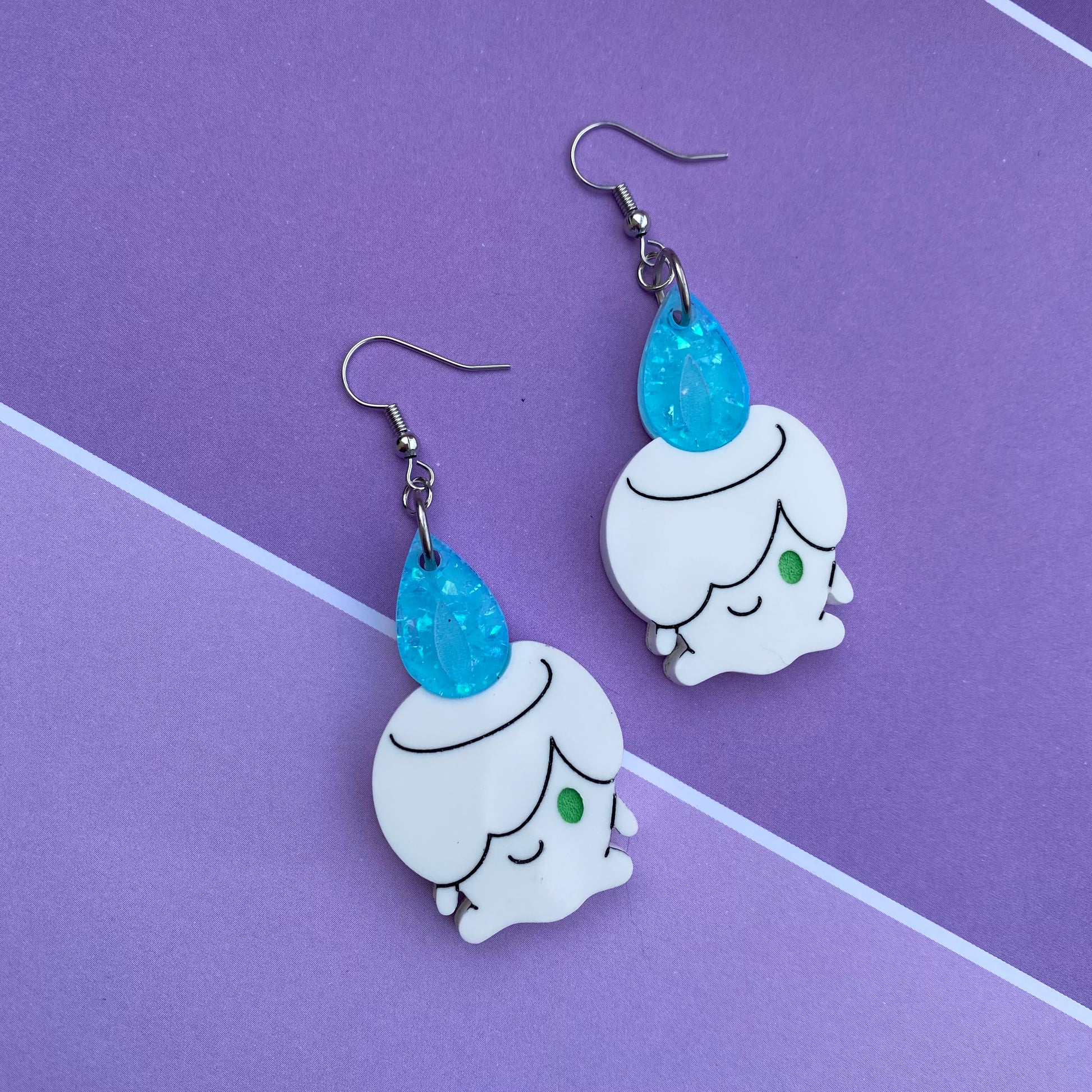 The earrings are 1.2” long and cut from my own laser! The earrings are cut and etched, and attached to an acrylic base. The back will be a plain acrylic color!