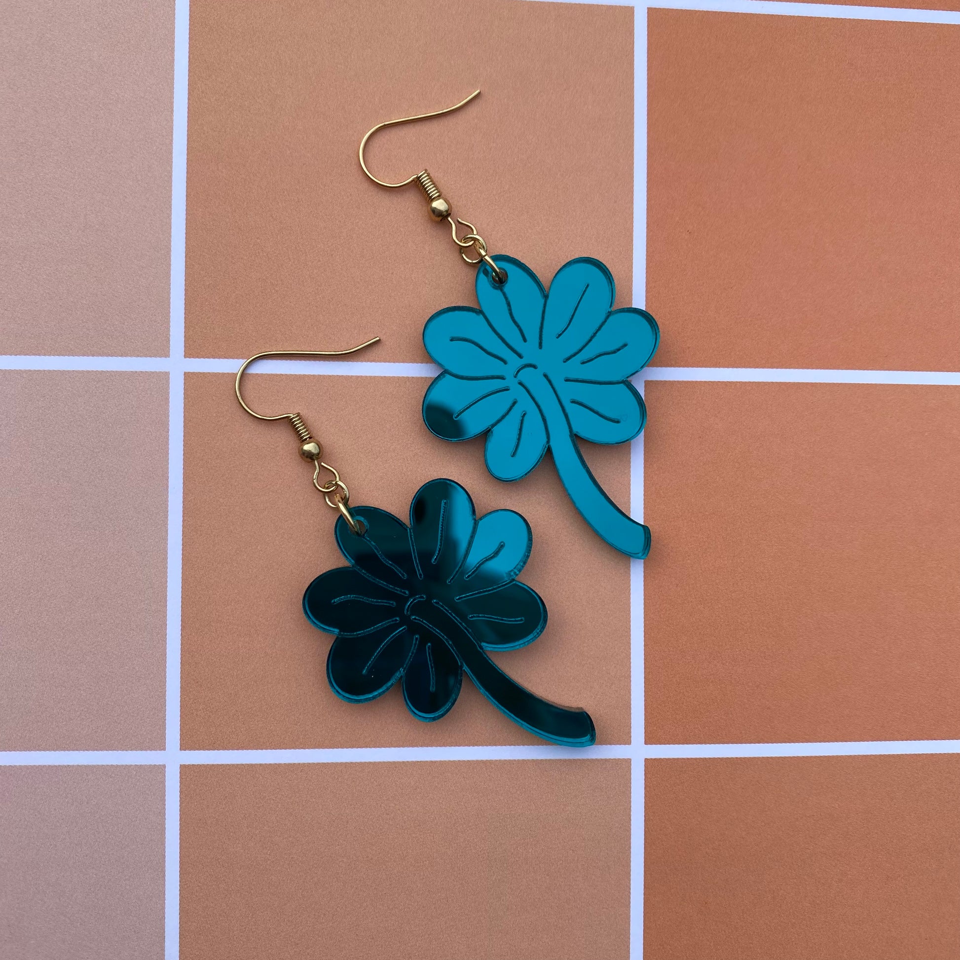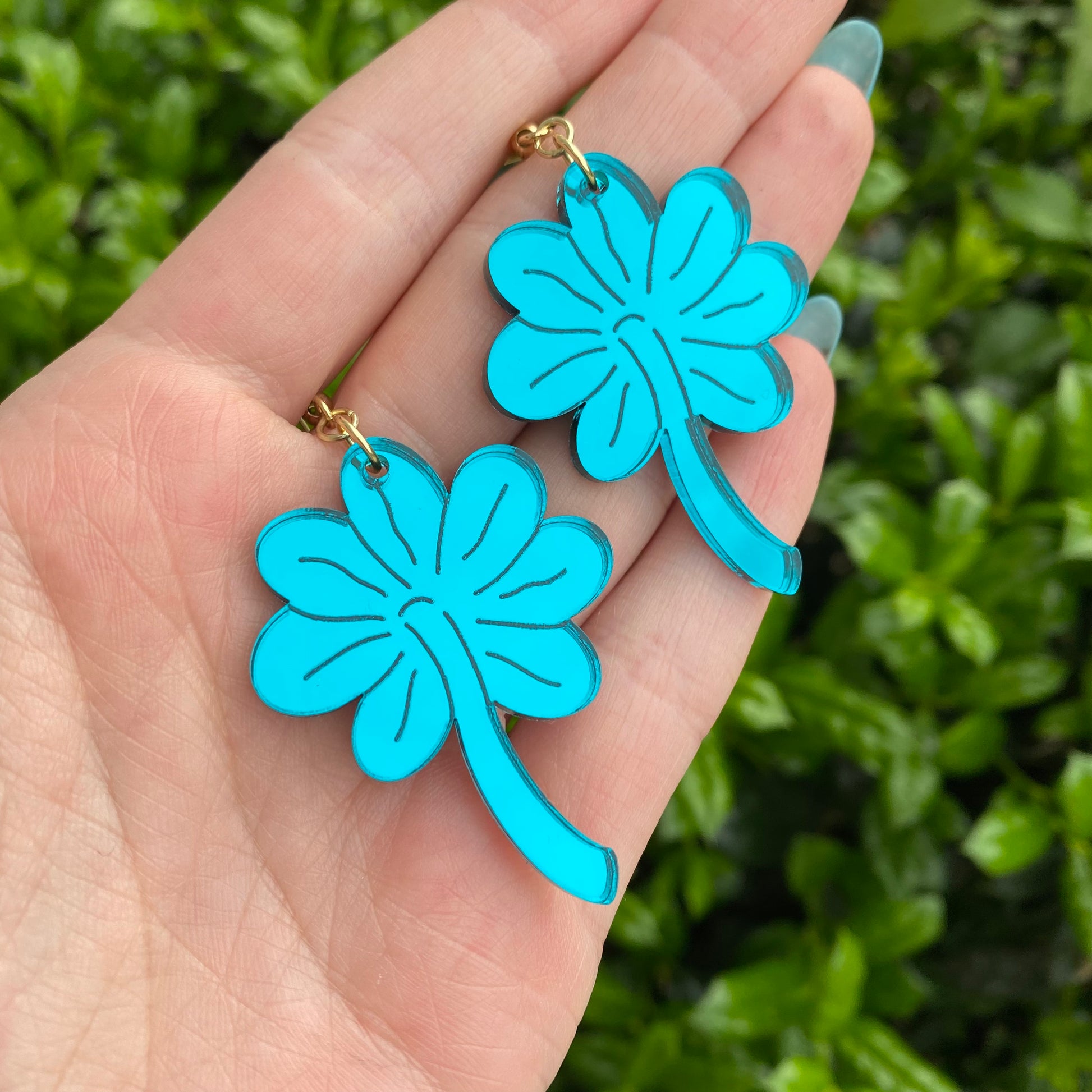 Luck of the Fryrish Seven Leaf Clover Mirror Acrylic Earrings