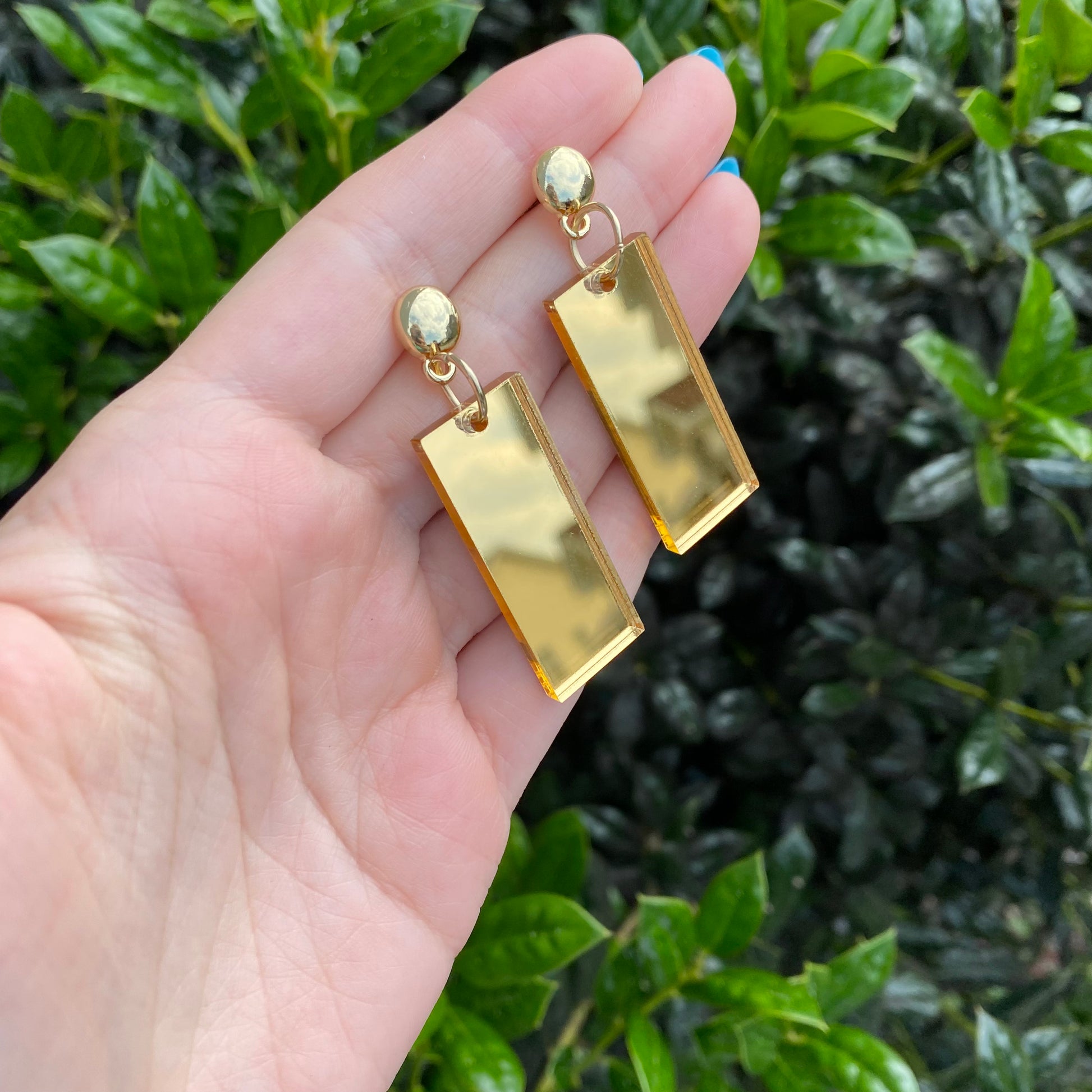 Meryl Stryfe Gold Mirror Acrylic Earrings