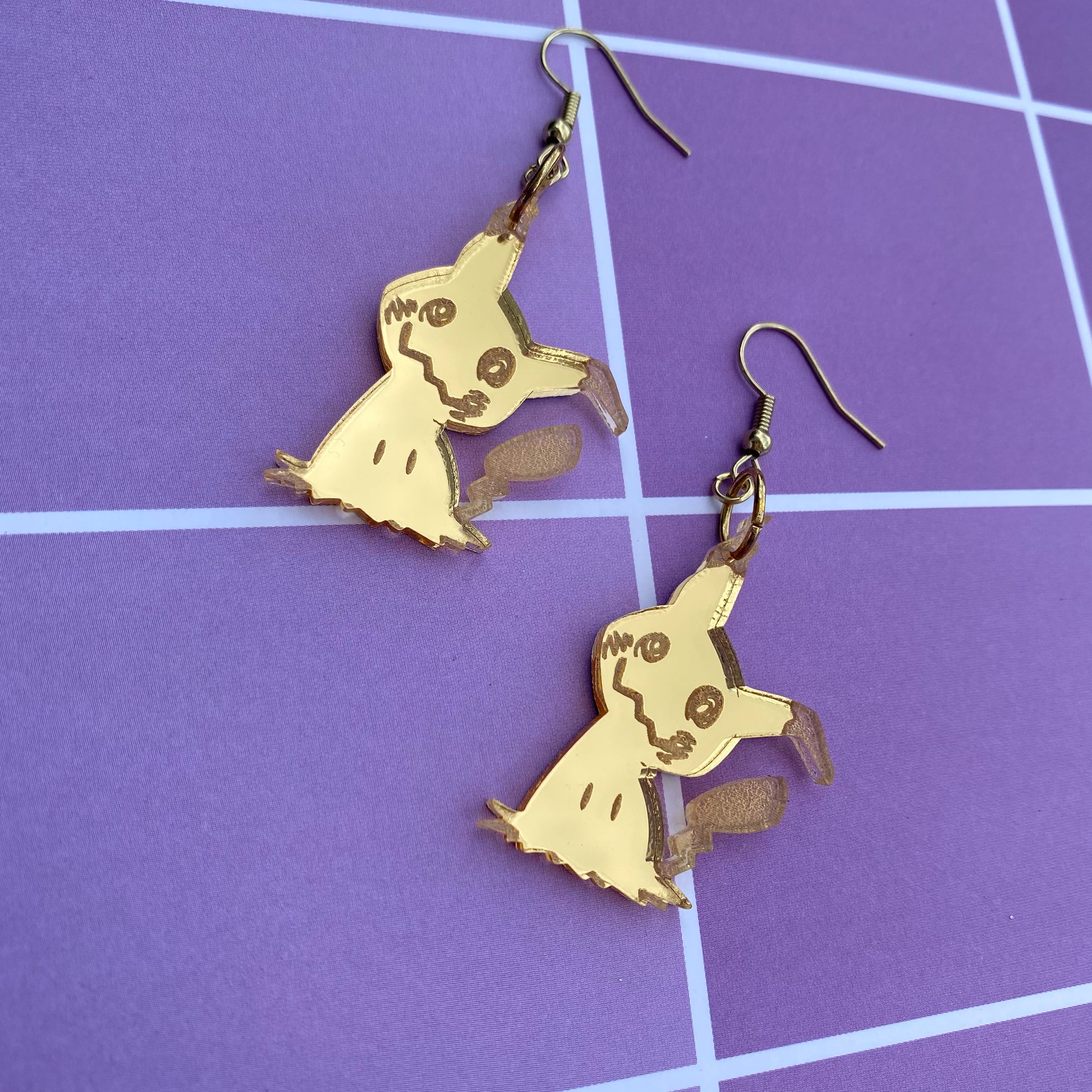 Mimikyu Golden Mirror Acrylic Earrings