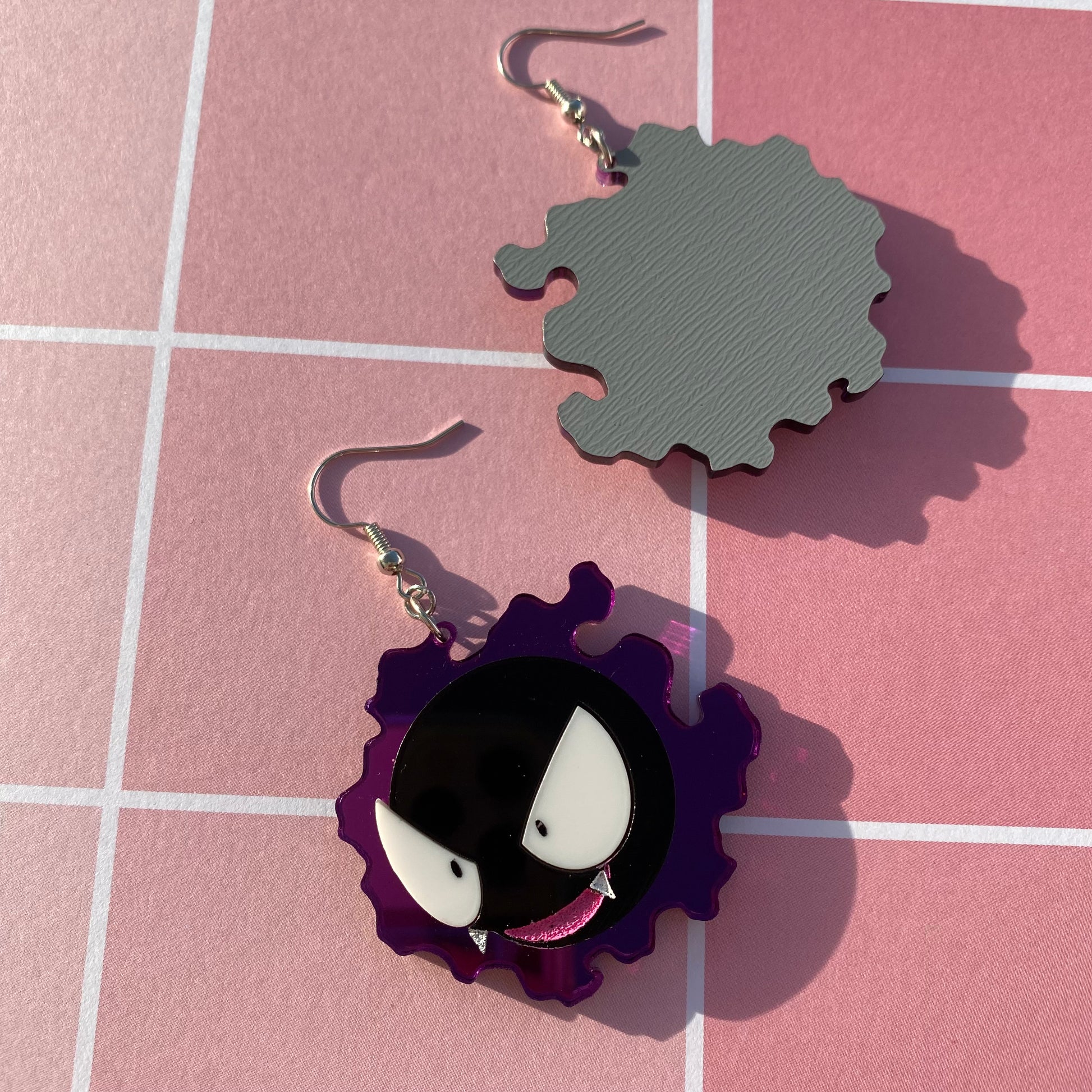 The earrings are 1.7” long and cut from my own laser! The earrings are etched from mirror backed acrylic, meaning the front is shiny and the back is a light grey color!