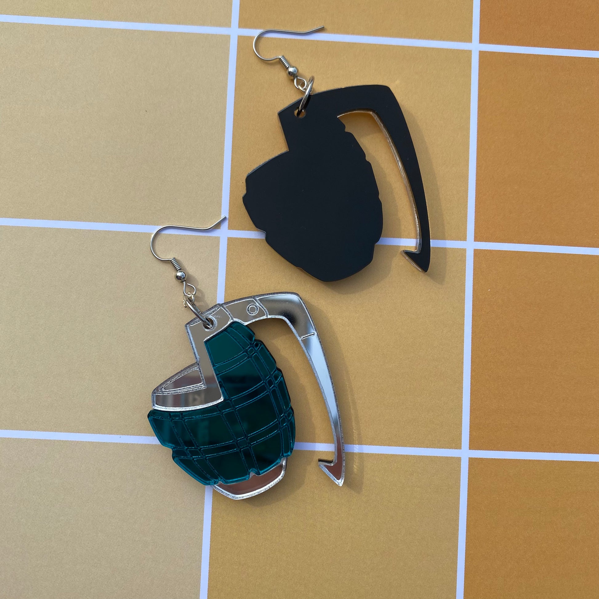 The earrings are 2” long- cut and etched from my own laser! The etchings are on the back side of the earrings- so the design can be seen from the front. The backs are a plain black acrylic.