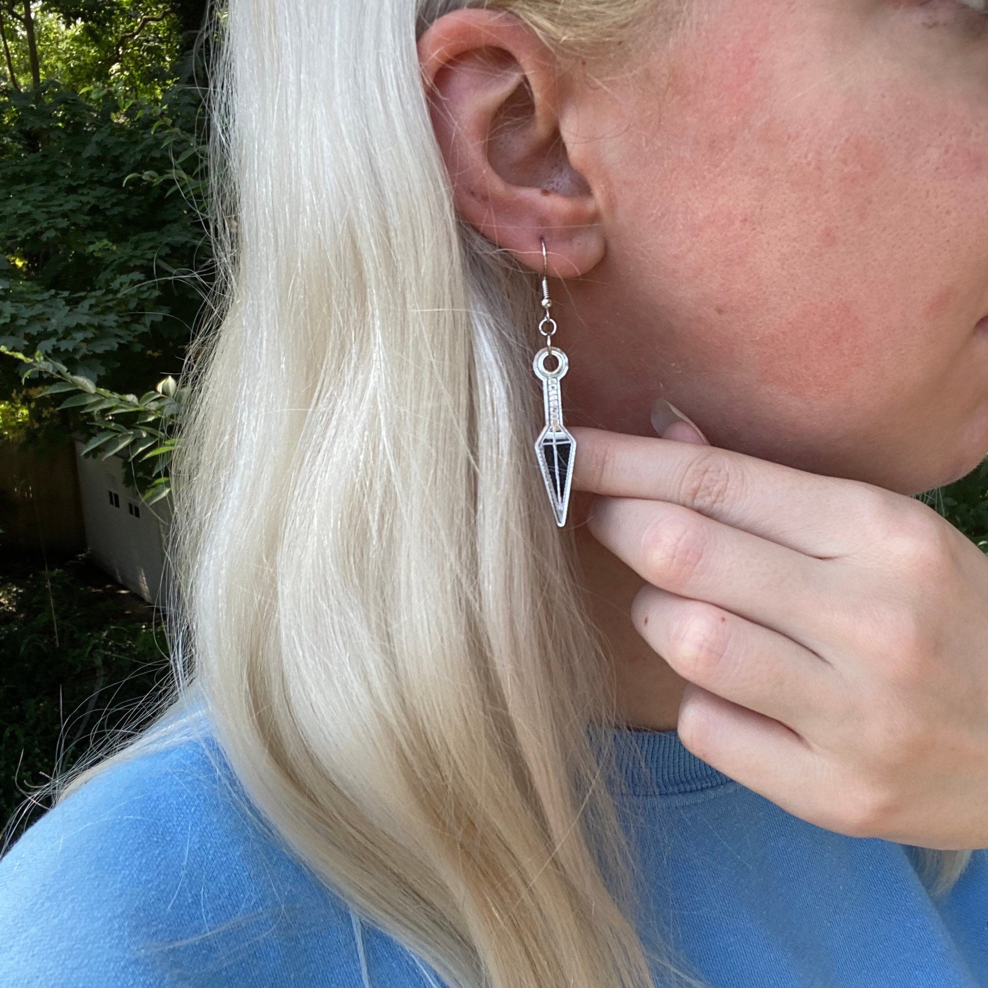 *These are ONE SIDED earrings!! The mirror is on one side of the kunai, while the back is a light grey