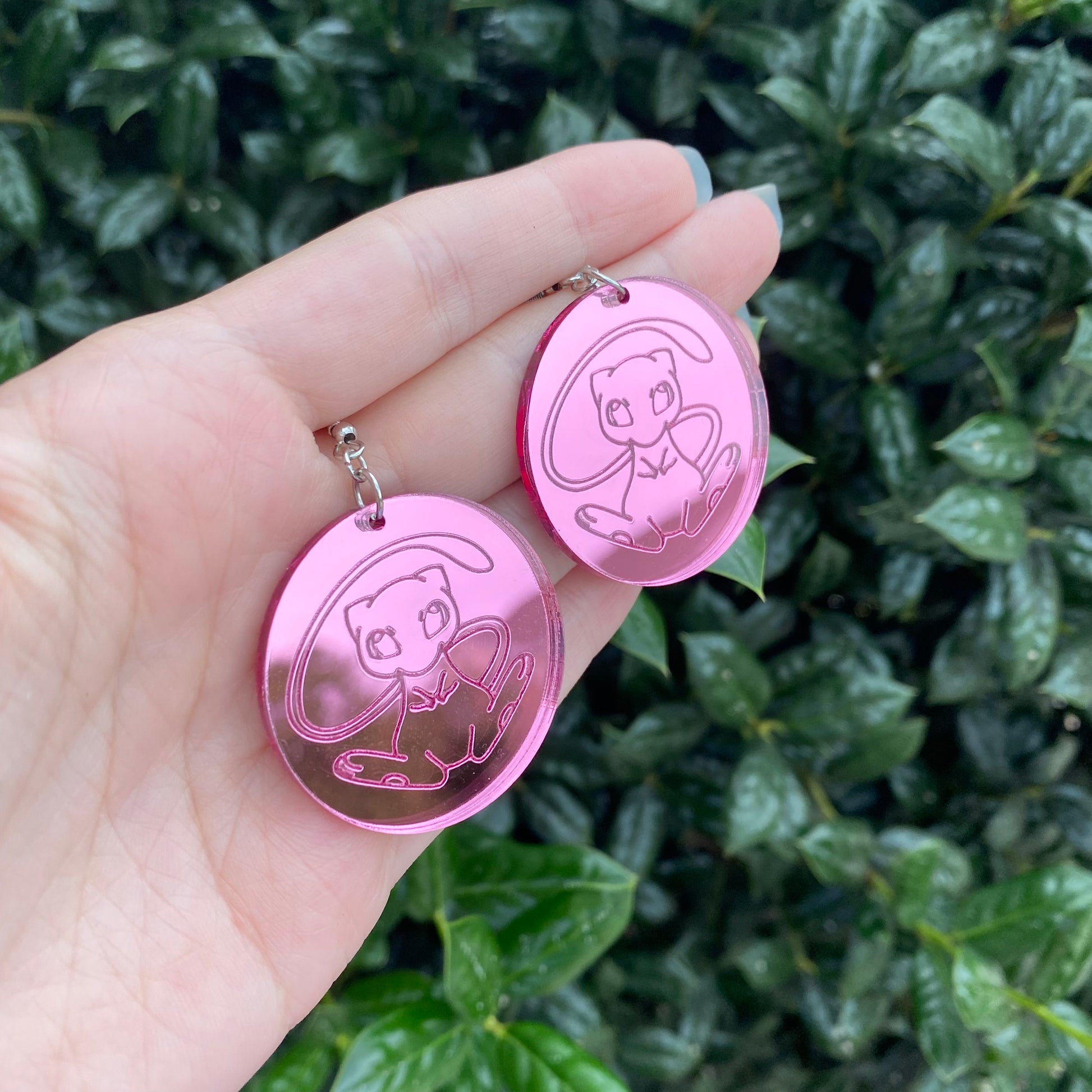 Mew in Pink Bubble Mirror Acrylic Earrings