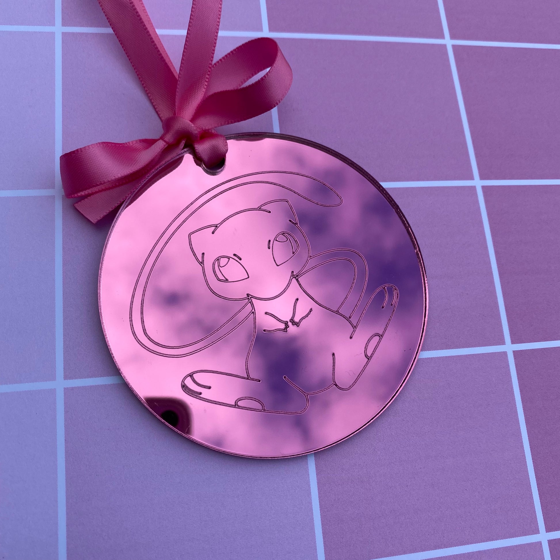 Mew in Pink Bubble Mirrored Acrylic Ornament