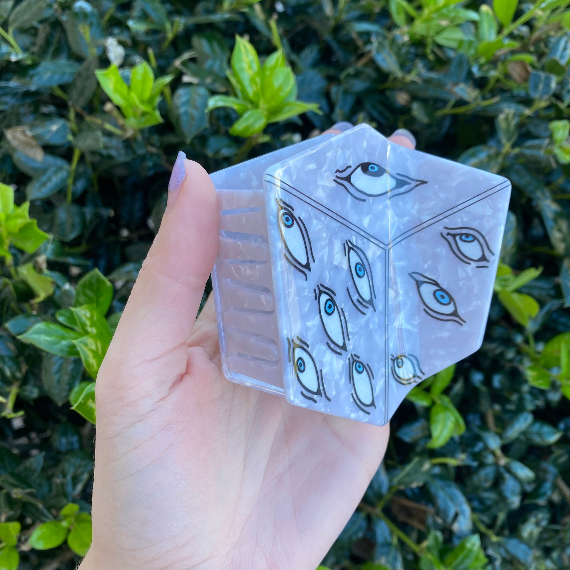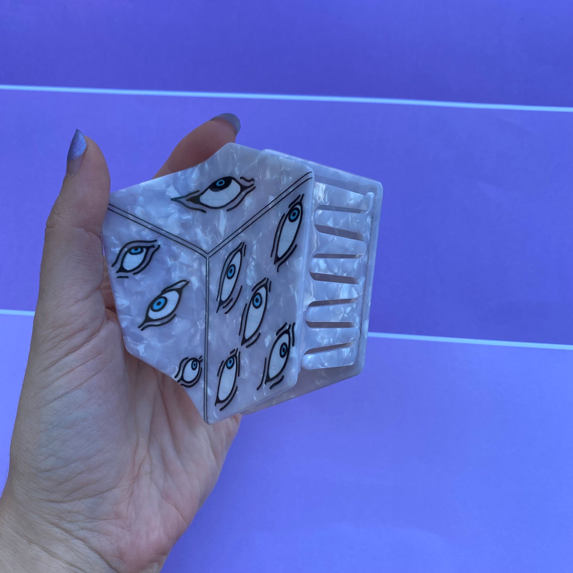 Made from durable acetate acrylic, UV Printed design, and large claw shape!