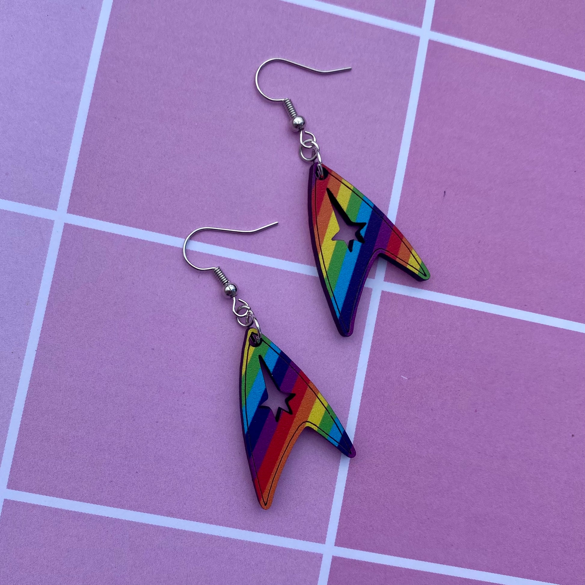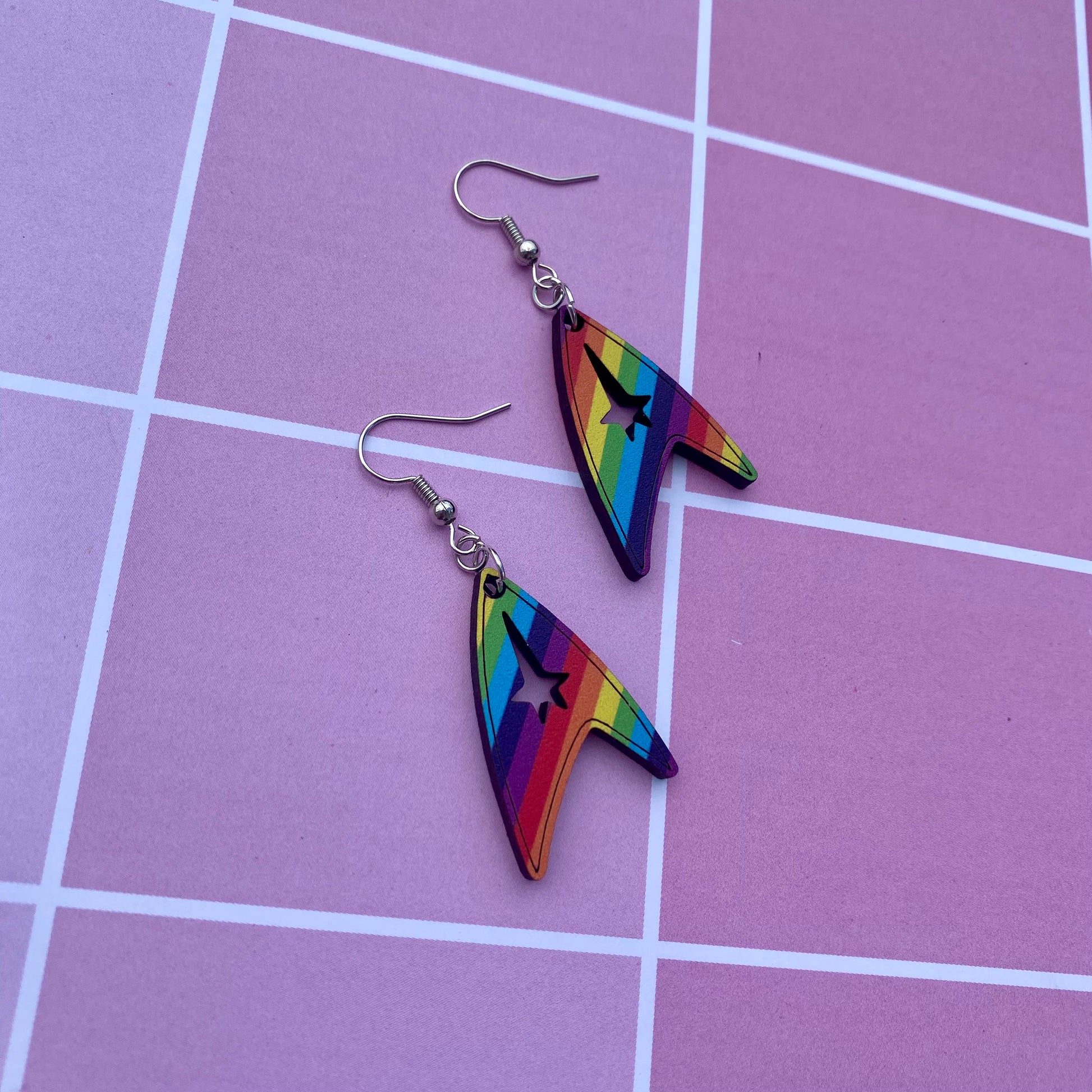 Each earring is unique, cut from different parts of rainbow printed wood- so no two earrings are the same!! You will likely receive two different printed rainbows!!