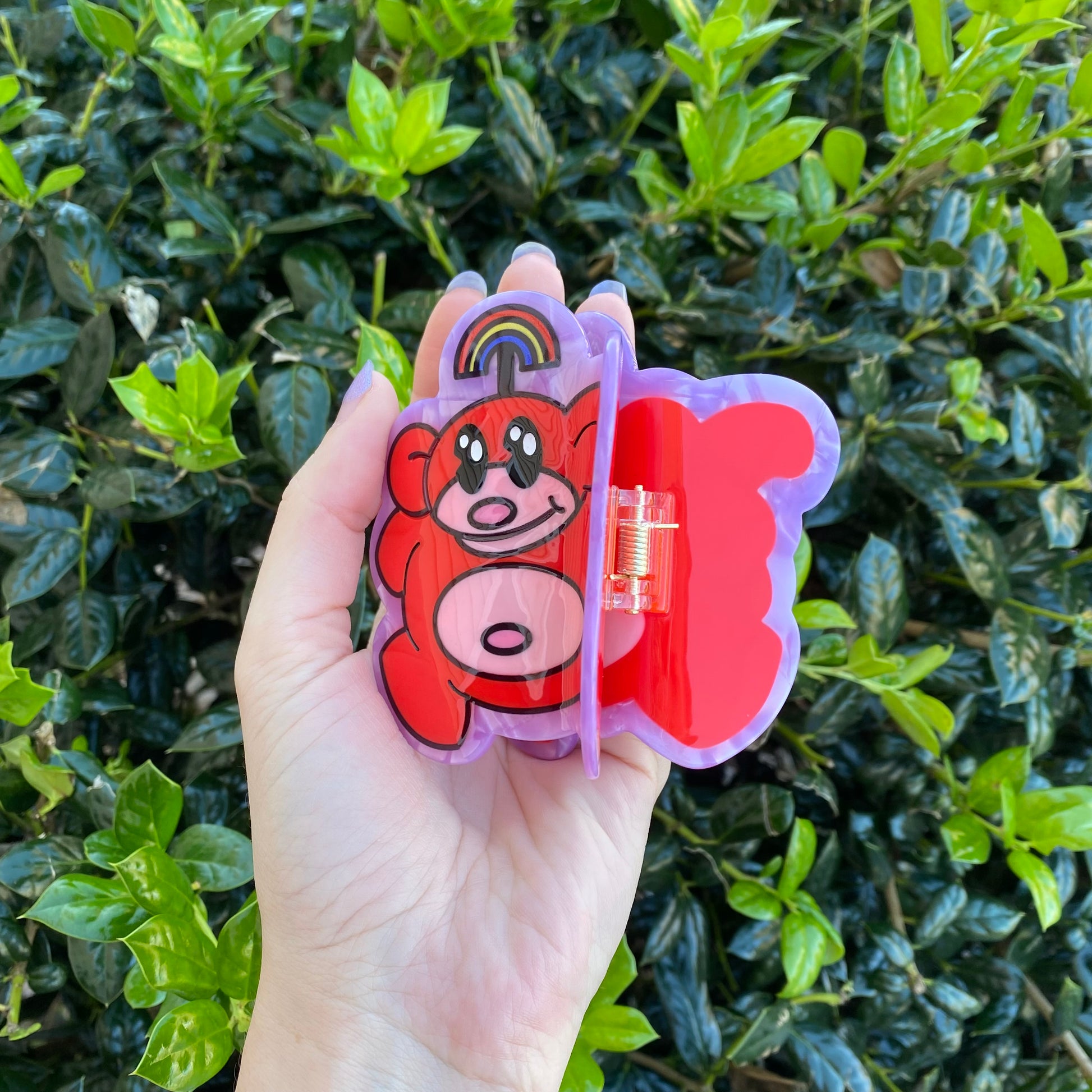 Made from durable acetate acrylic, UV Printed design, and large claw shape!