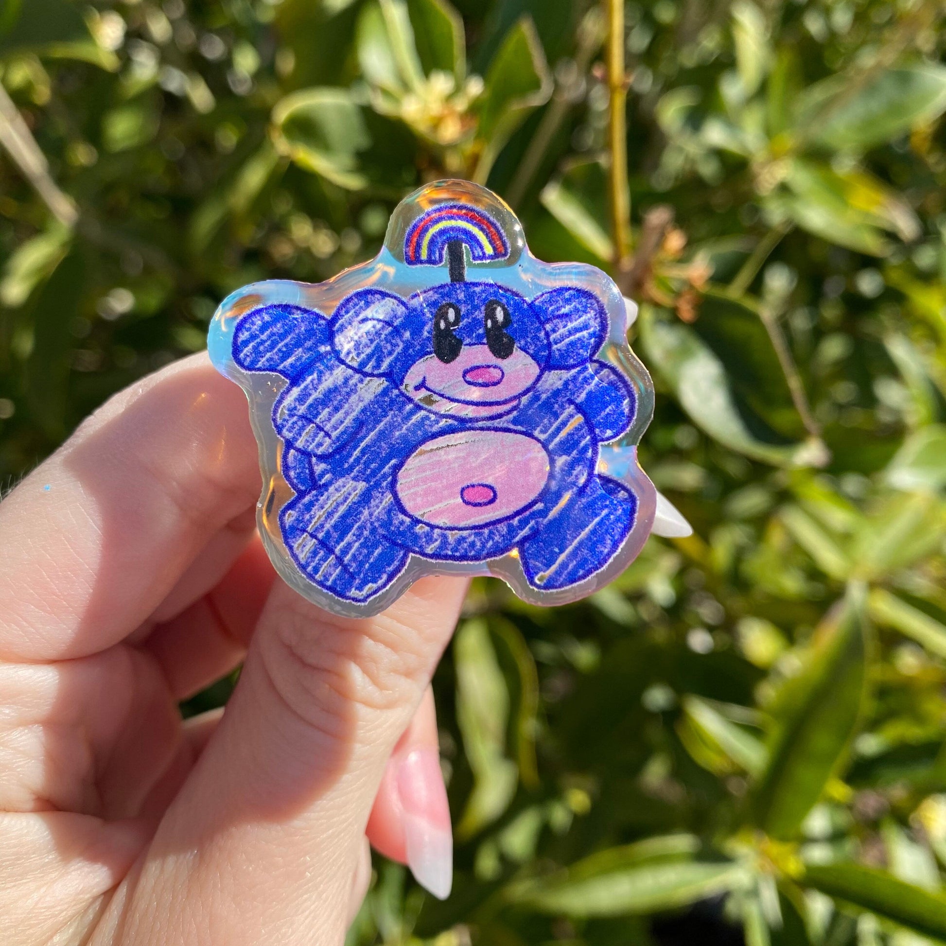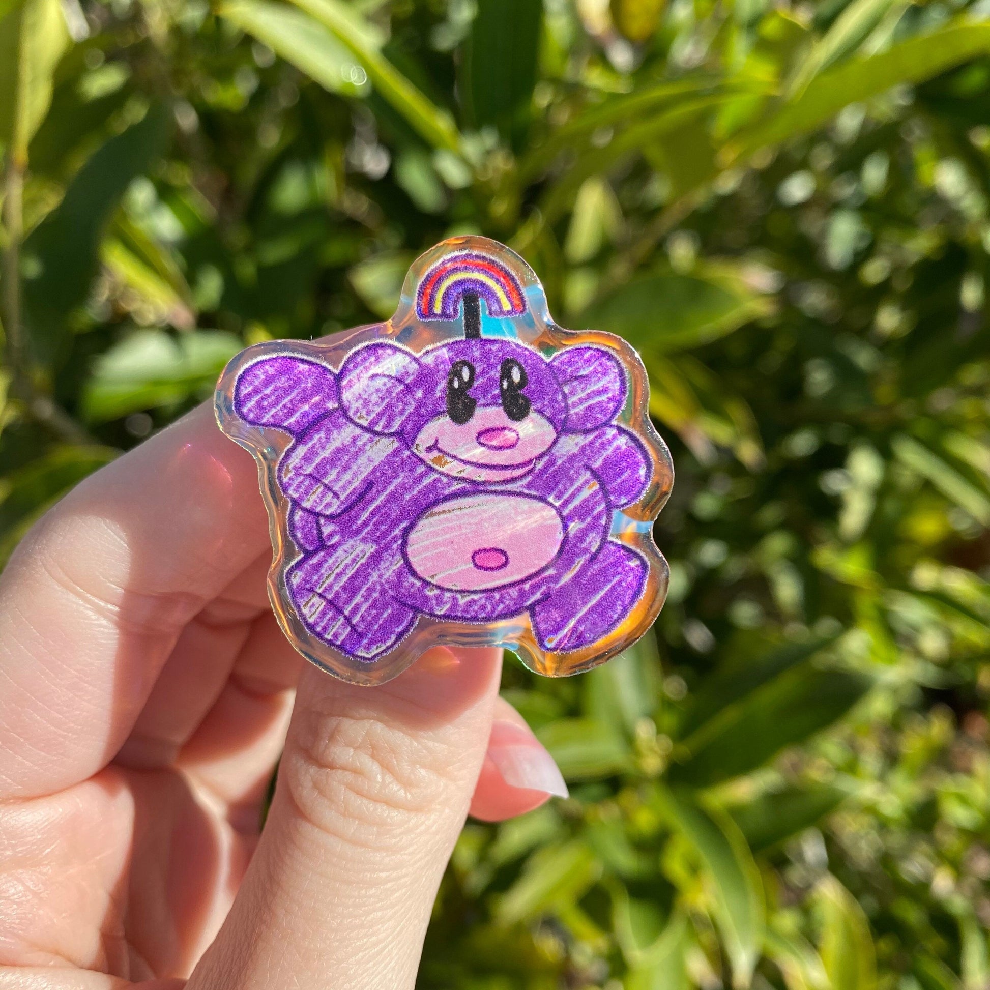 My first acrylic pin!! I’m so happy with the eyecatching iridescent rainbow and for even MORE Rainbow Monkeys!!