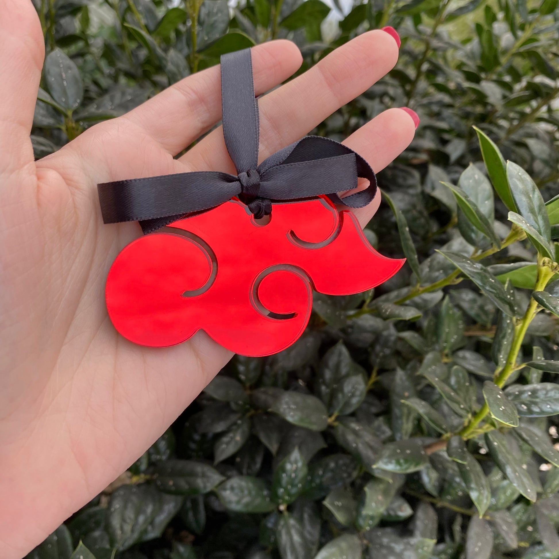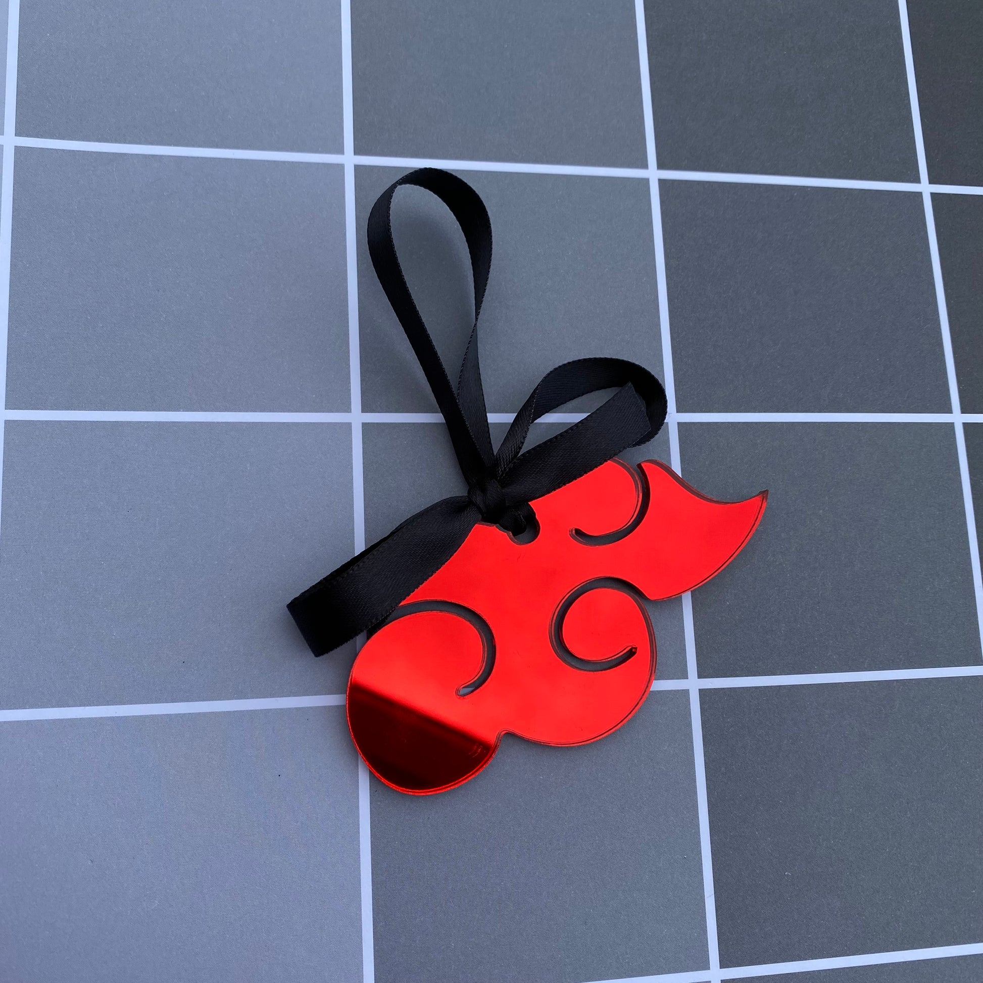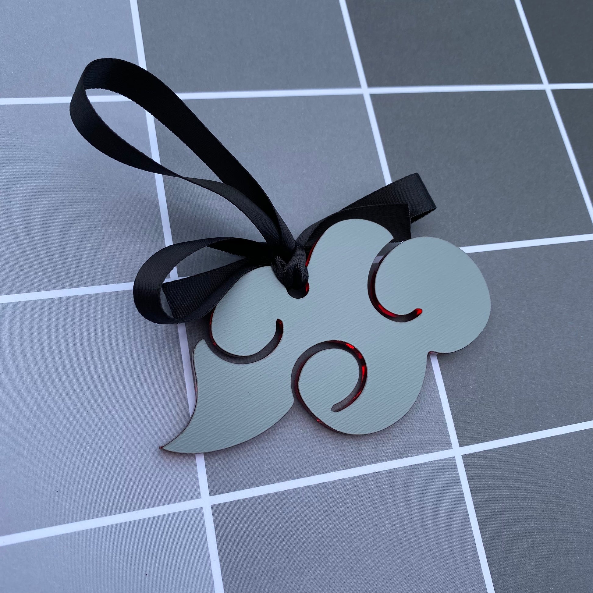 The ornament is cut from my own laser! The design is cut from a red mirrored acrylic- the from is red and reflective, and the back is a light grey color!