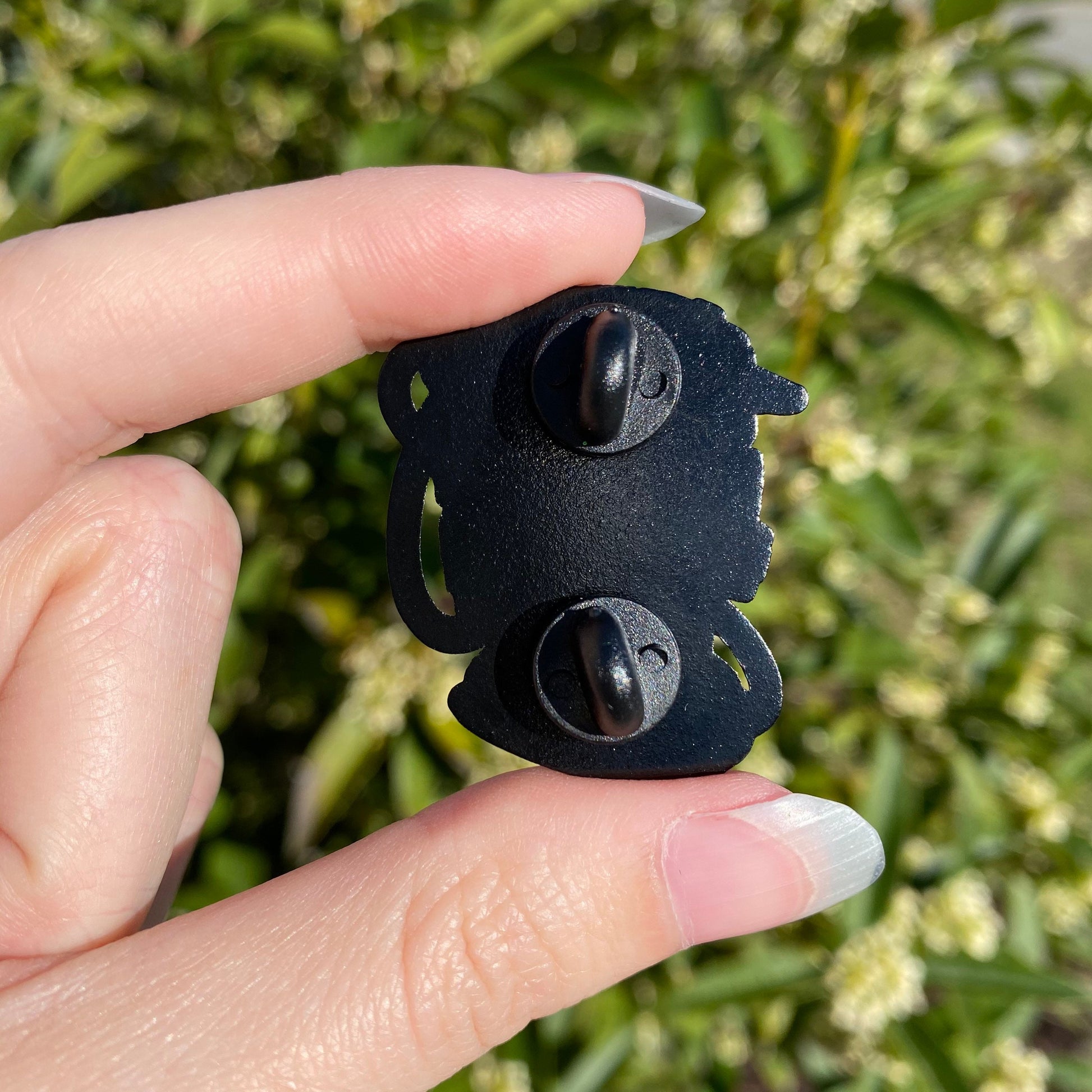 The pin is soft enamel with special glitter detailing for his prosthetic eye, and featured cutout shapes to emphasize his tubing!