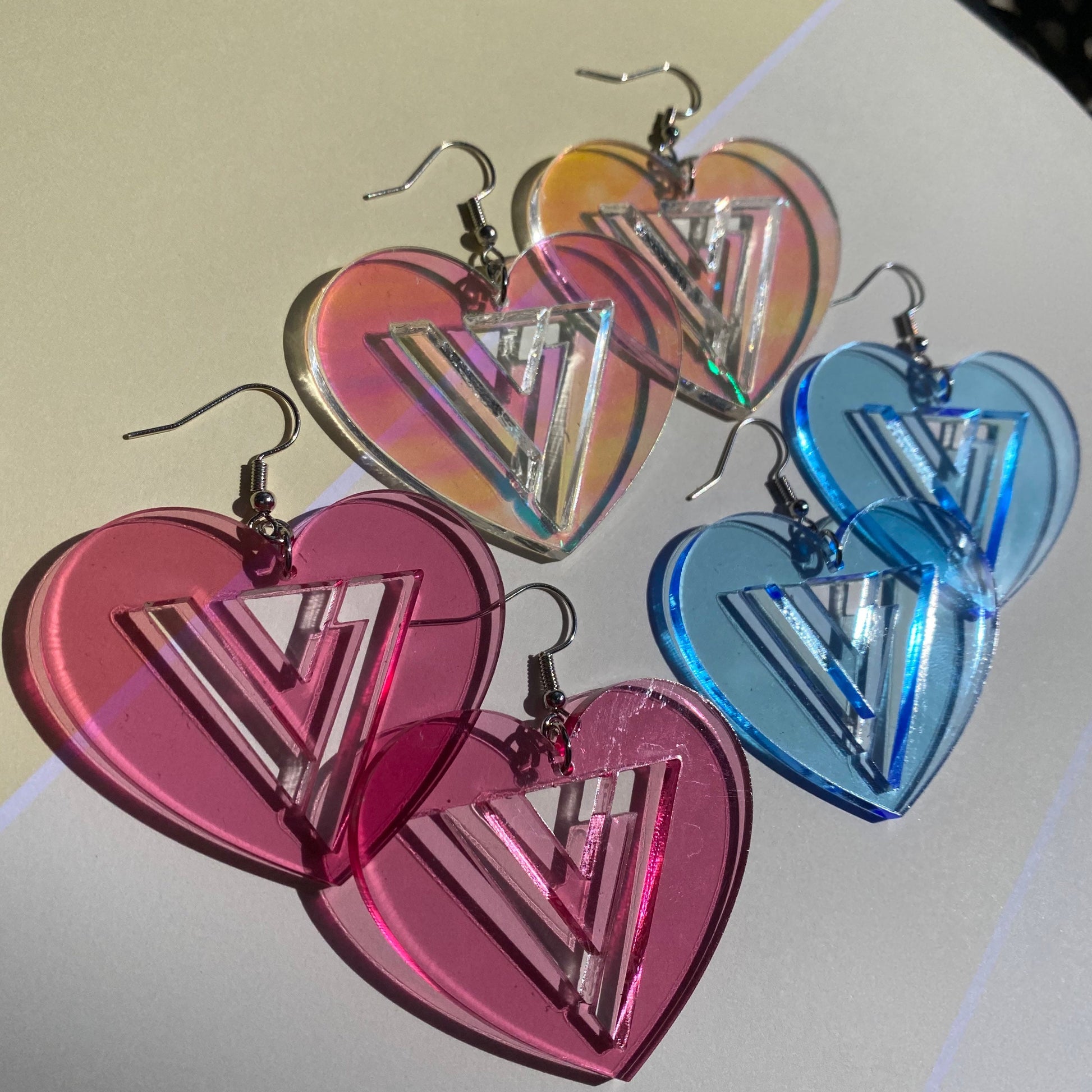 The earrings are laser cut from my own laser, in a negative space heart!
