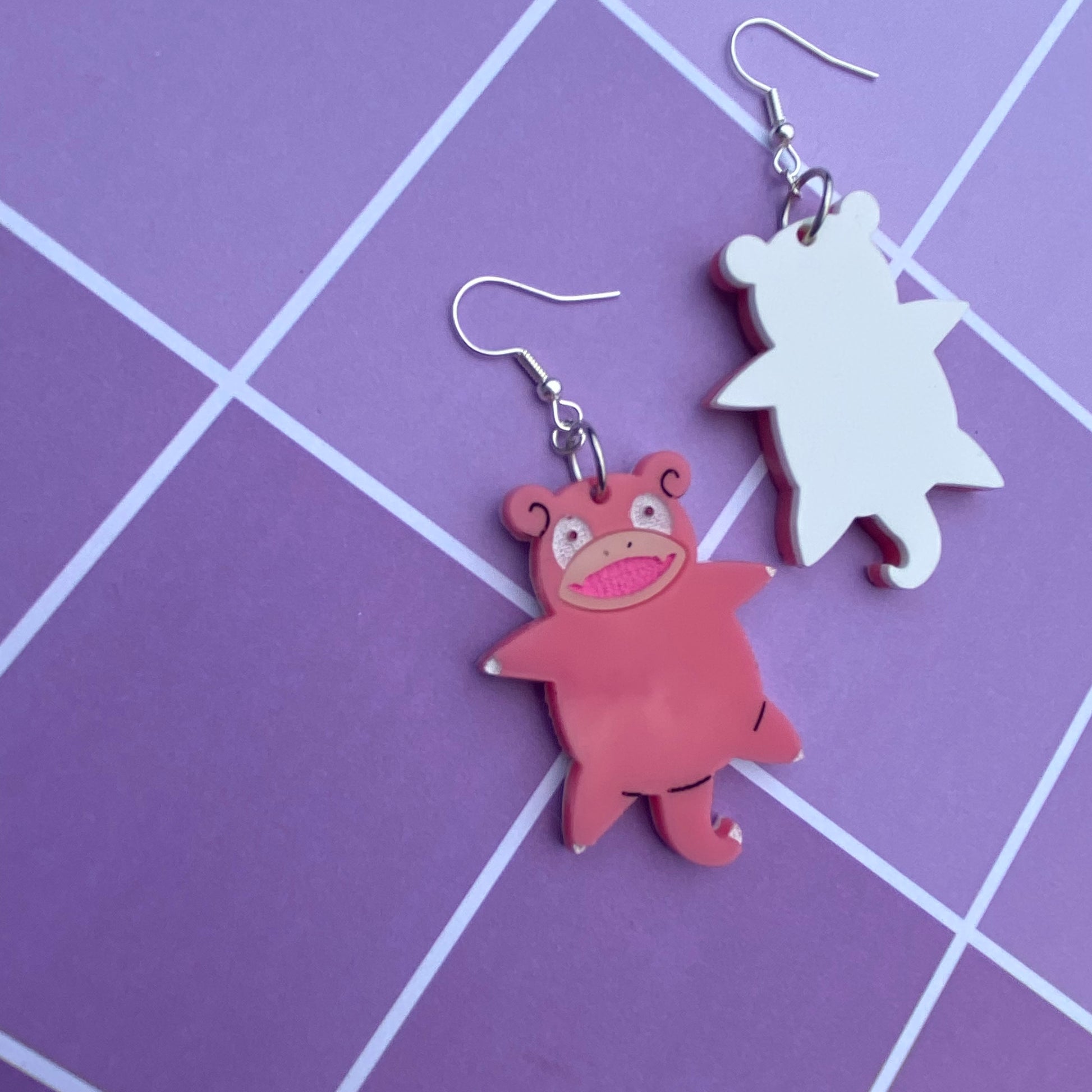 The earrings are 1.5” long and cut from my own laser! The earrings are cut and etched from mirror backed acrylic, and attached to an acrylic base. The back will be a plain acrylic color!