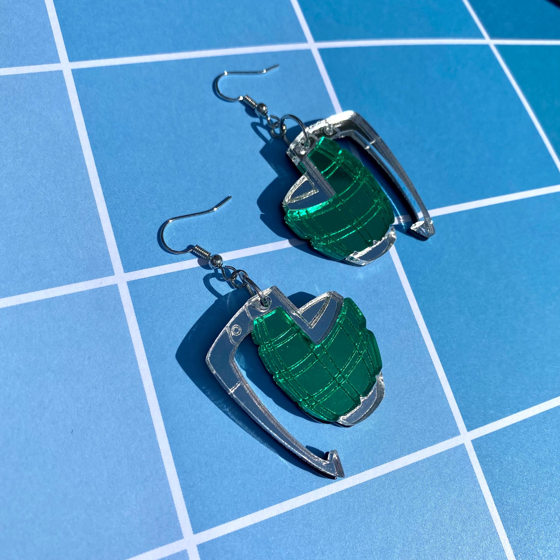 The earrings are 1.5” long and cut from my own laser! The earrings are cut and etched from mirror backed acrylic, and attached to an acrylic base. The back will be a plain acrylic color!