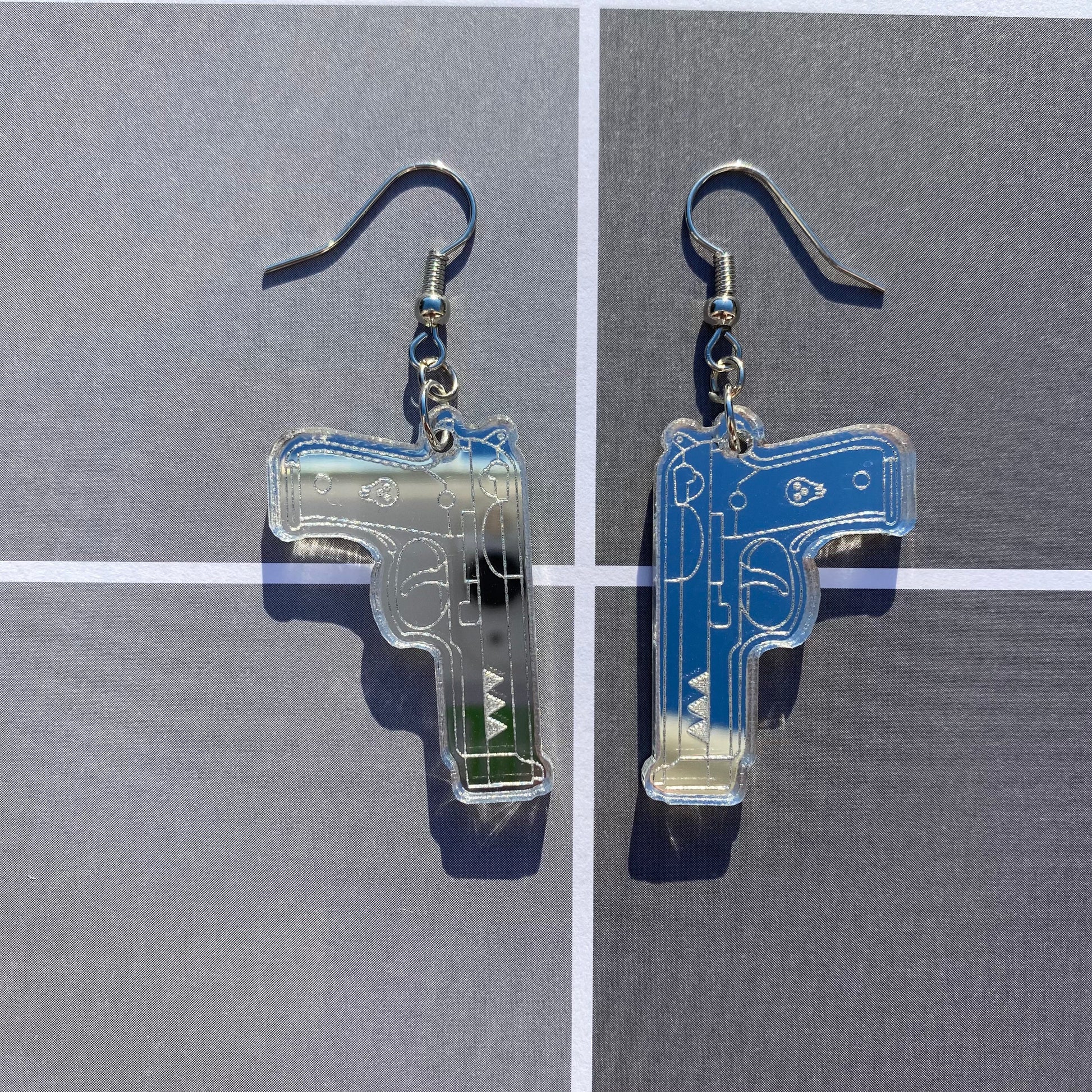 Symmetrical Twin Pistol Mirror Acrylic Earrings