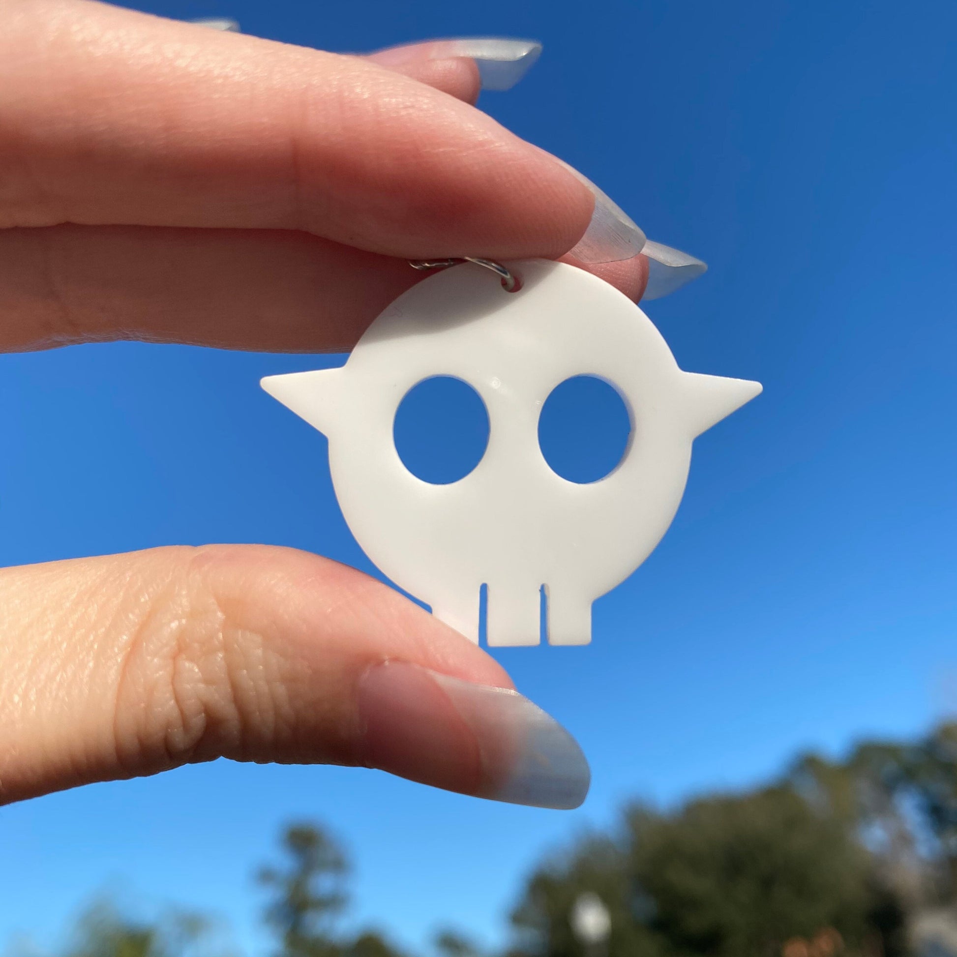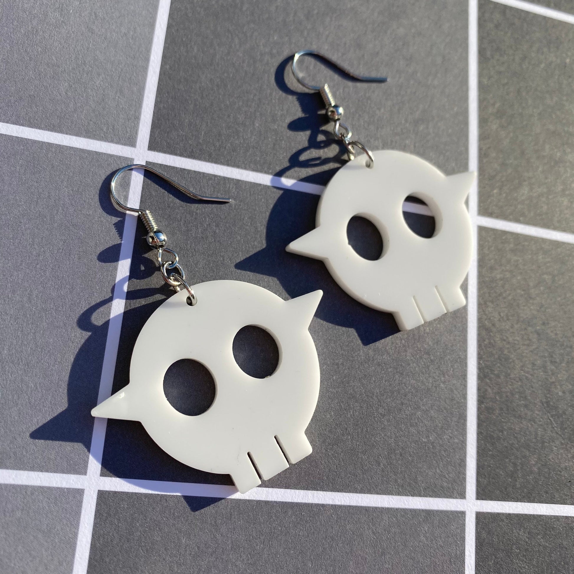 These little skull brooch earrings are 1.5” on its longest side and cut from white acrylic!