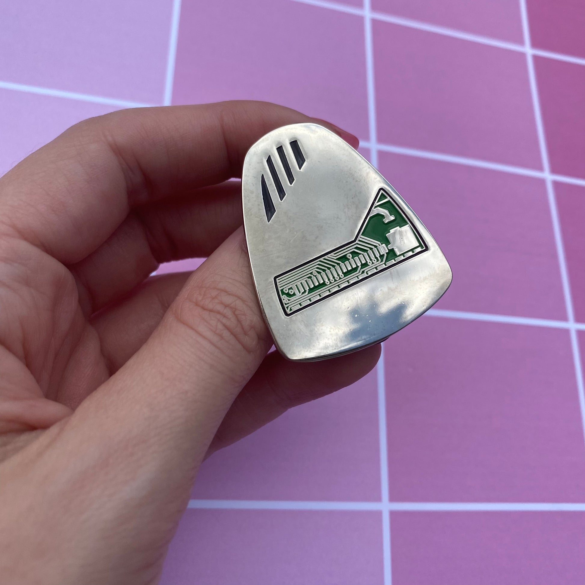 The pin is 1.7” long, soft enamel, with silver plating! With the small details in the design, and the silver plating making up most of the pin- it’s super shiny and reflective!!