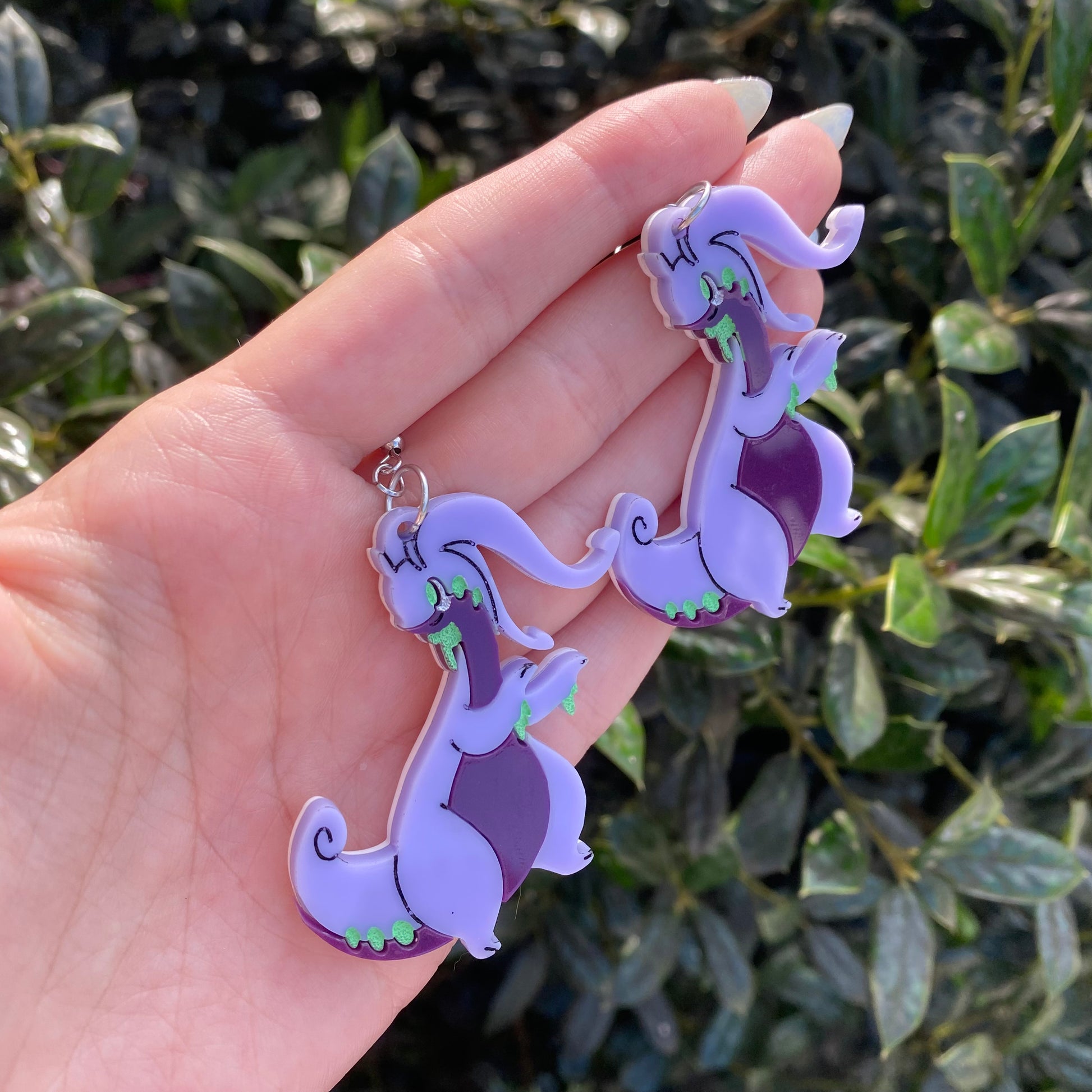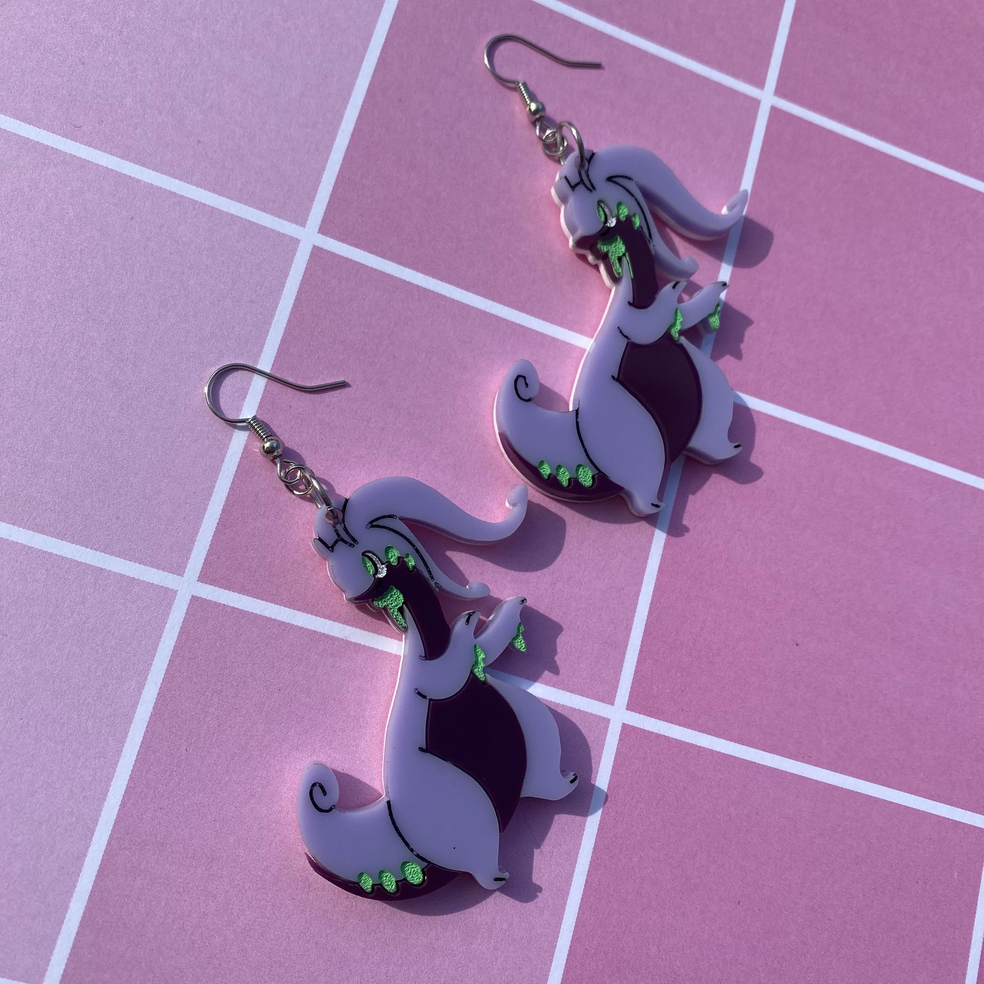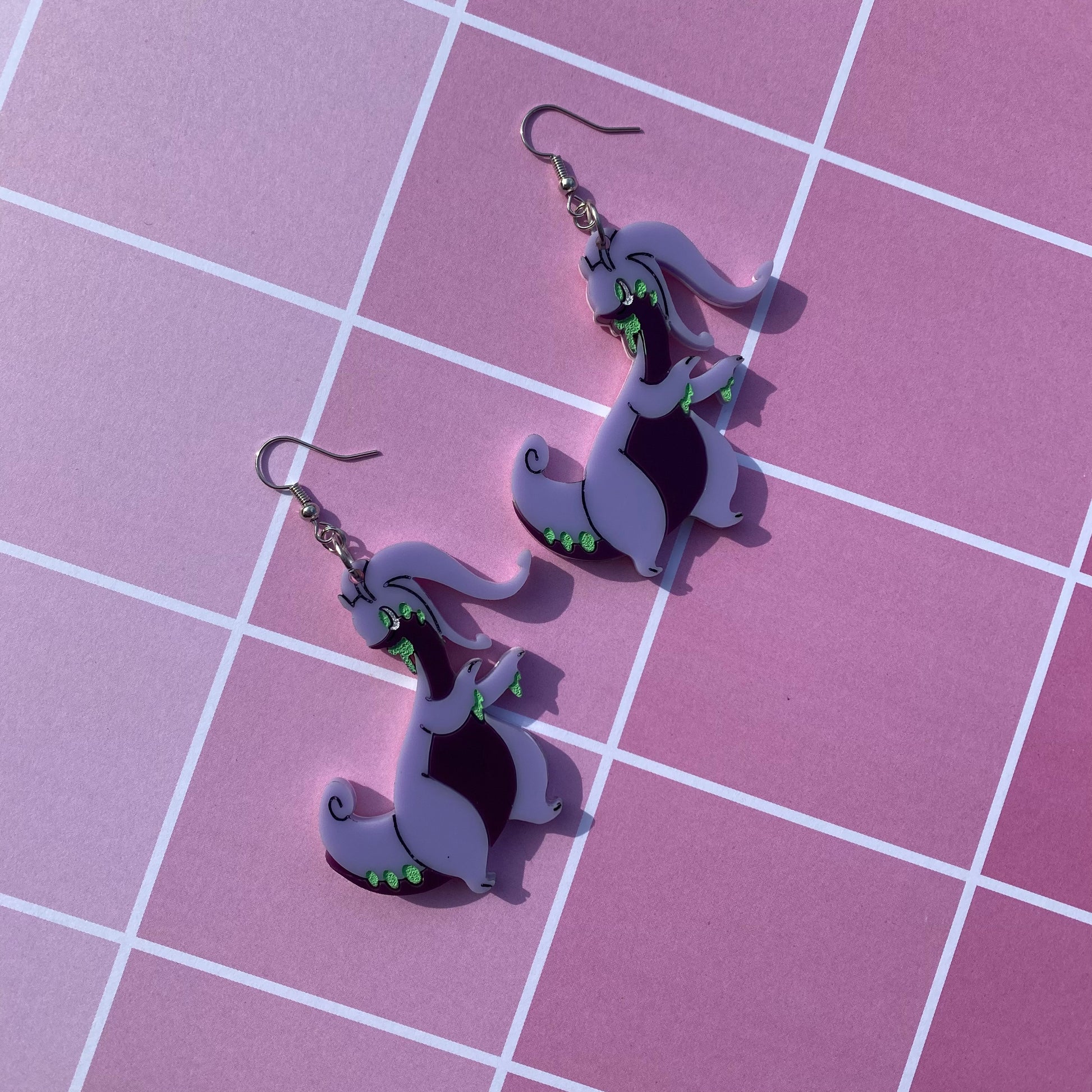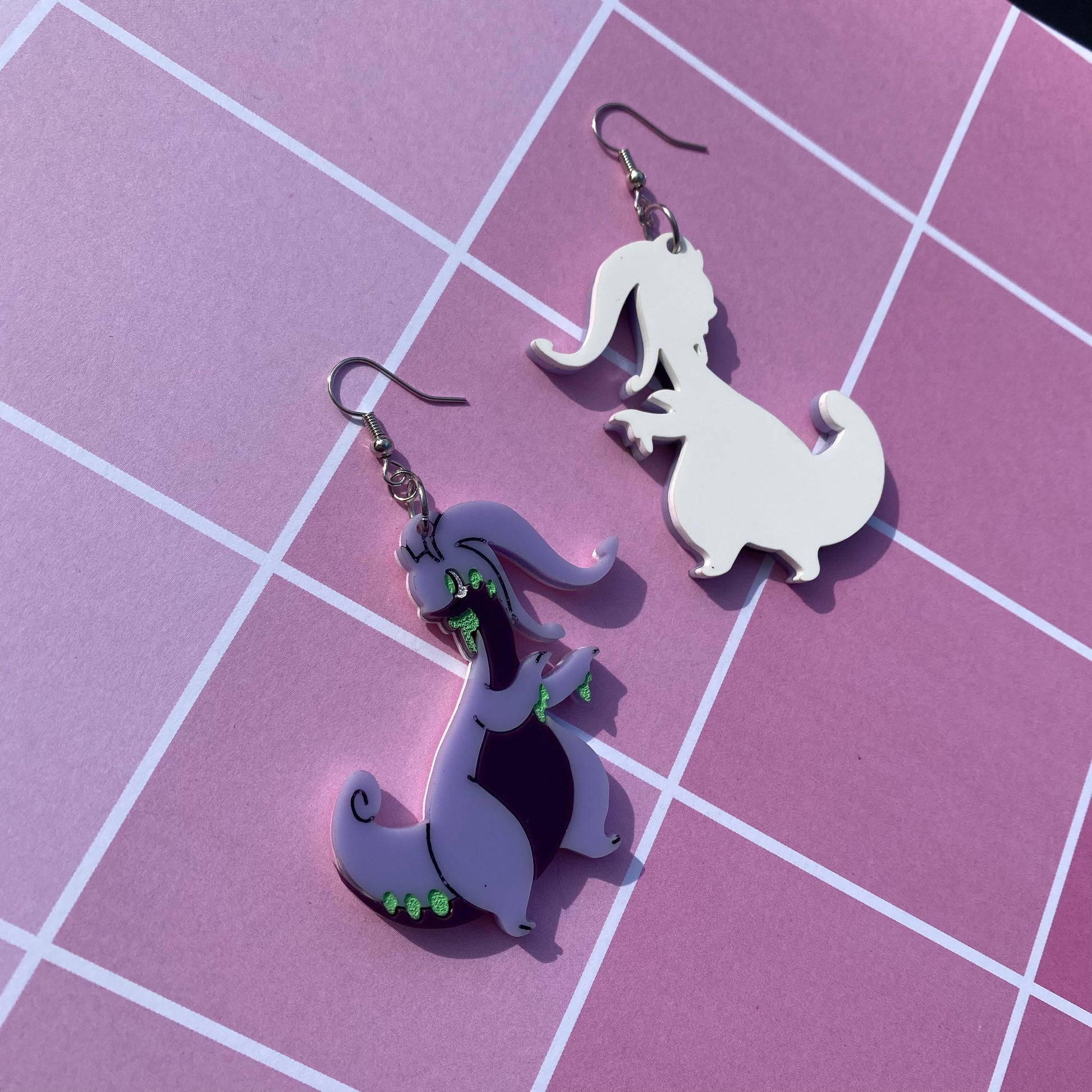 The earrings are 2” long and cut from my own laser! The earrings are etched and hand painted on the front, and the back is a plain acrylic!