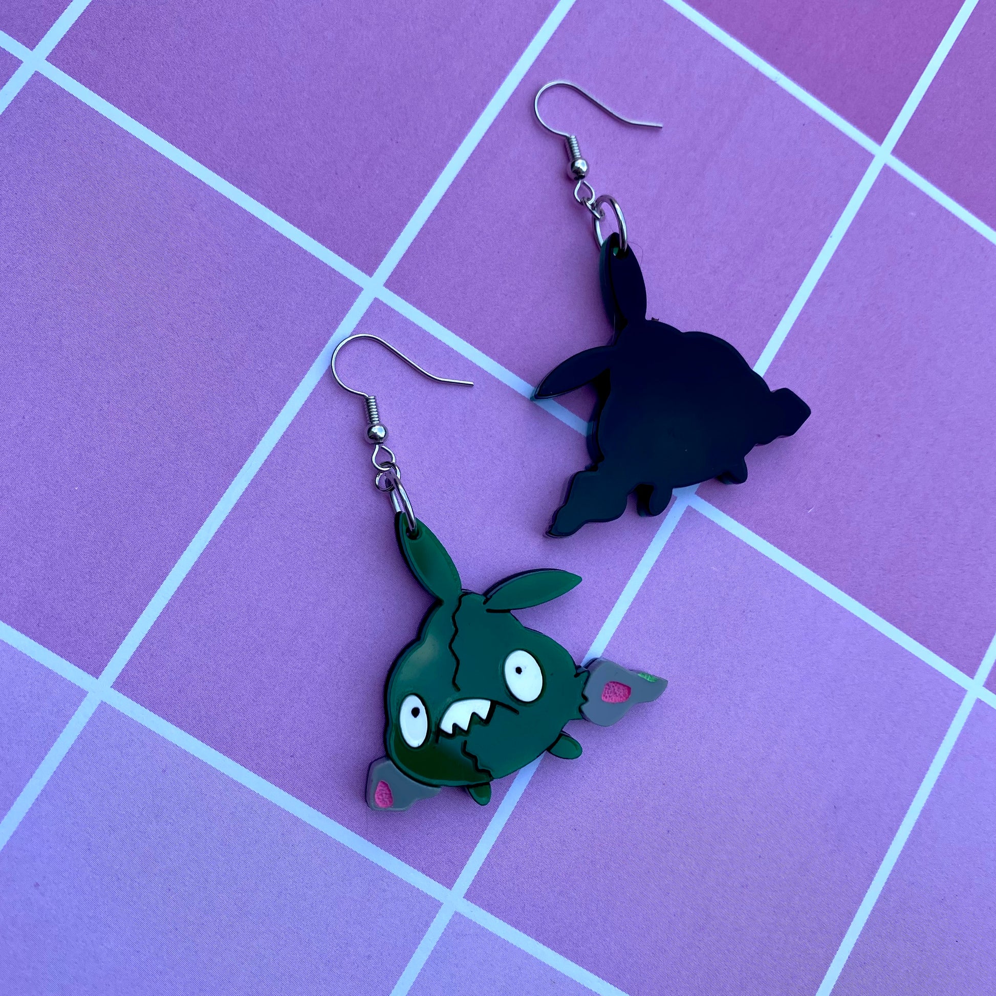 The earrings are 1.2” long and cut from my own laser! The earrings are cut and etched, and attached to an acrylic base. The back will be a plain acrylic color!