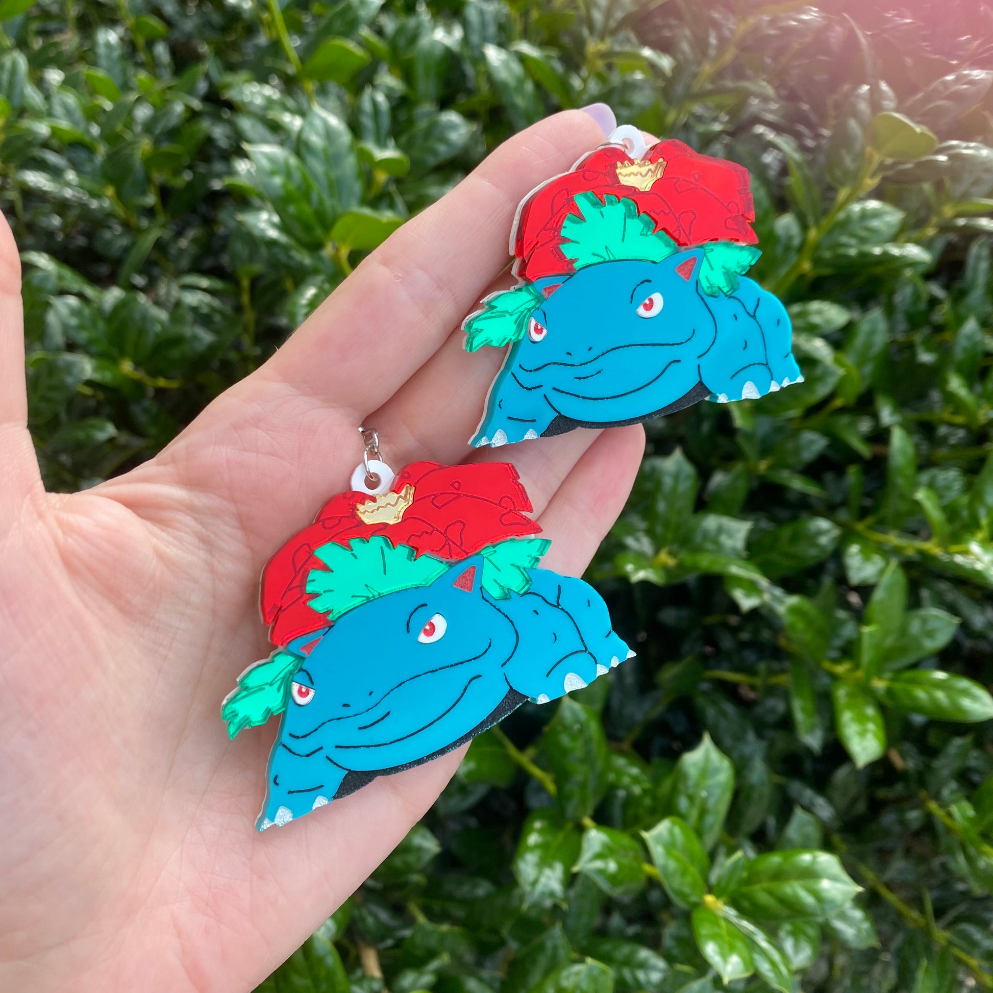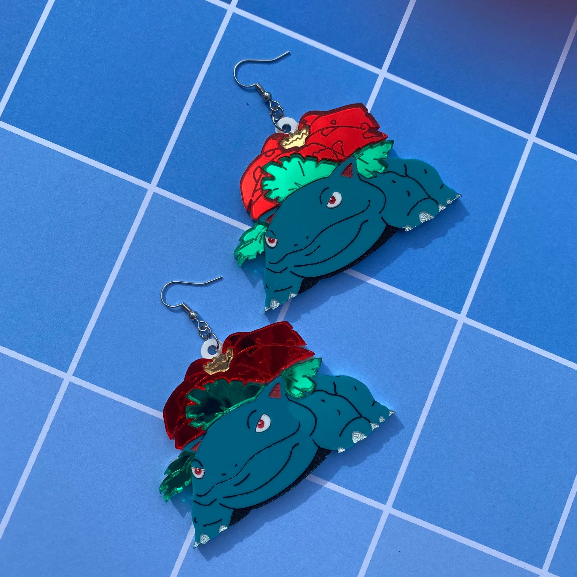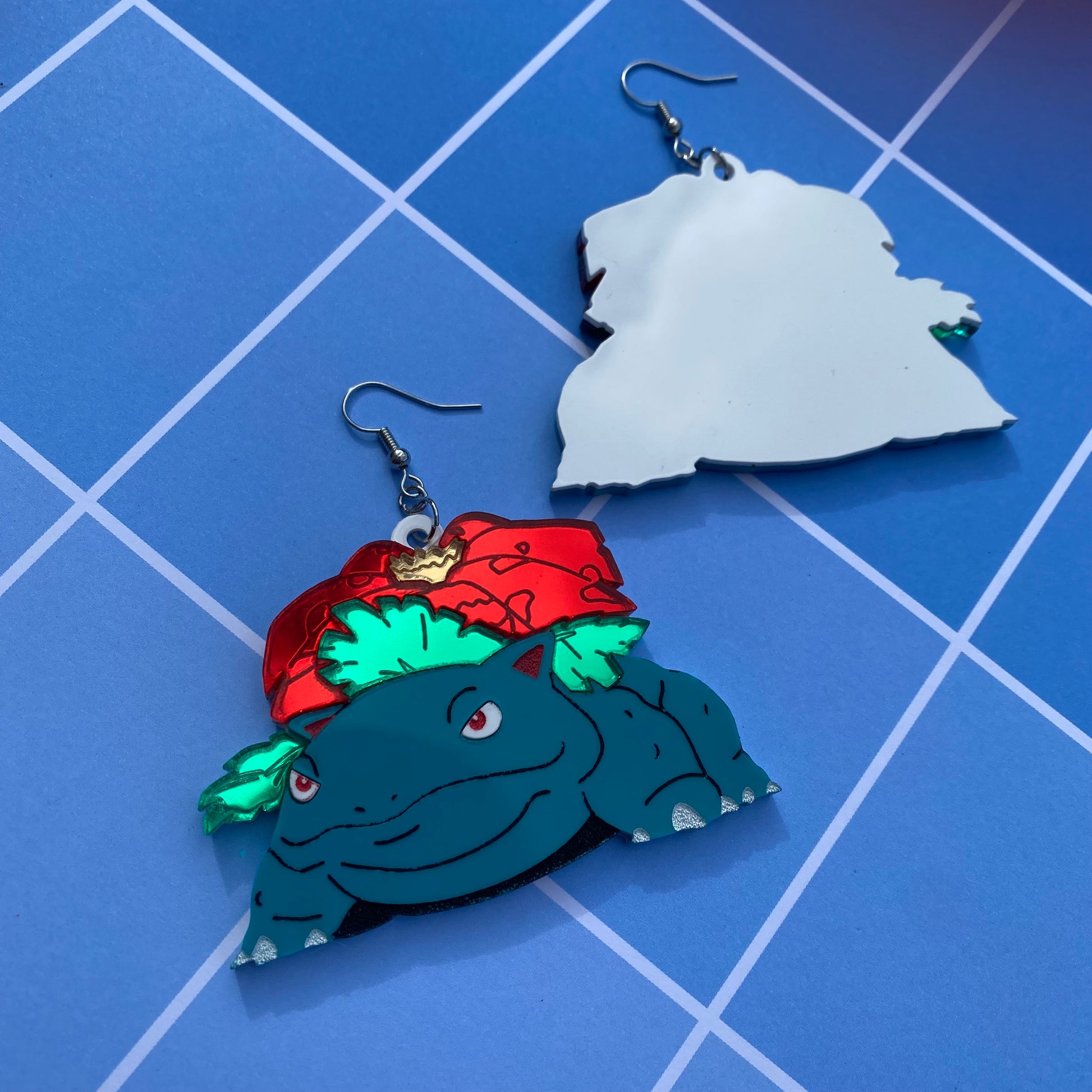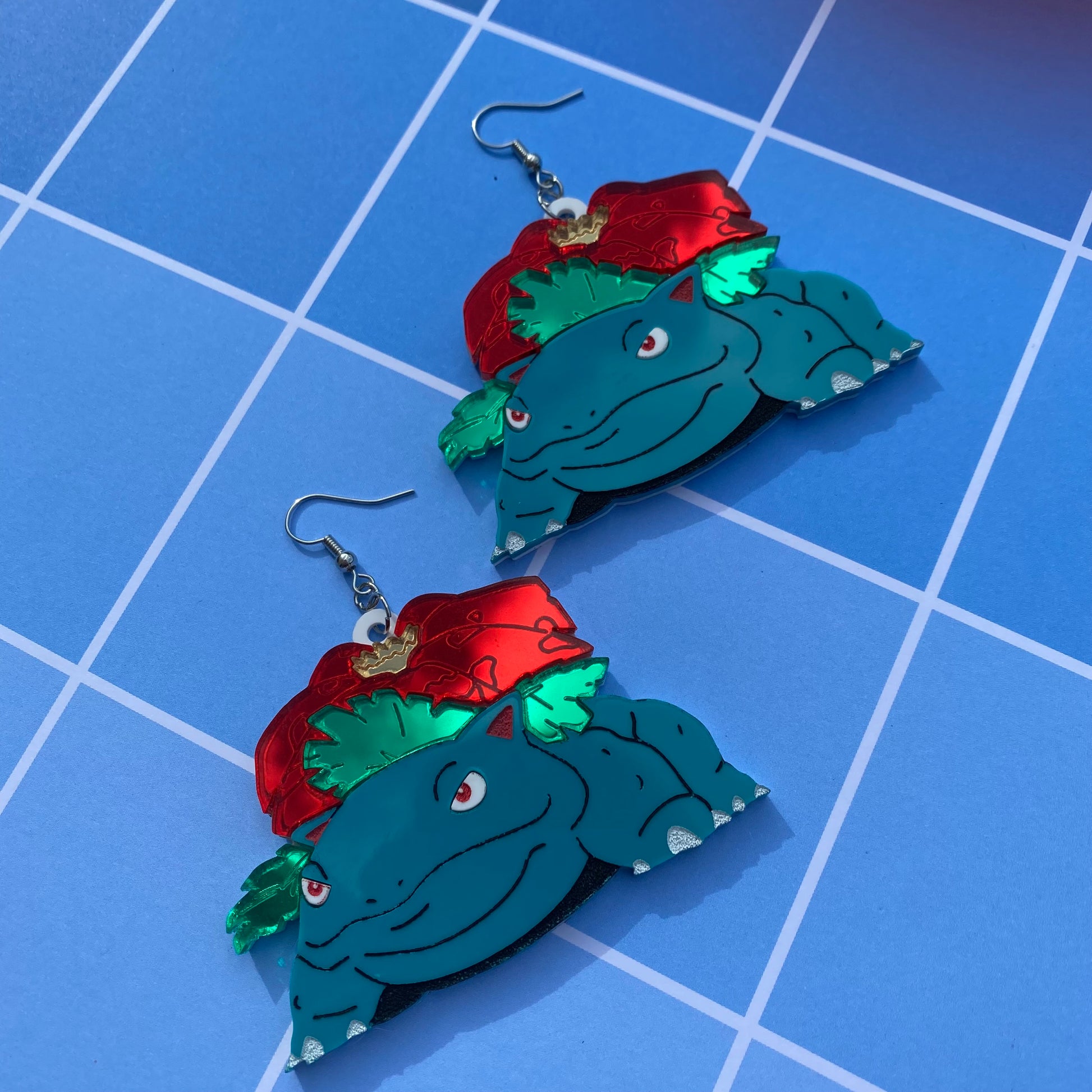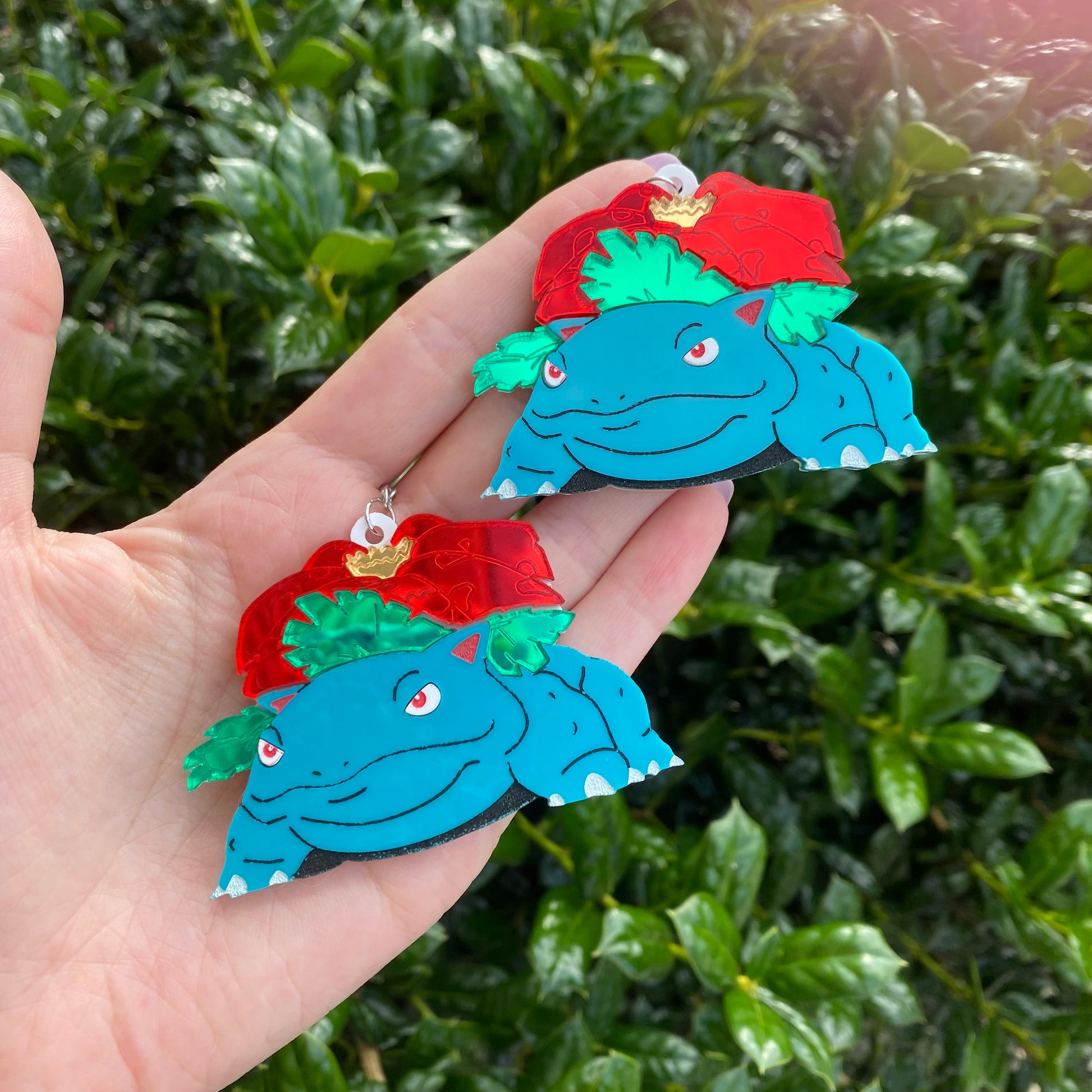 Venusaur Huge Mirror Flower Acrylic Earrings