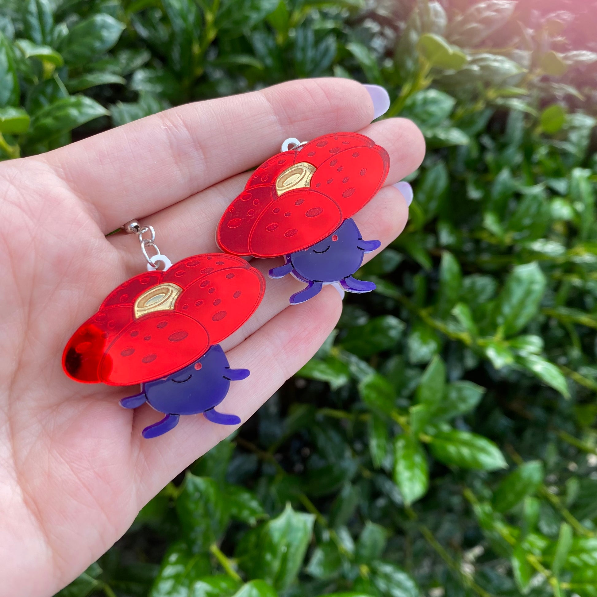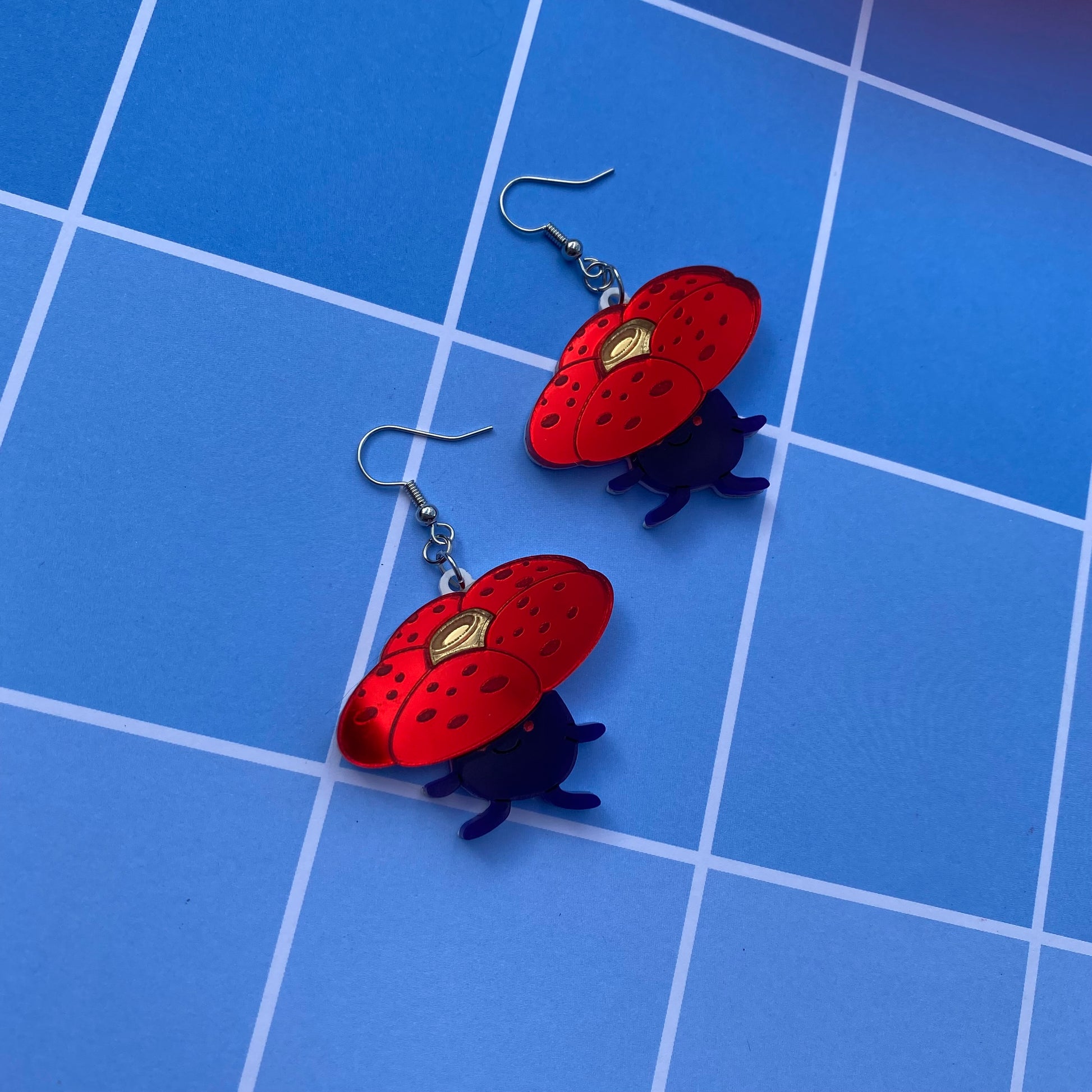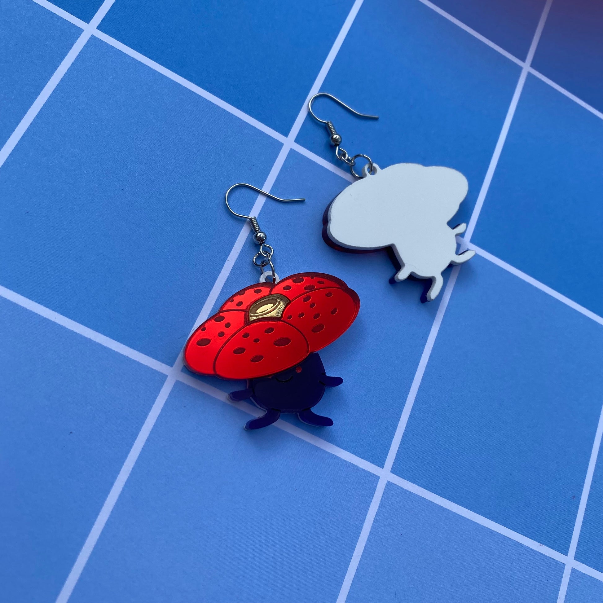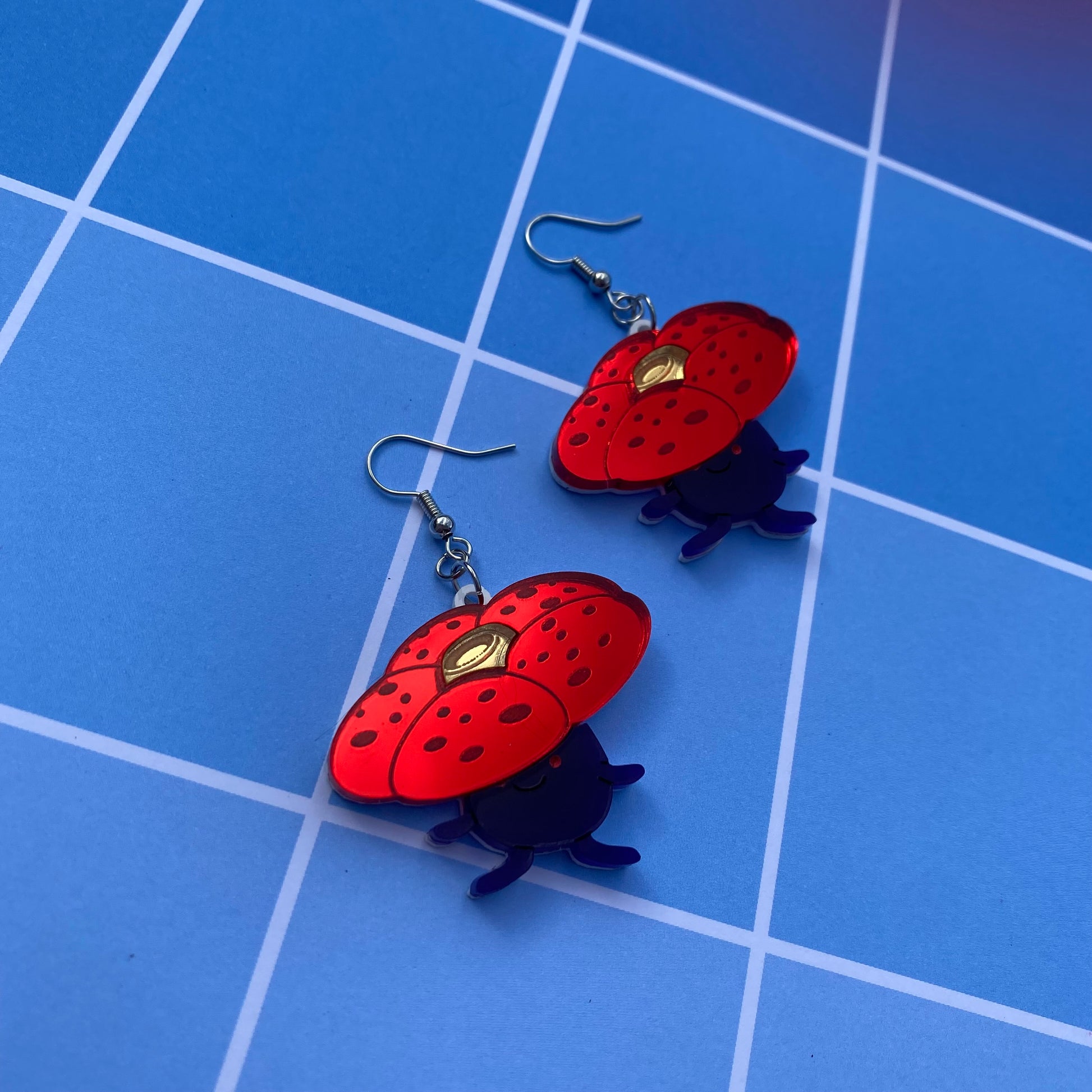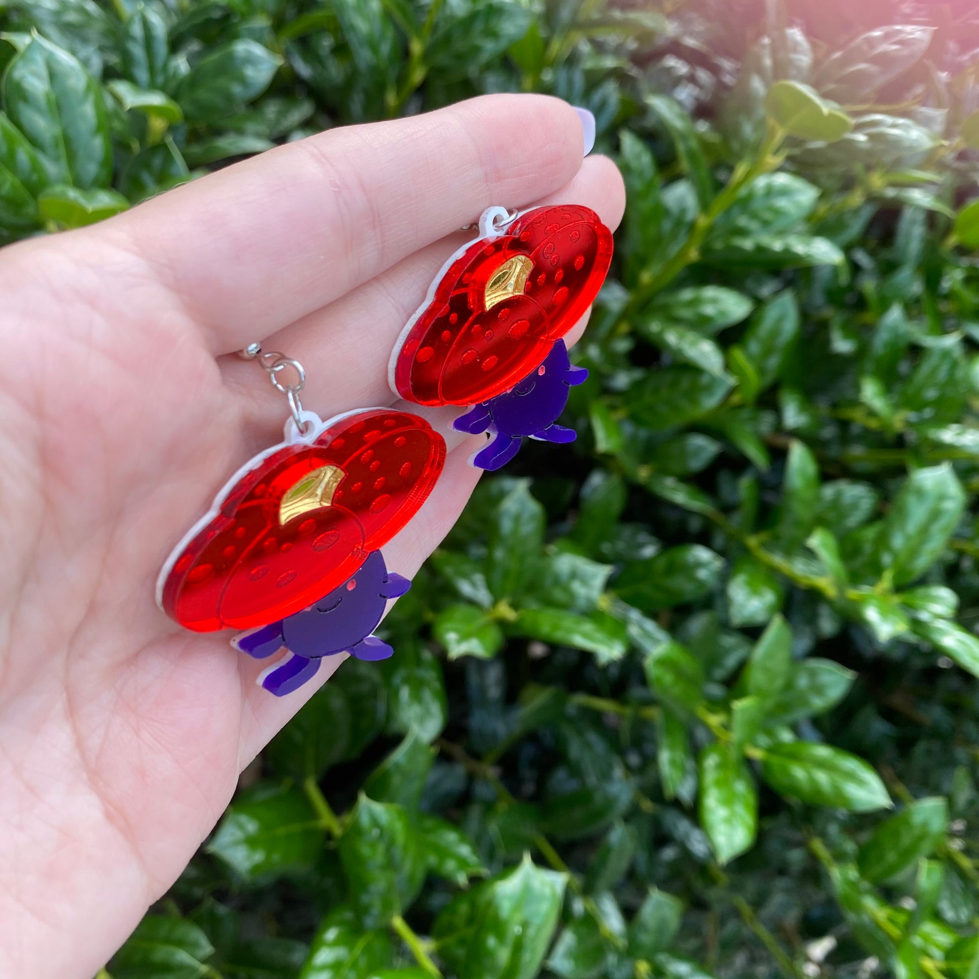 The earrings are 2” long and cut from my own laser! The earrings are cut and etched, and attached to an acrylic base. The back will be a plain acrylic color!