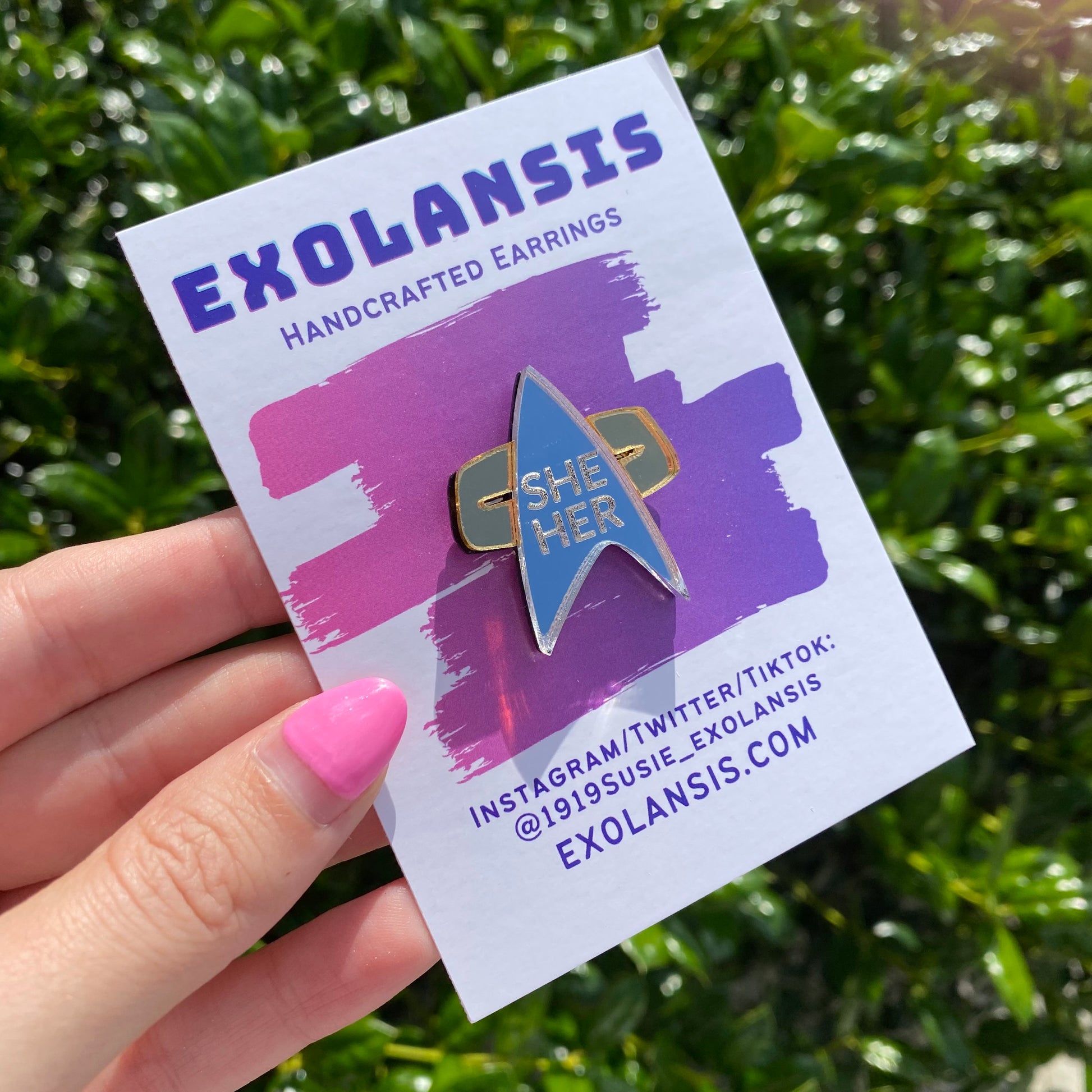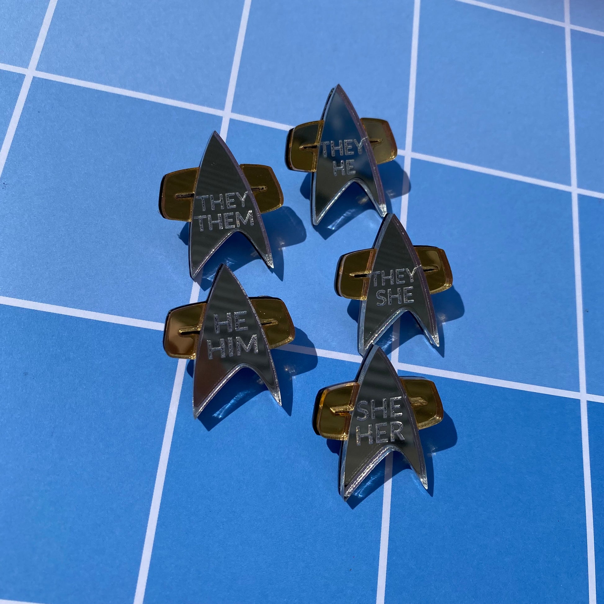 An easy and nerdy way to show your pronouns! Perfect for any cosplay or daily wear~