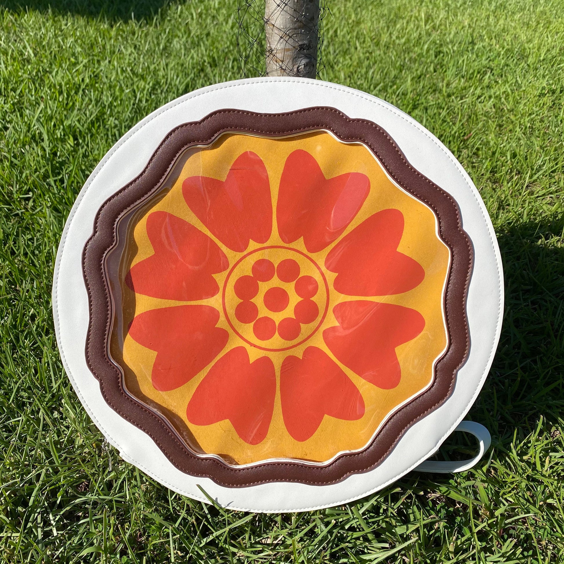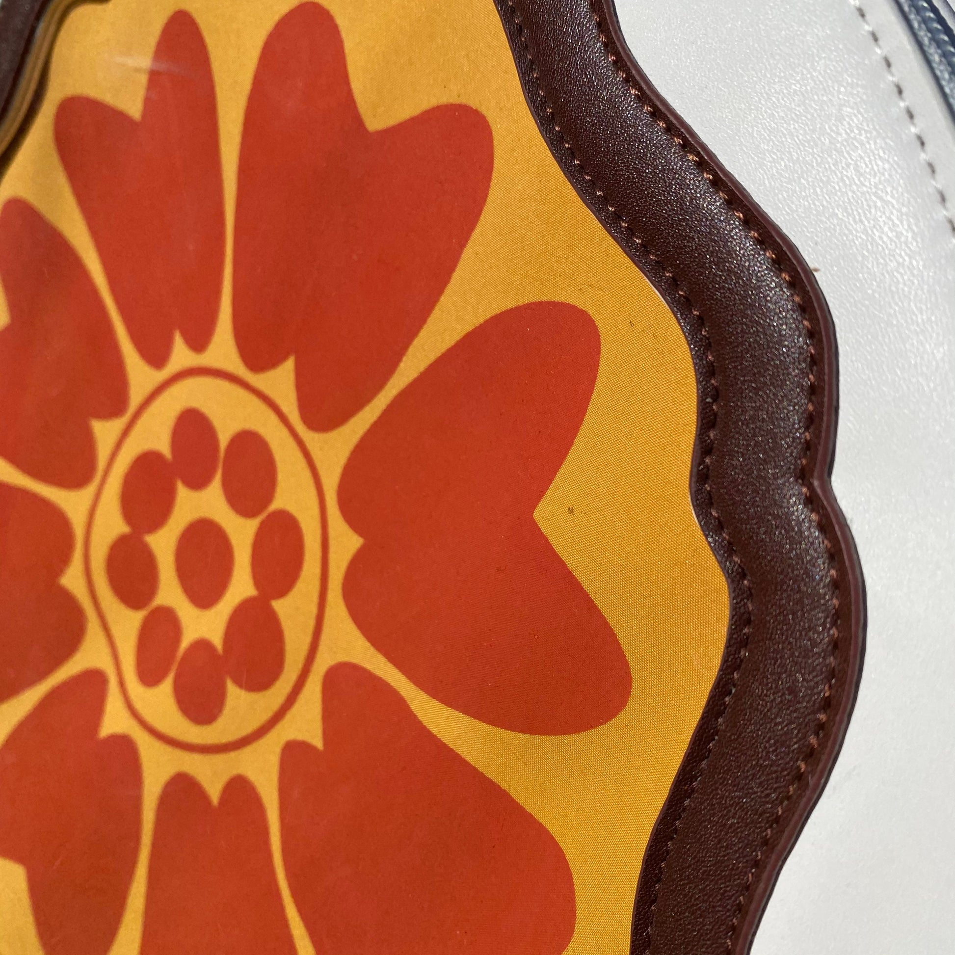 The combination of applique border and screen printed insert makes up the iconic design in a warm toned, eye catching bag!