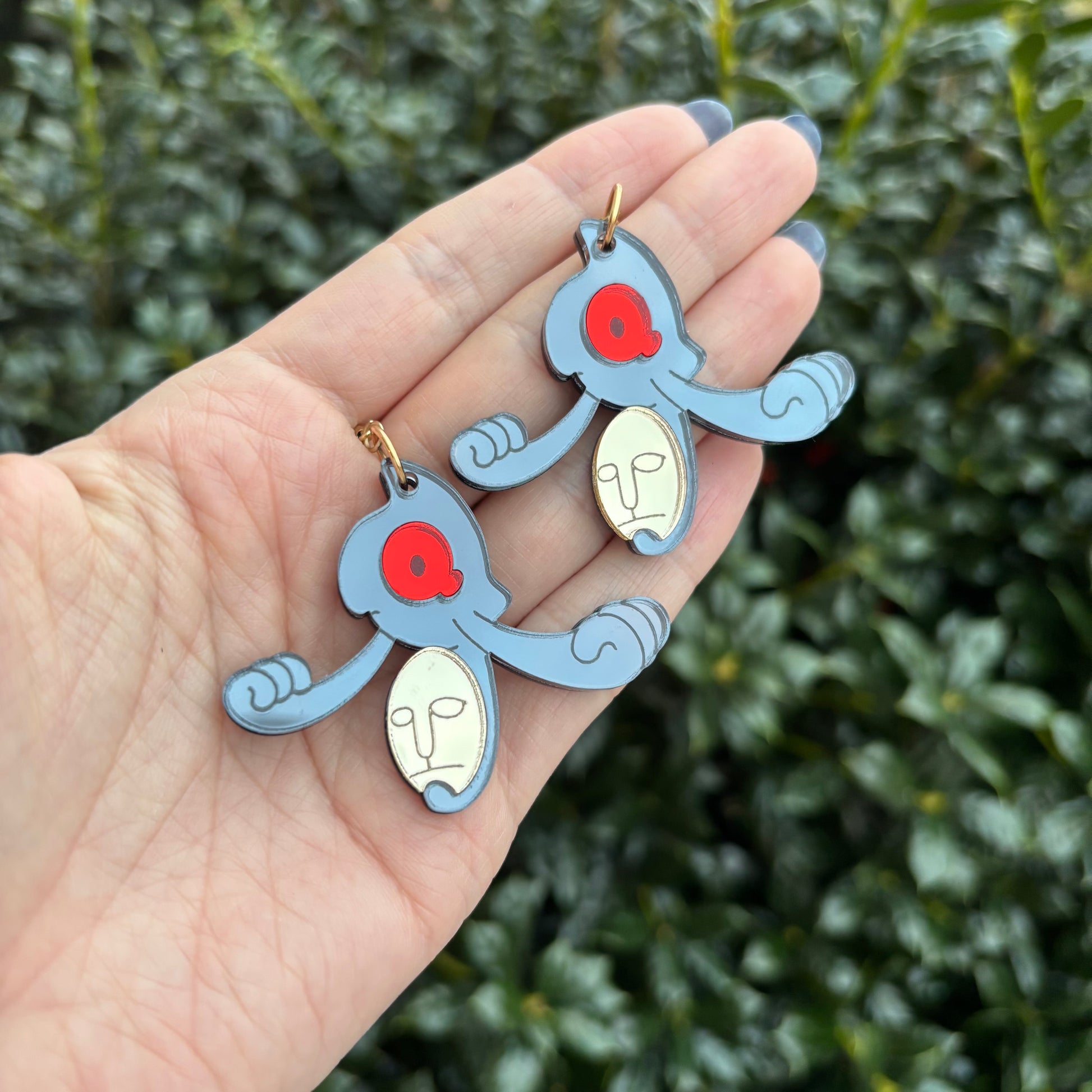 The earrings are about 2” long and cut from my own laser! The earrings are cut and etched, and attached to an acrylic base. The back will be a plain acrylic color!